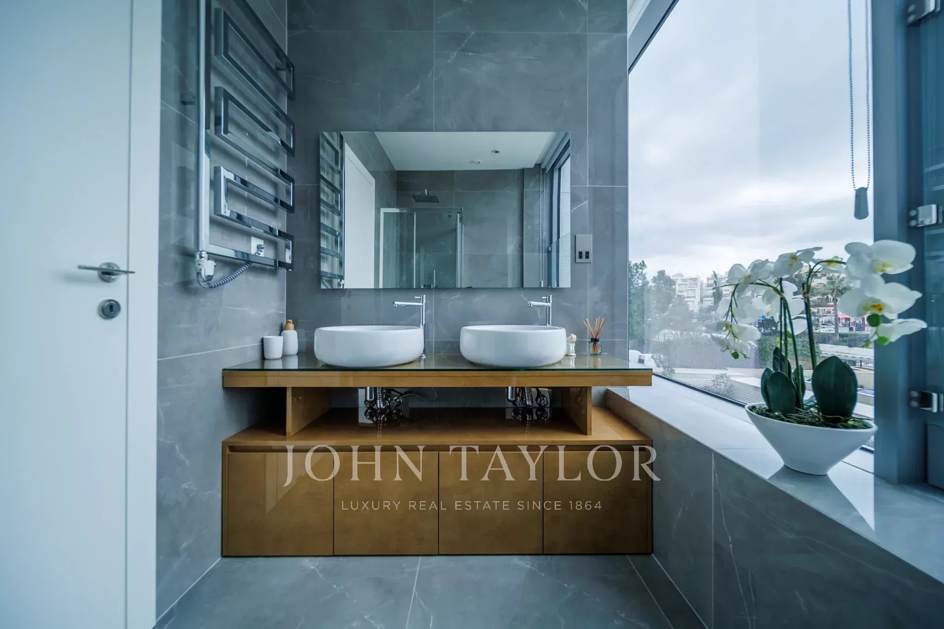 Tato rezidence zaujímá celé patro, zajišťuje maximální soukromí, nepřerušované výhledy na moře a výjimečné vnitřní a venkovní obytné prostory navržené pro luxusní pobřežní život.