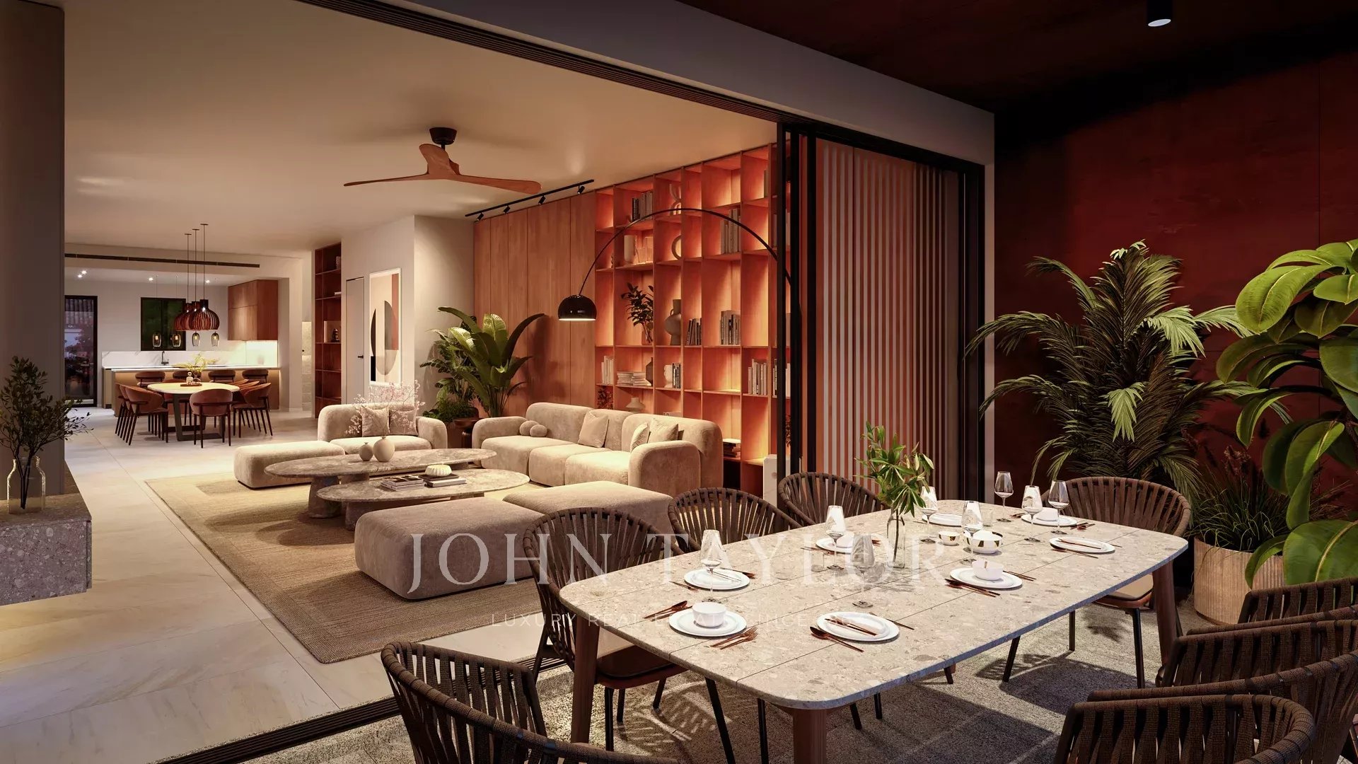 Každá vila je koncipována jako soukromý dům, nikoliv jen jako architektonický prvek. Čtyři vlastní ložnice, soukromý výtah a pět pečlivě navržených úrovní vytvářejí přirozený tok mezi bydlením, odpočinkem a zábavou. Vnitřní prostor o rozloze 377 m2 doplňuje 102 m2 krytých verand, pozemek o velikosti 385 m2 a soukromá zahrada o rozloze 259 m2, která je ideální pro klidná rána, rodinný život nebo večery na čerstvém vzduchu.