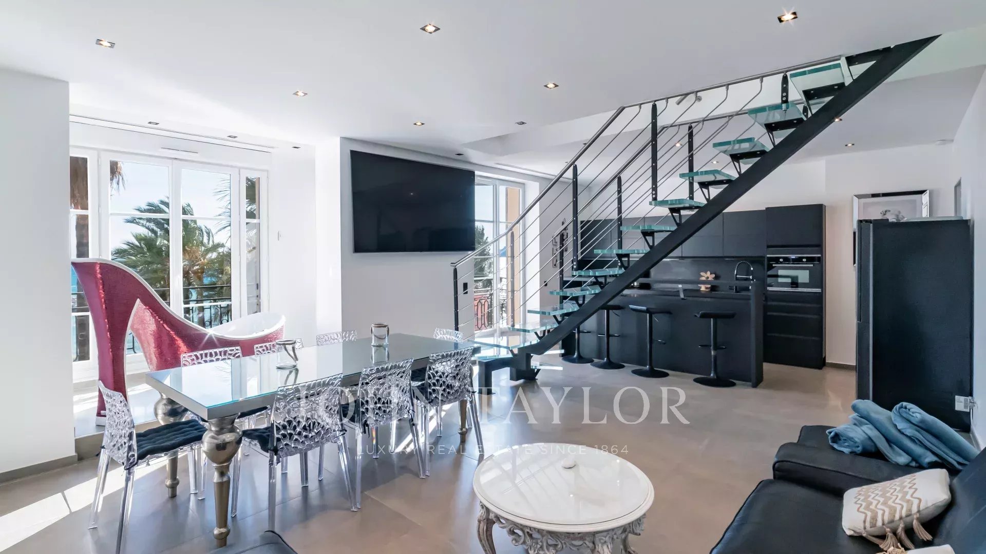 Tento skvěle zrekonstruovaný penthouse se nachází v nejvyšším patře krásné měšťanské budovy ve čtvrti Old Port a pyšní se střešní terasou o rozloze 105 m² s úchvatným panoramatickým výhledem na moře.