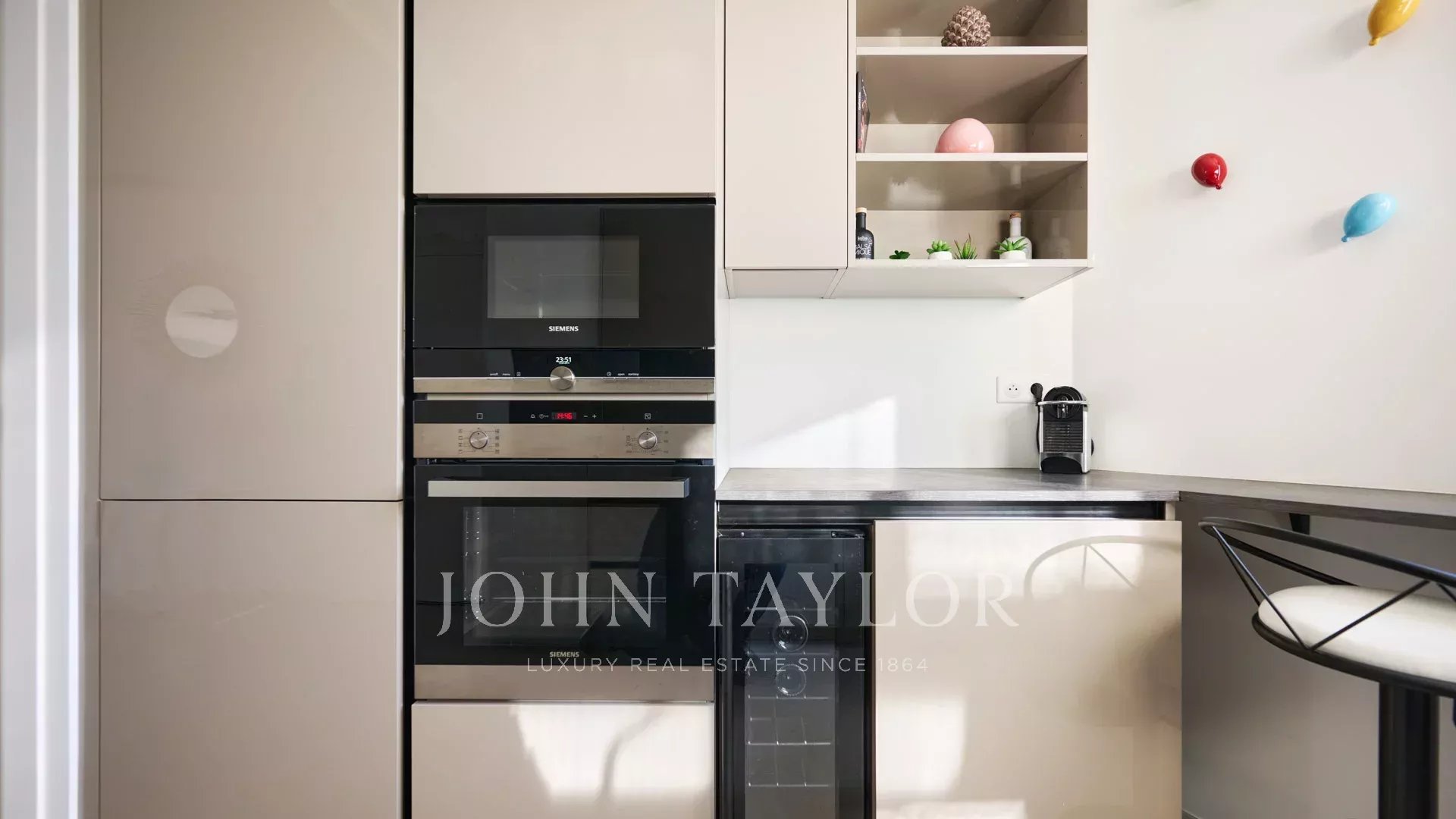 Tento byt se skládá ze 2 ložnic, 2 sprchových koutů, toalety pro hosty, otevřené kuchyně a obývacího pokoje o rozloze 30 m², ze kterého se vychází na prostornou terasu, a má ideální polohu pro pied à terre nebo hlavní bydlení.