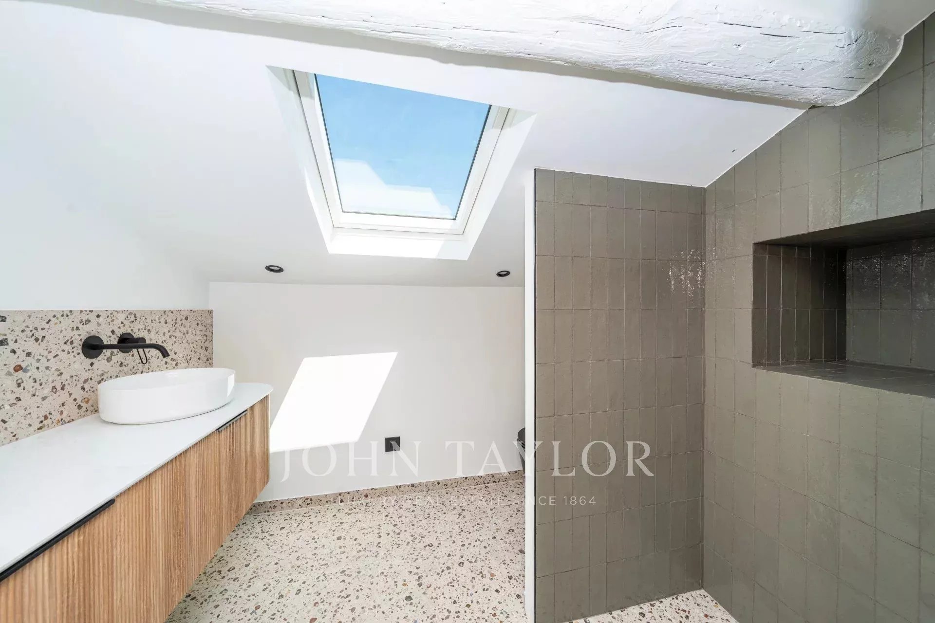 Tento prestižní mezonetový byt se nachází v prestižní čtvrti Banane v Cannes, v blízkosti obchodů, restaurací a pláží, a byl kompletně zrekonstruován v roce 2024.