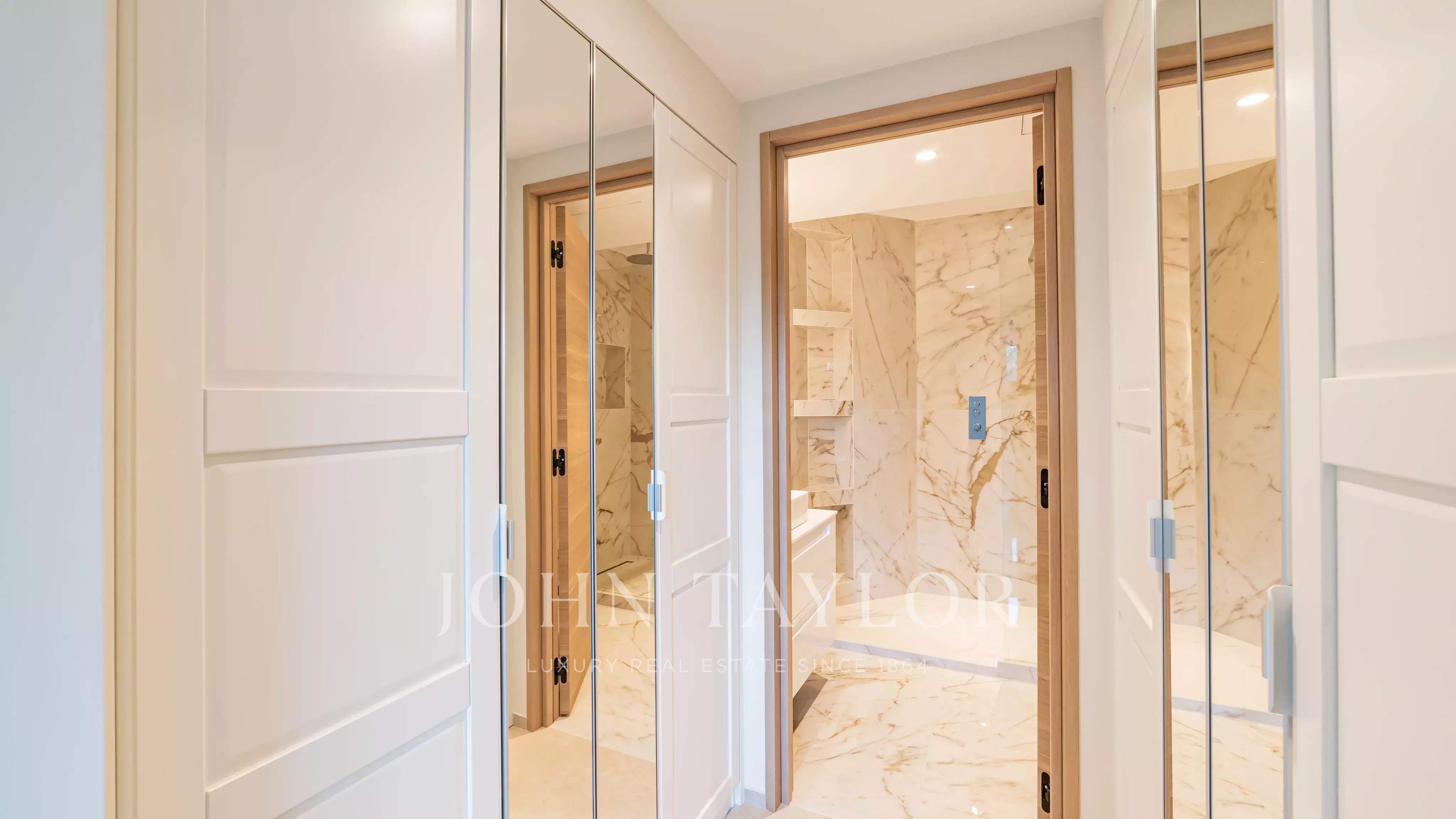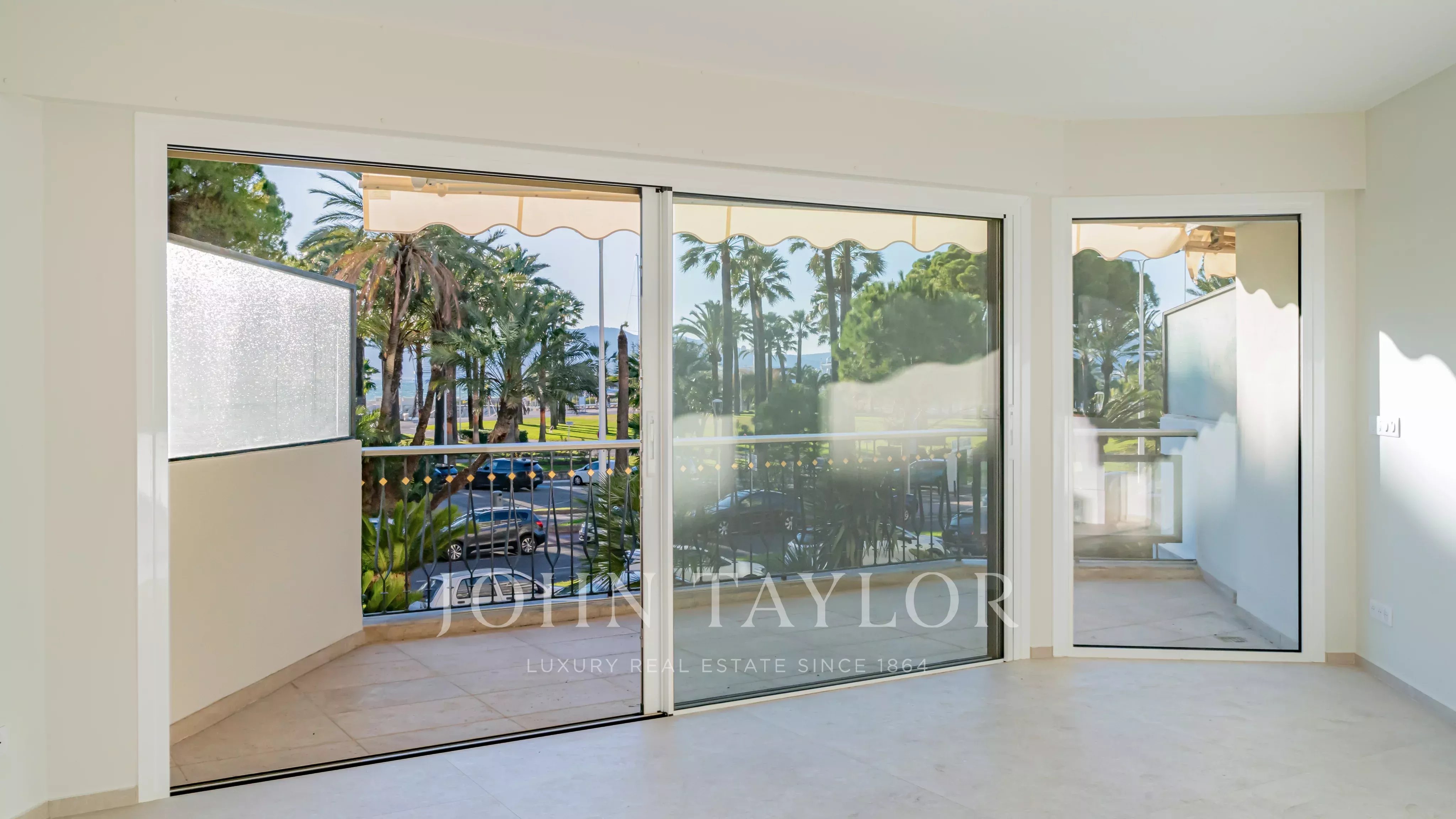 Tento kompletně zrekonstruovaný byt se třemi ložnicemi se nachází v 1. patře luxusní rezidence na Croisette a nabízí nerušený výhled a příjemný pohled na moře.