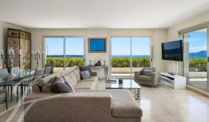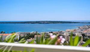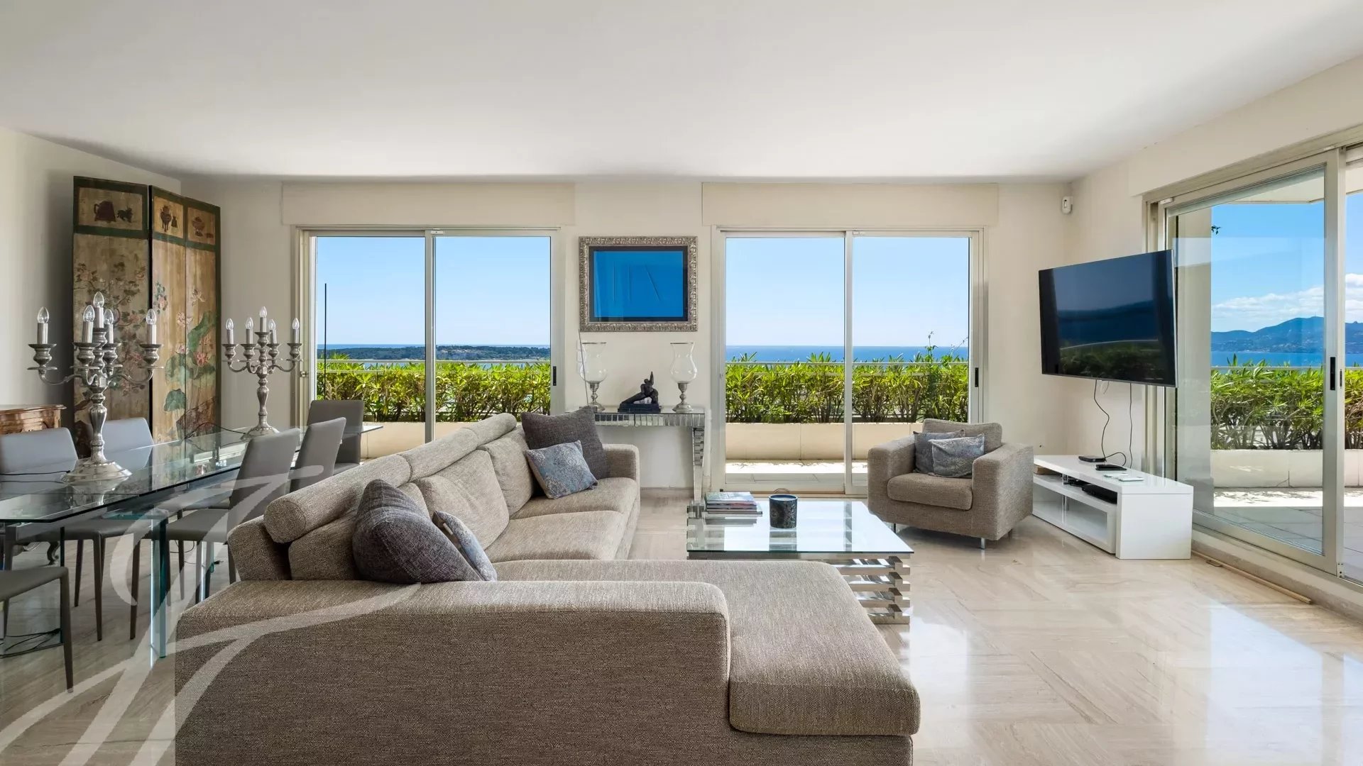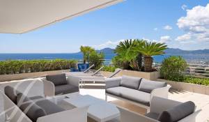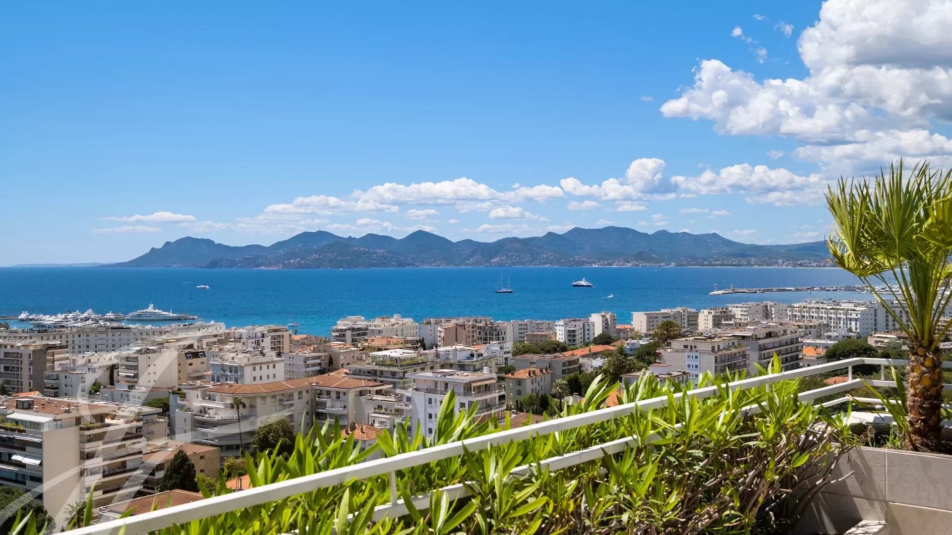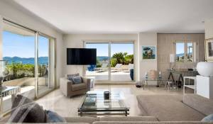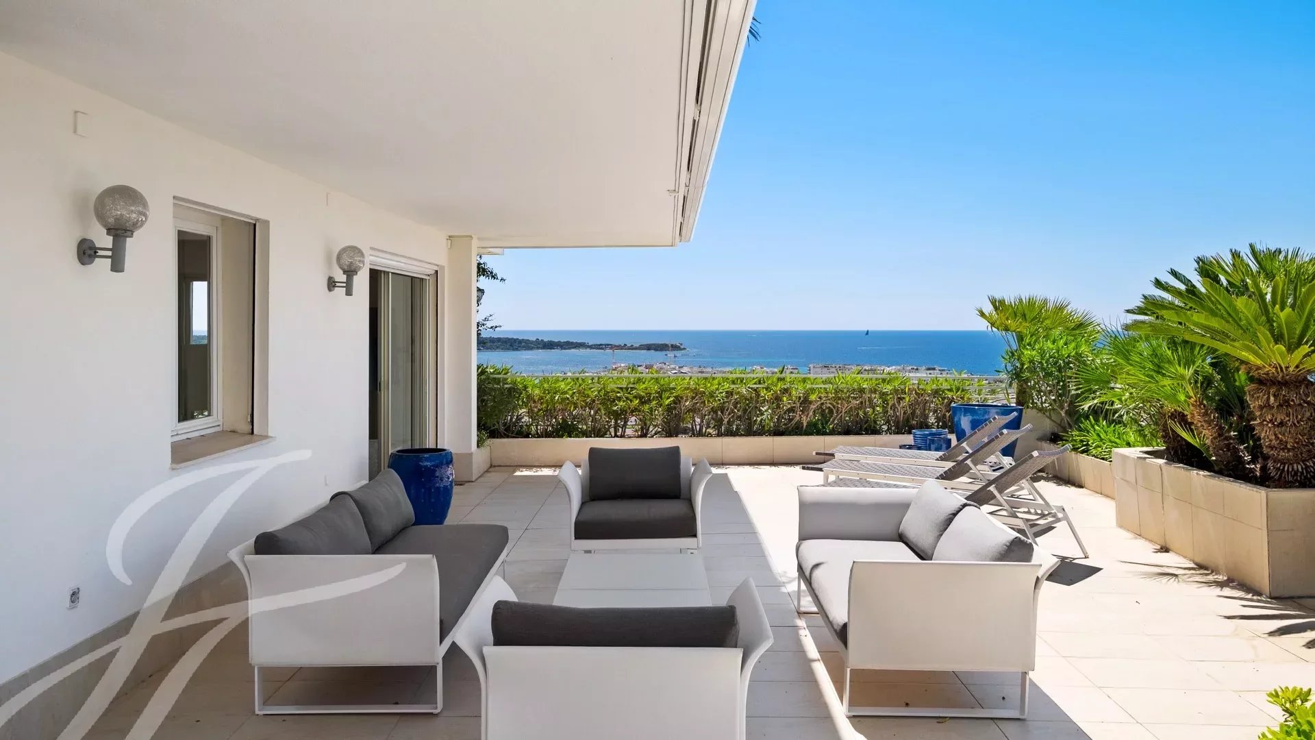 Tento nádherný rohový byt v luxusní rezidenci v Basse Californie má velkou terasu s nepřetržitým výhledem na moře, ostrovy Lérins, Canneský záliv a pohoří Esterel.