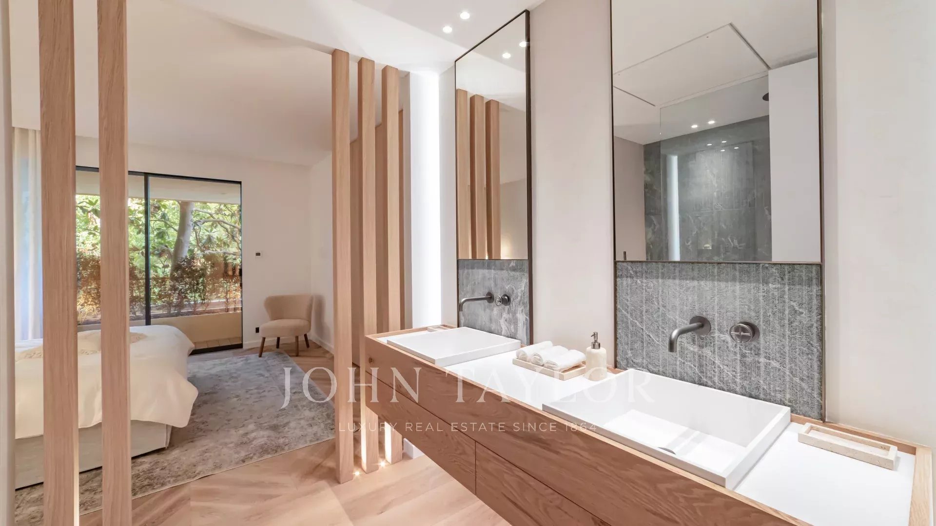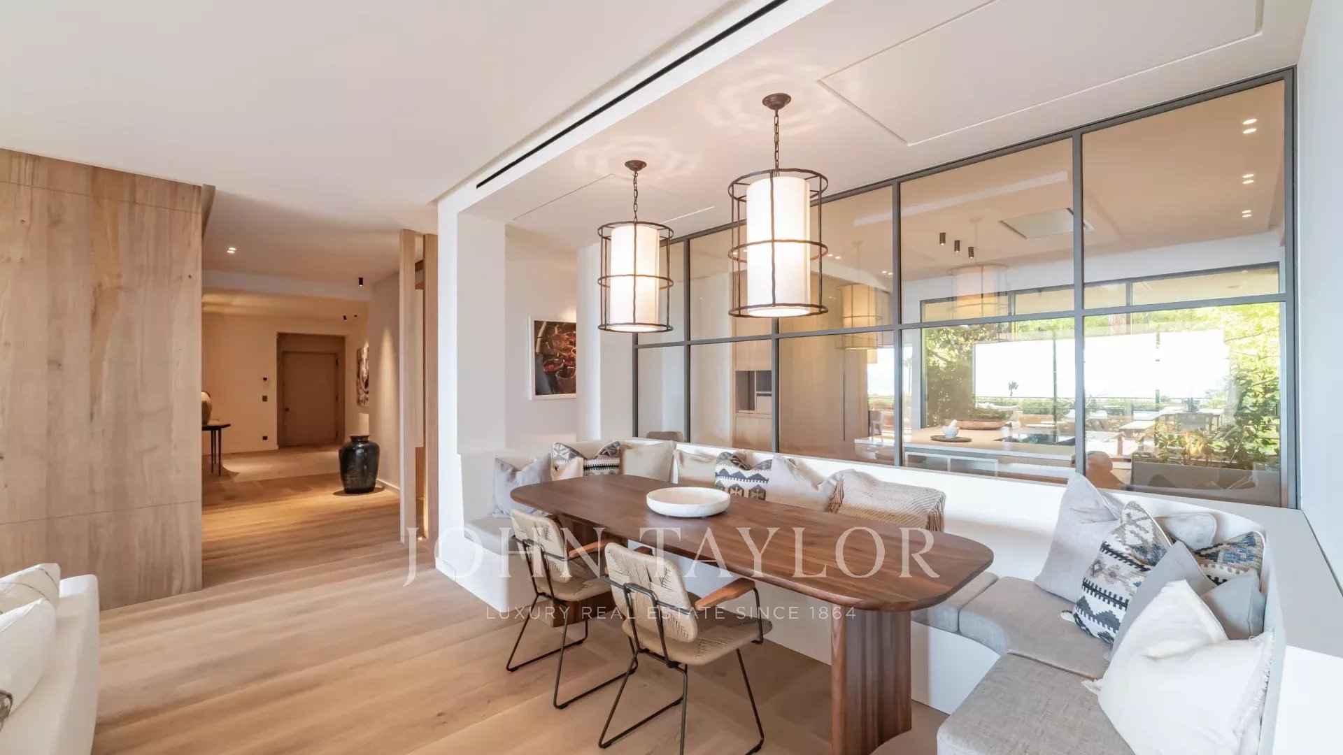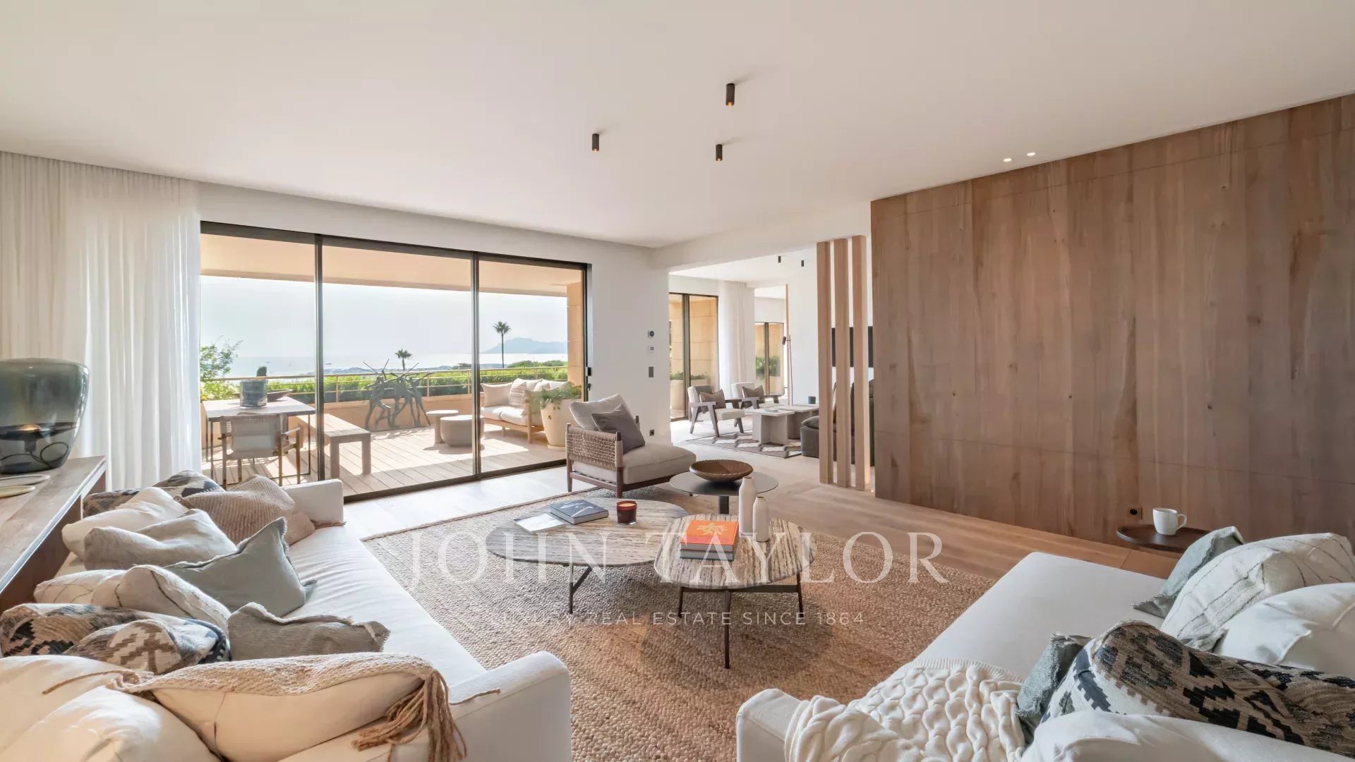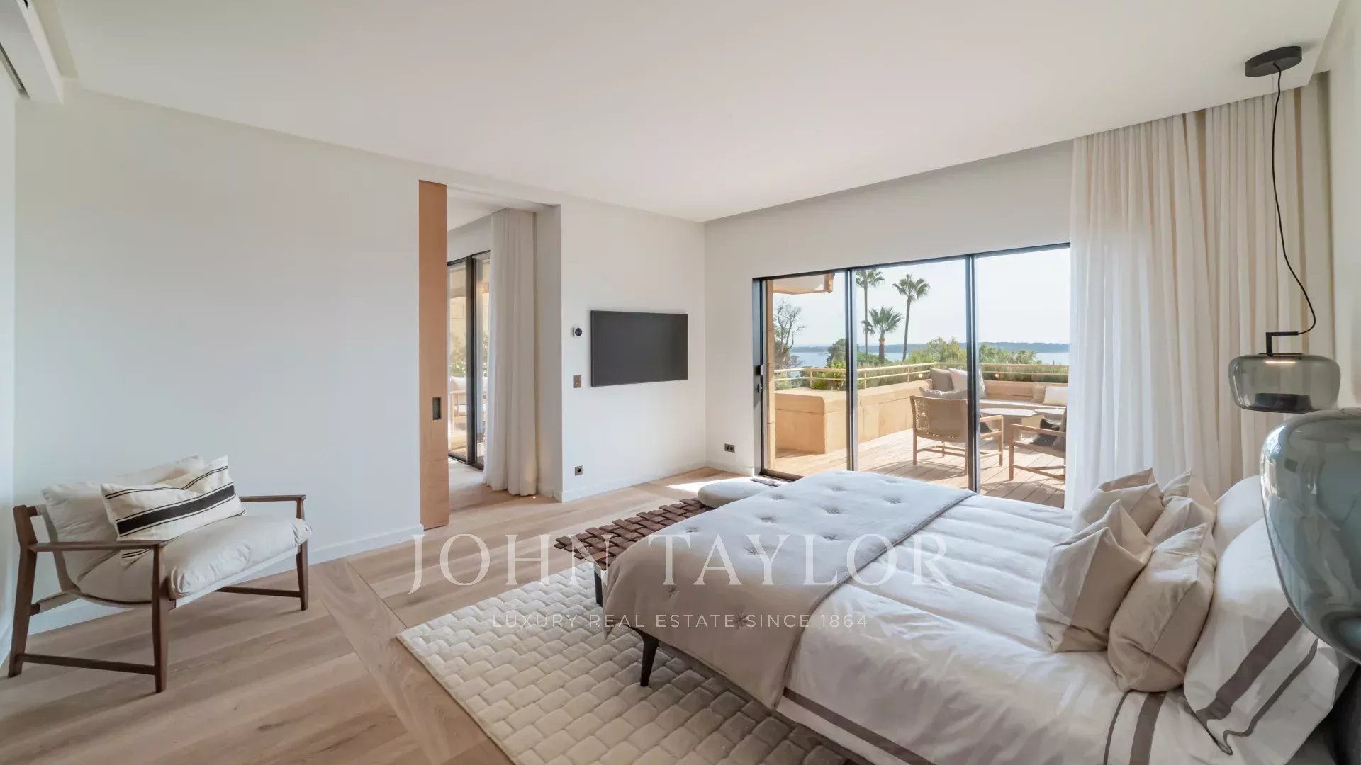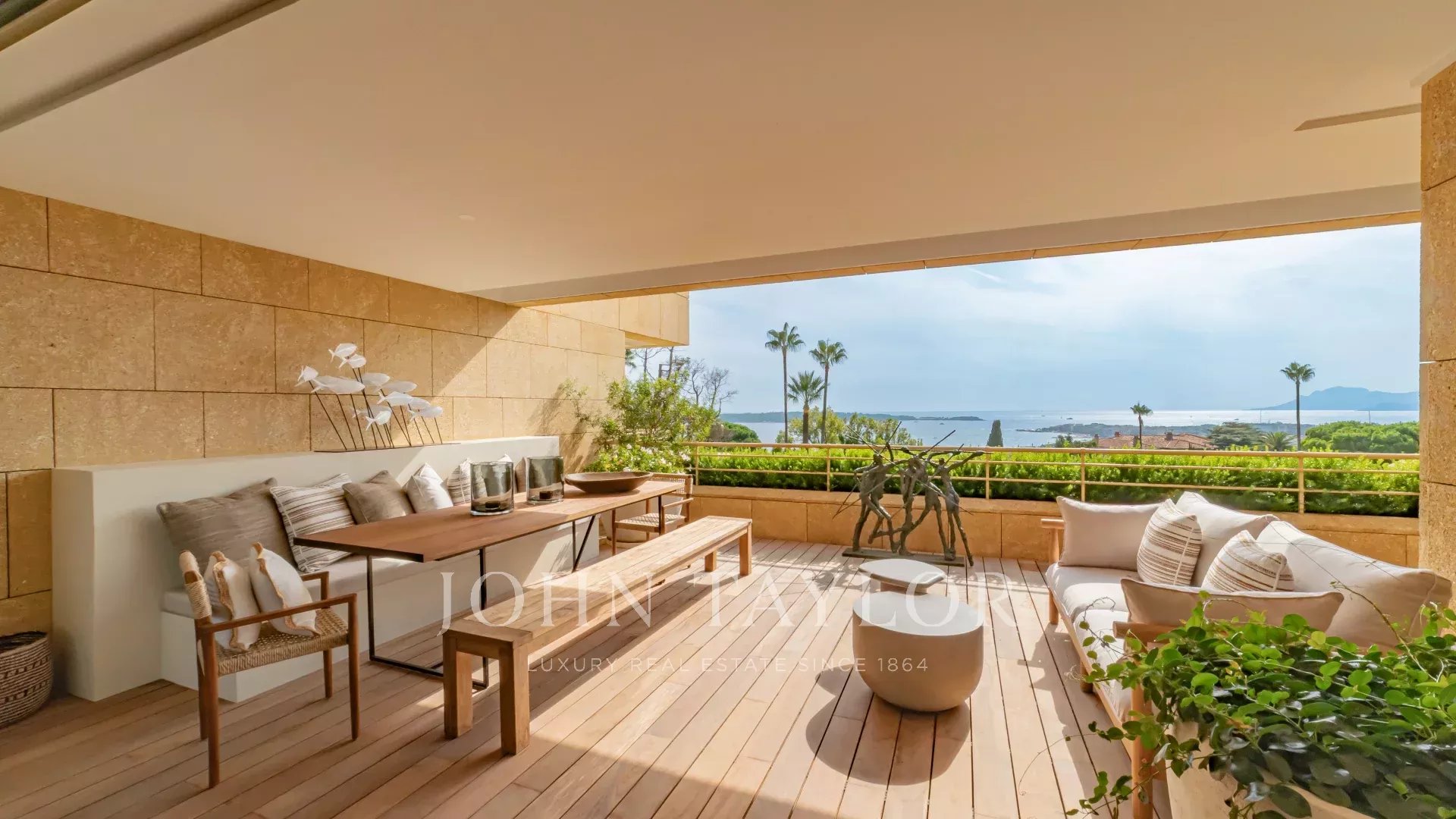 Tato výjimečná nemovitost se může pochlubit vynikající terasou o rozloze 60 m² s nerušeným výhledem na Středozemní moře a ostrovy Lérins. Byt byl kompletně zrekonstruován renomovaným místním architektem za použití nejkvalitnějších materiálů a může se pochlubit rafinovaným, luxusním moderním stylem.