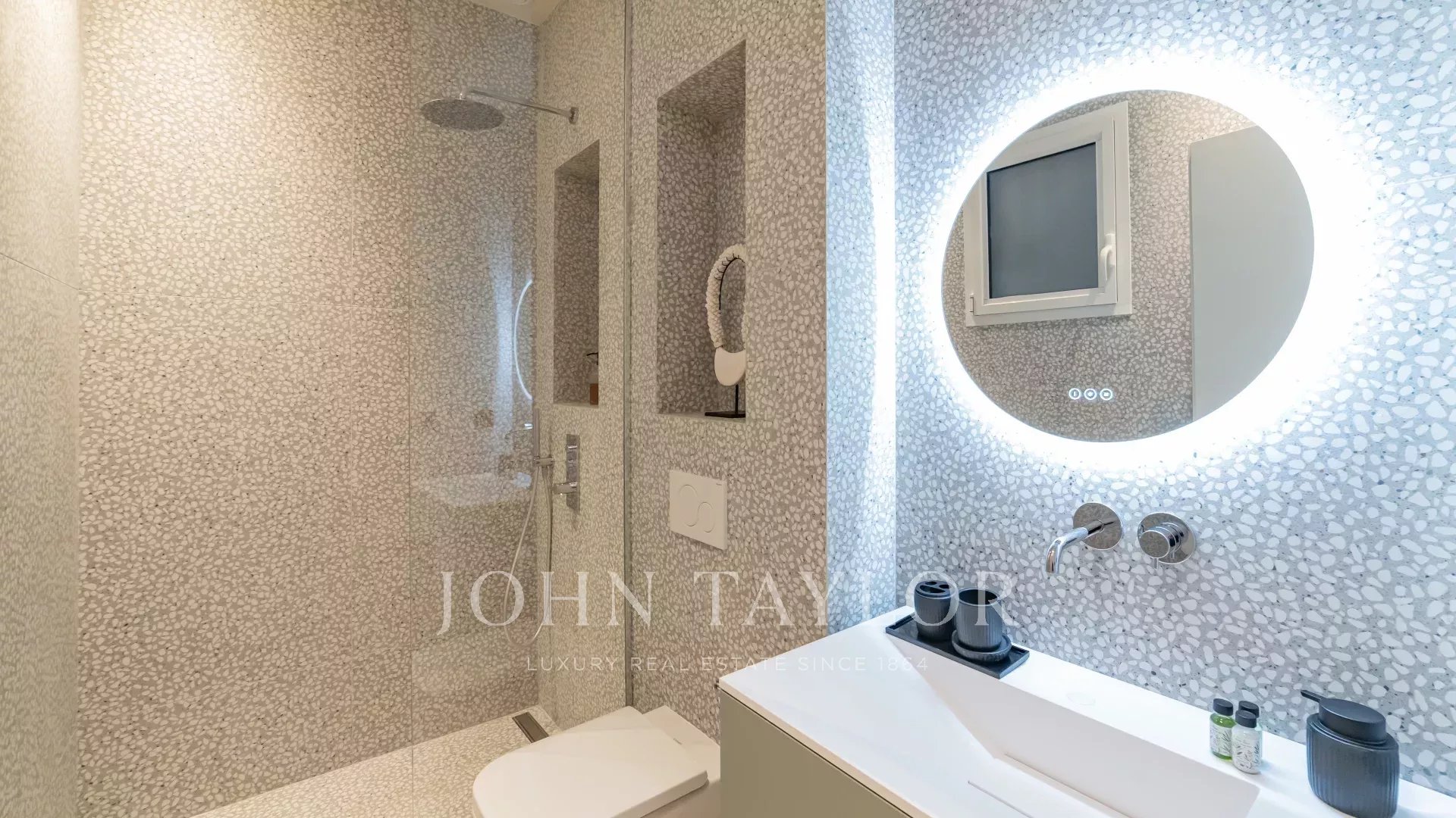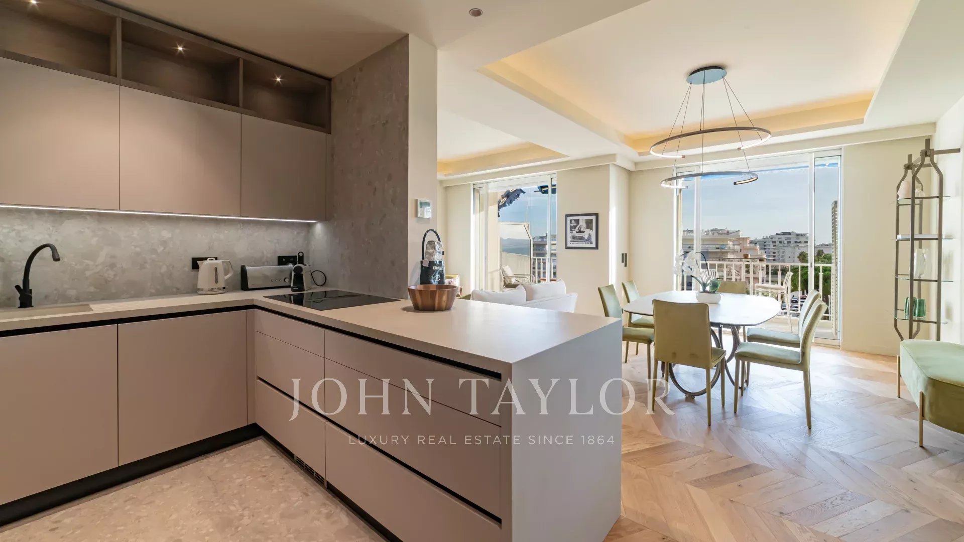 Tento byt se nachází v nejvyšším patře luxusní rezidence na La Croisette a nabízí nádherný výhled na moře, Port Canto a masiv Esterel.