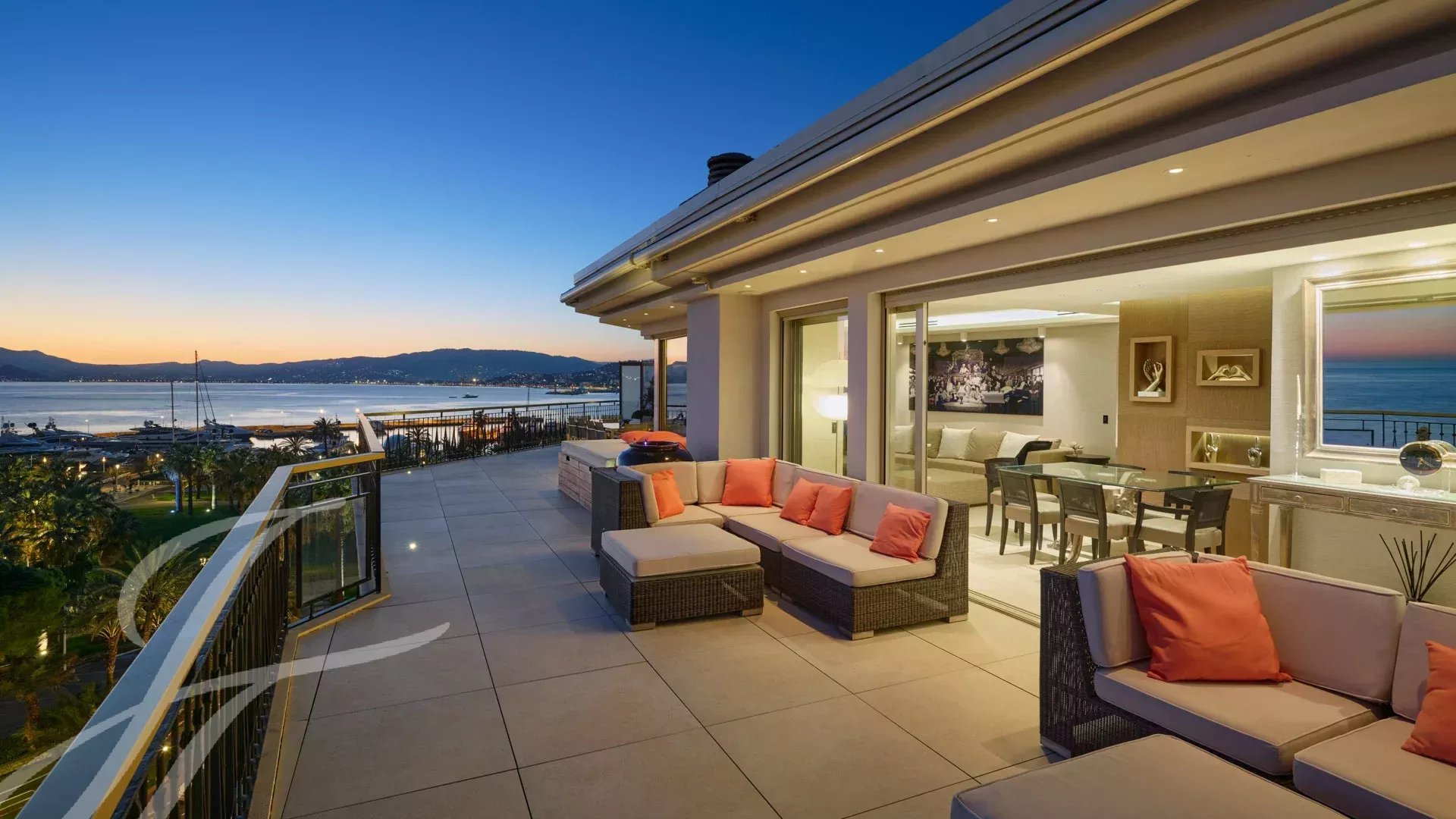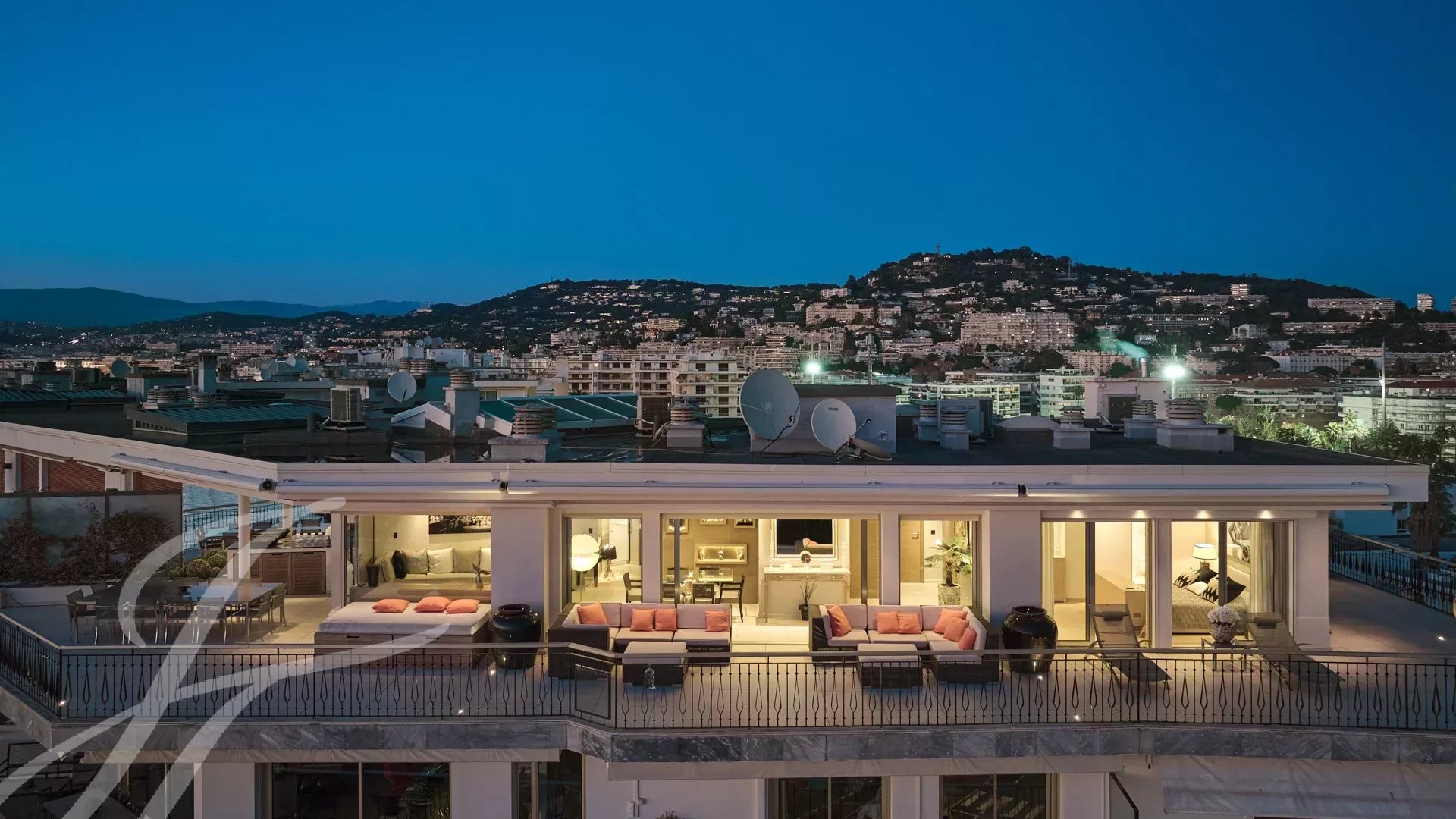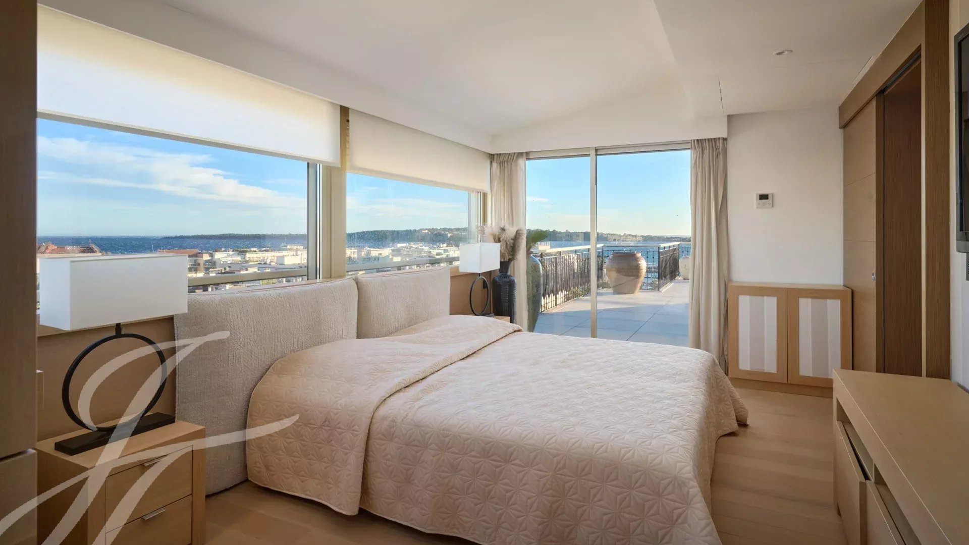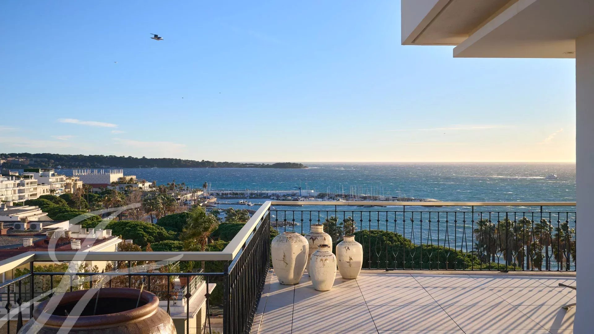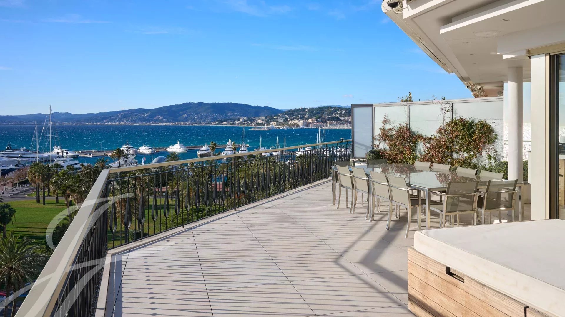 Skládá se z rozlehlého obývacího pokoje s jídelnou, barem a dvěma vinnými sklípky, ze kterého se vychází na velkolepou terasu o rozloze 156 m² s úchvatným výhledem na Port Canto, Palm Beach, Canneský záliv a Lérinské ostrovy. Z plně vybavené uzavřené kuchyně je přístup na druhou terasu. Byt má čtyři ložnice, včetně hlavní ložnice s vlastní koupelnou a sprchovým koutem a přístupem na terasu s výhledem na moře. Další ložnice s vlastní koupelnou se sprchou a dvě další ložnice se společnou sprchou.