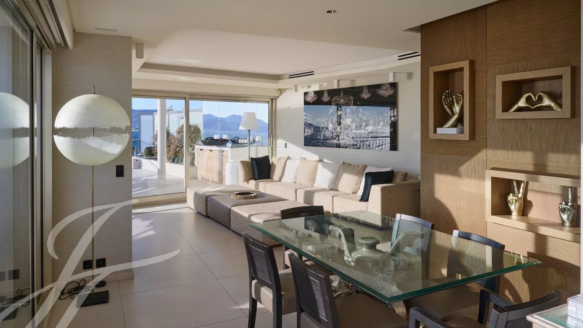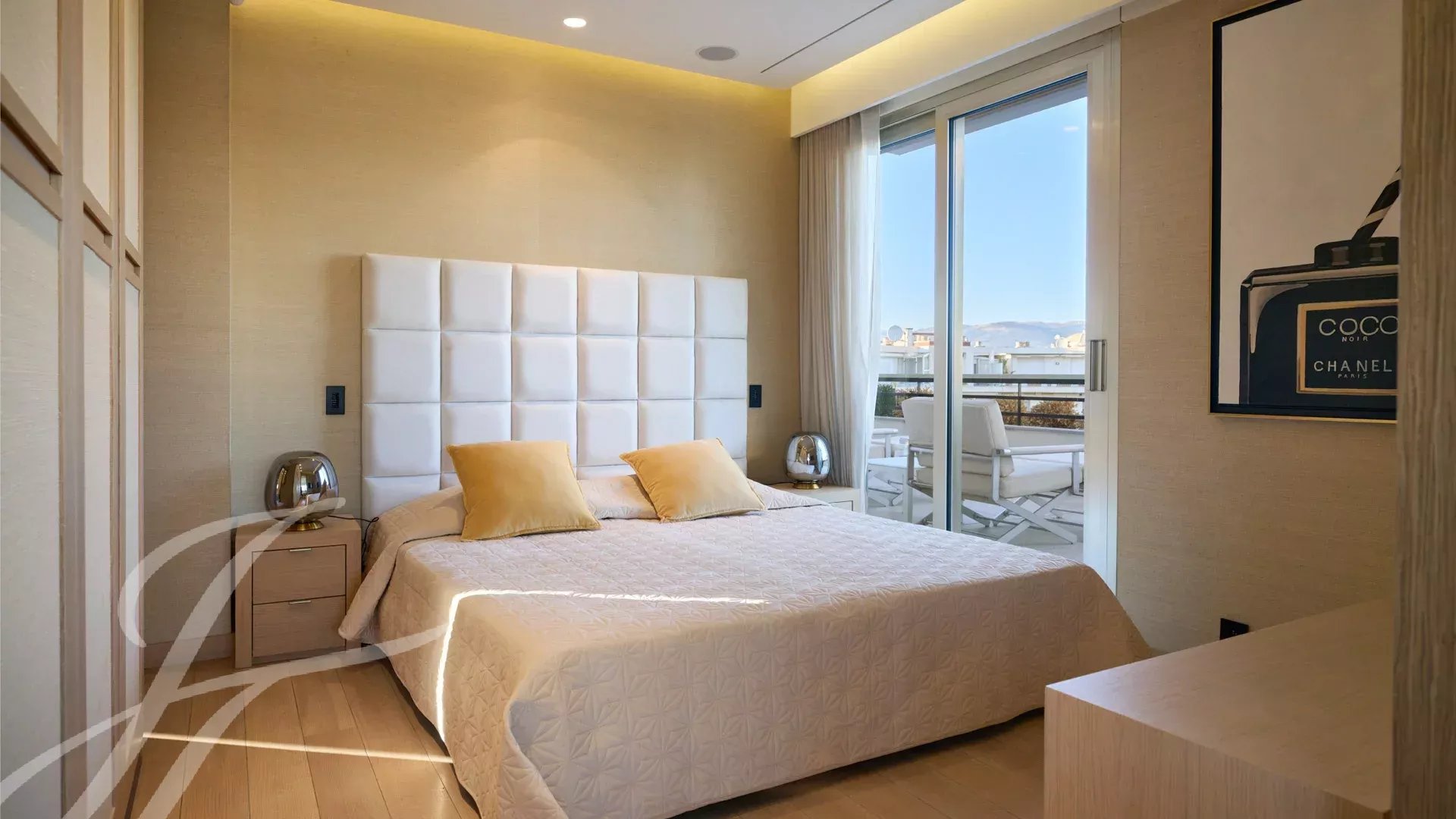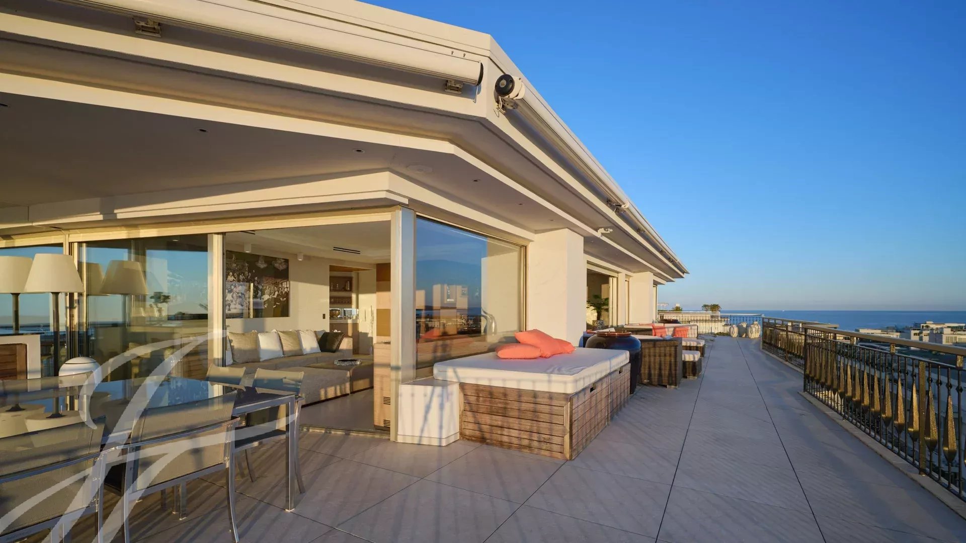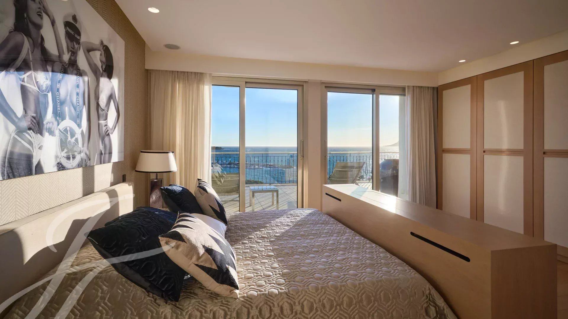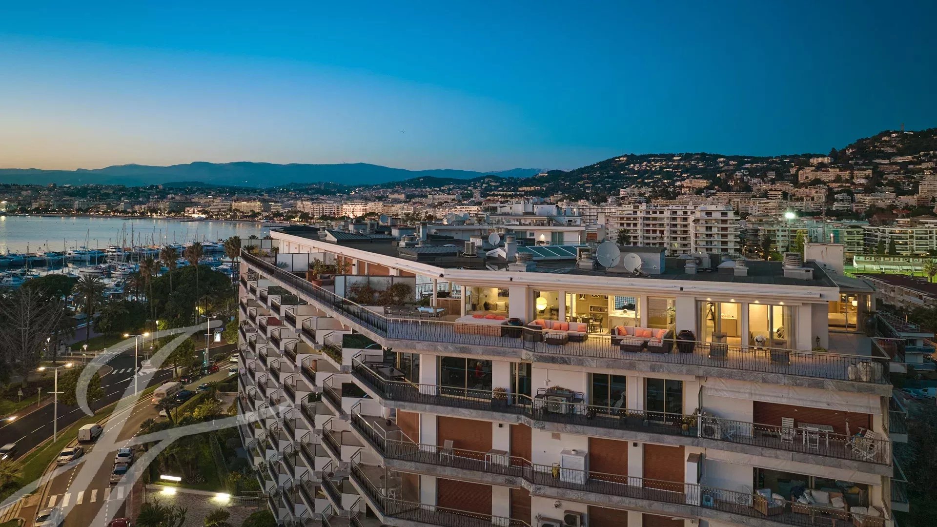 Skládá se z rozlehlého obývacího pokoje s jídelnou, barem a dvěma vinnými sklípky, ze kterého se vychází na velkolepou terasu o rozloze 156 m² s úchvatným výhledem na Port Canto, Palm Beach, Canneský záliv a Lérinské ostrovy. Z plně vybavené uzavřené kuchyně je přístup na druhou terasu. Byt má čtyři ložnice, včetně hlavní ložnice s vlastní koupelnou a sprchovým koutem a přístupem na terasu s výhledem na moře. Další ložnice s vlastní koupelnou se sprchou a dvě další ložnice se společnou sprchou.