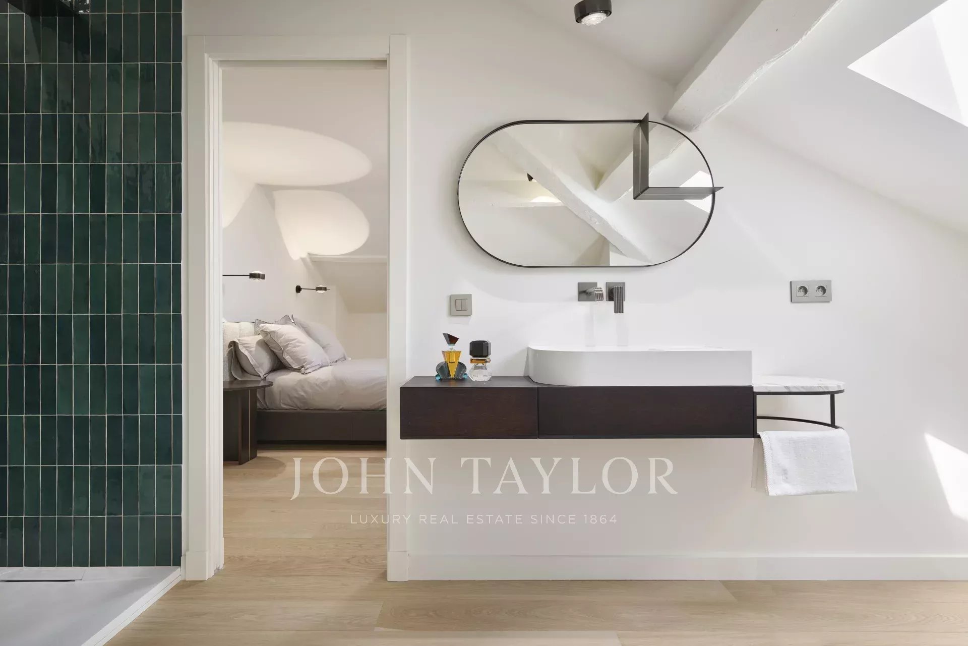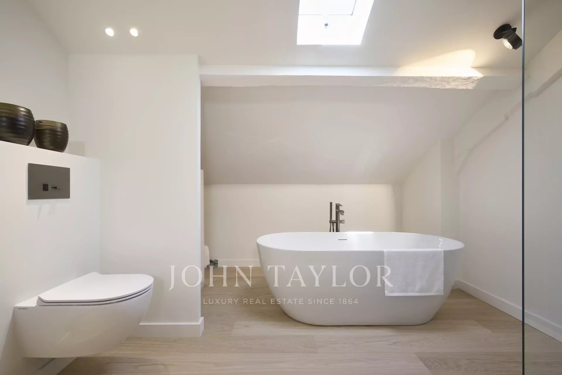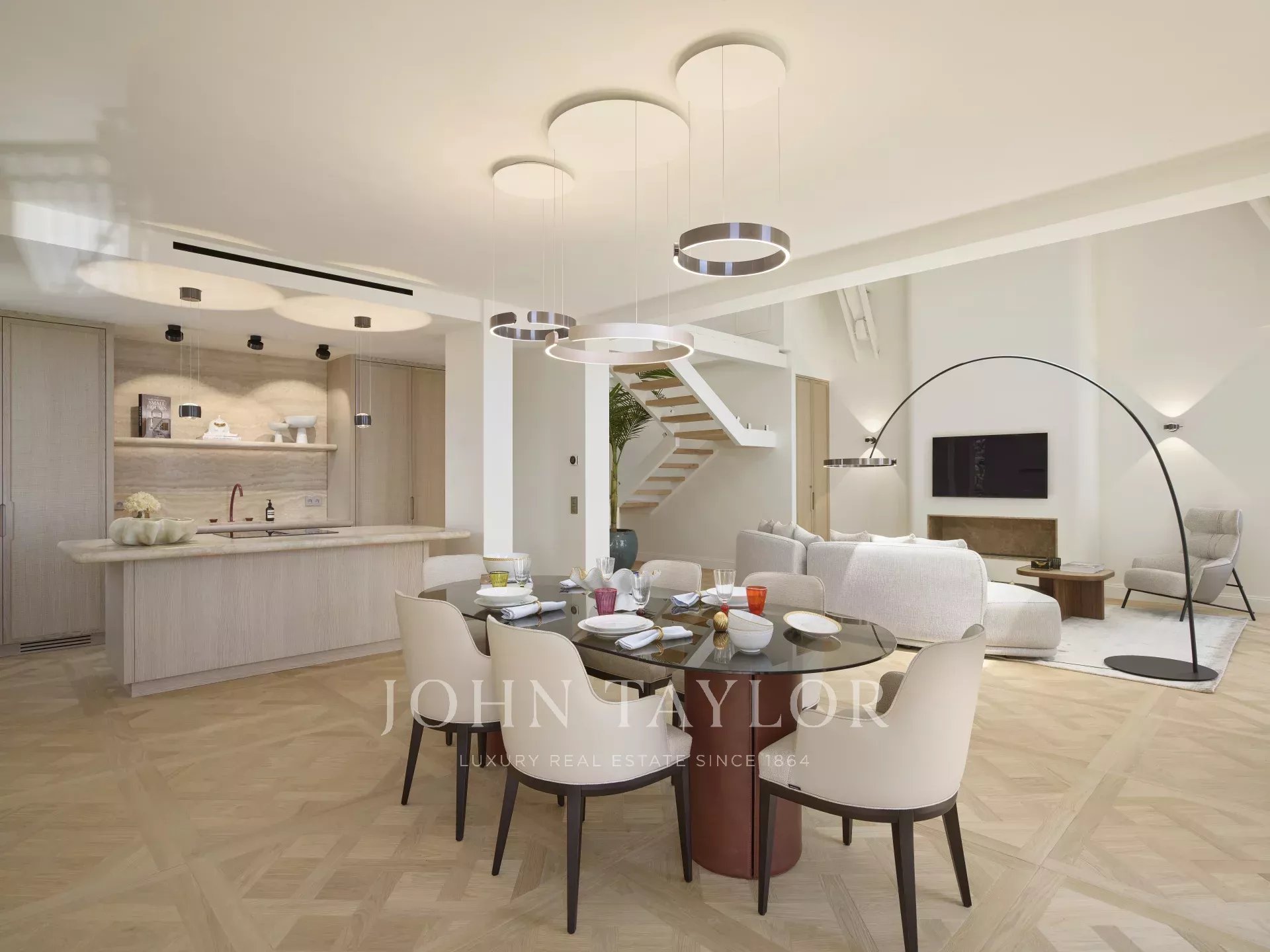 Tento nádherný byt s obytnou plochou přibližně 200 m² se nachází v nejvyšším patře bývalého hotelu z roku 1858 a nedávno prošel pečlivou rekonstrukcí na velmi vysoké úrovni.