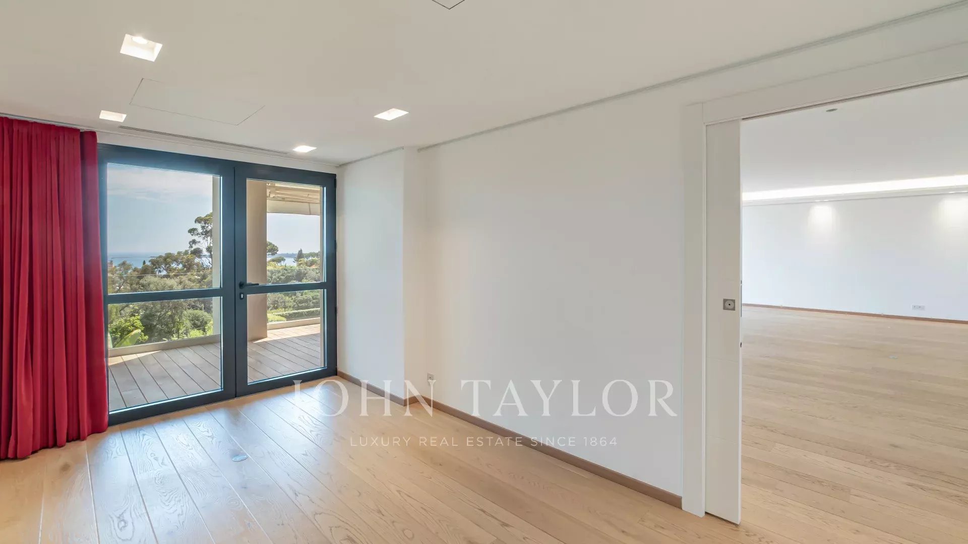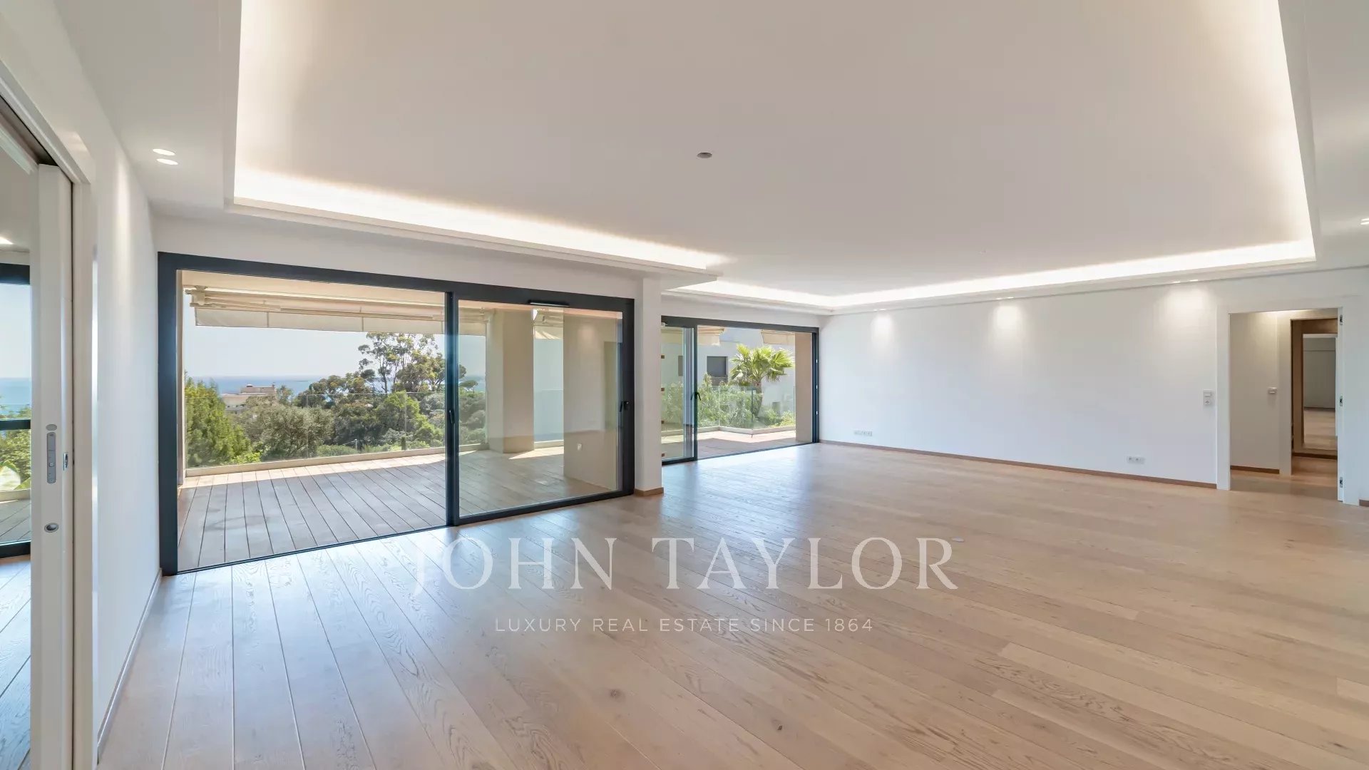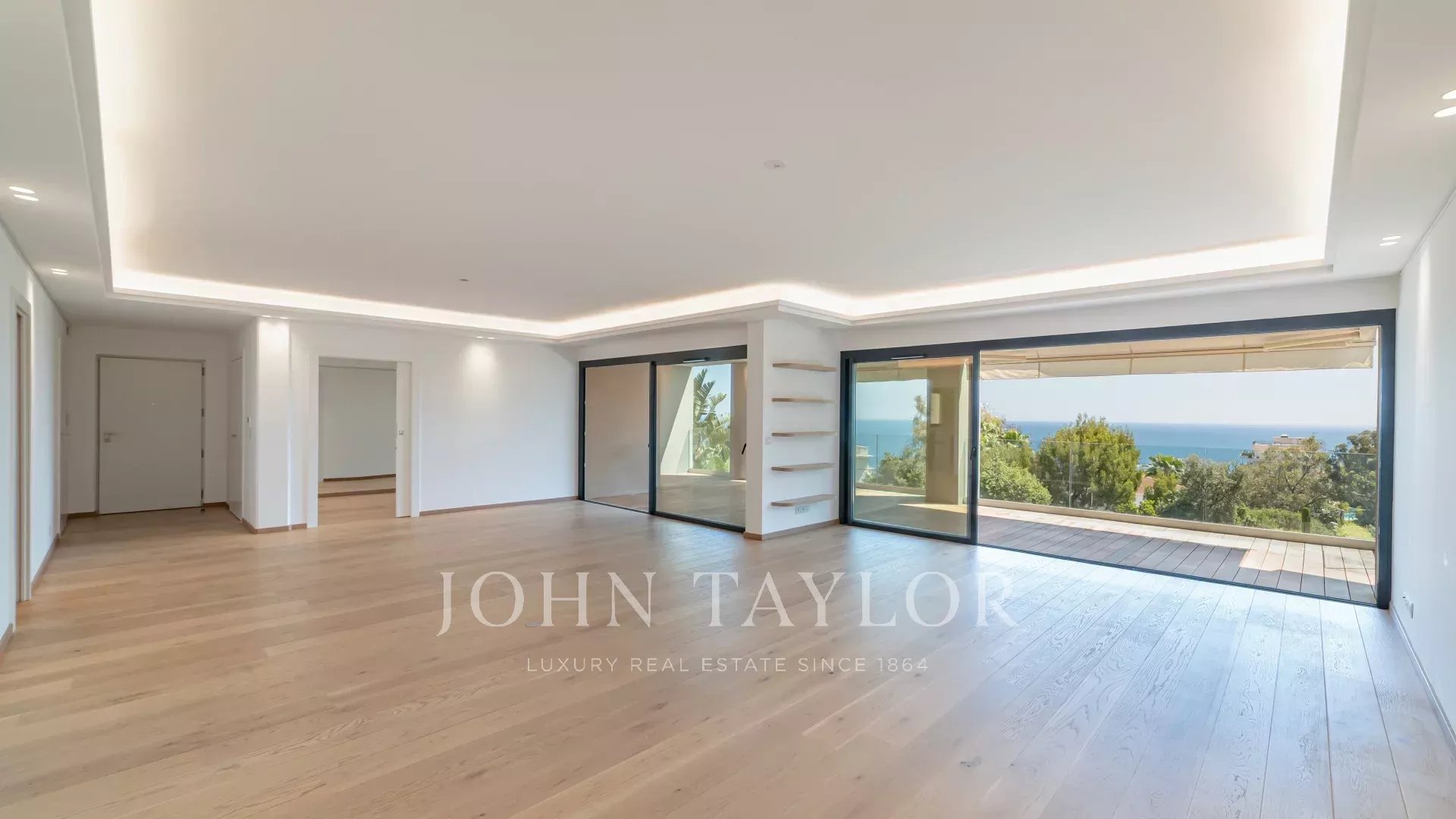 Tento krásný byt v perfektním stavu v nedávné rezidenci s bazénem, posilovnou a nepřetržitým správcem nabízí velkou terasu a krásný výhled na moře a Cap d'Antibes.