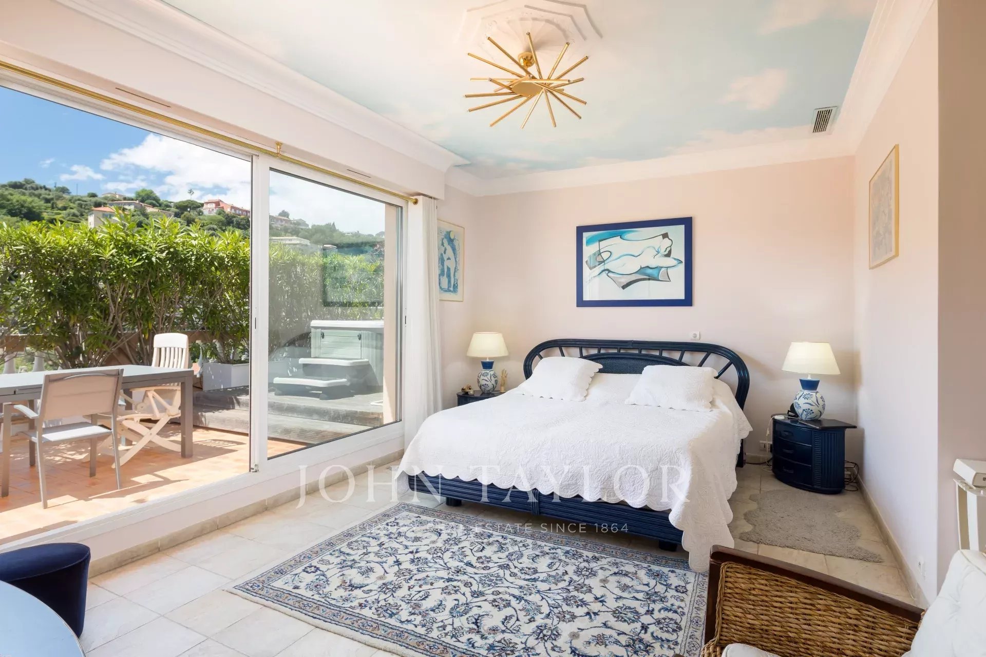 Tento vynikající střešní apartmán / vila Carrez o rozloze 174,13 m2, obsluhovaný přímo výtahem, zaujímá celé nejvyšší patro dokonale udržované rezidence v lidském měřítku, s jižní/západní expozicí a plně klimatizovaný, nabízí rozsáhlou kruhovou terasu s krásným panoramatickým výhledem na moře, část města a kopce.