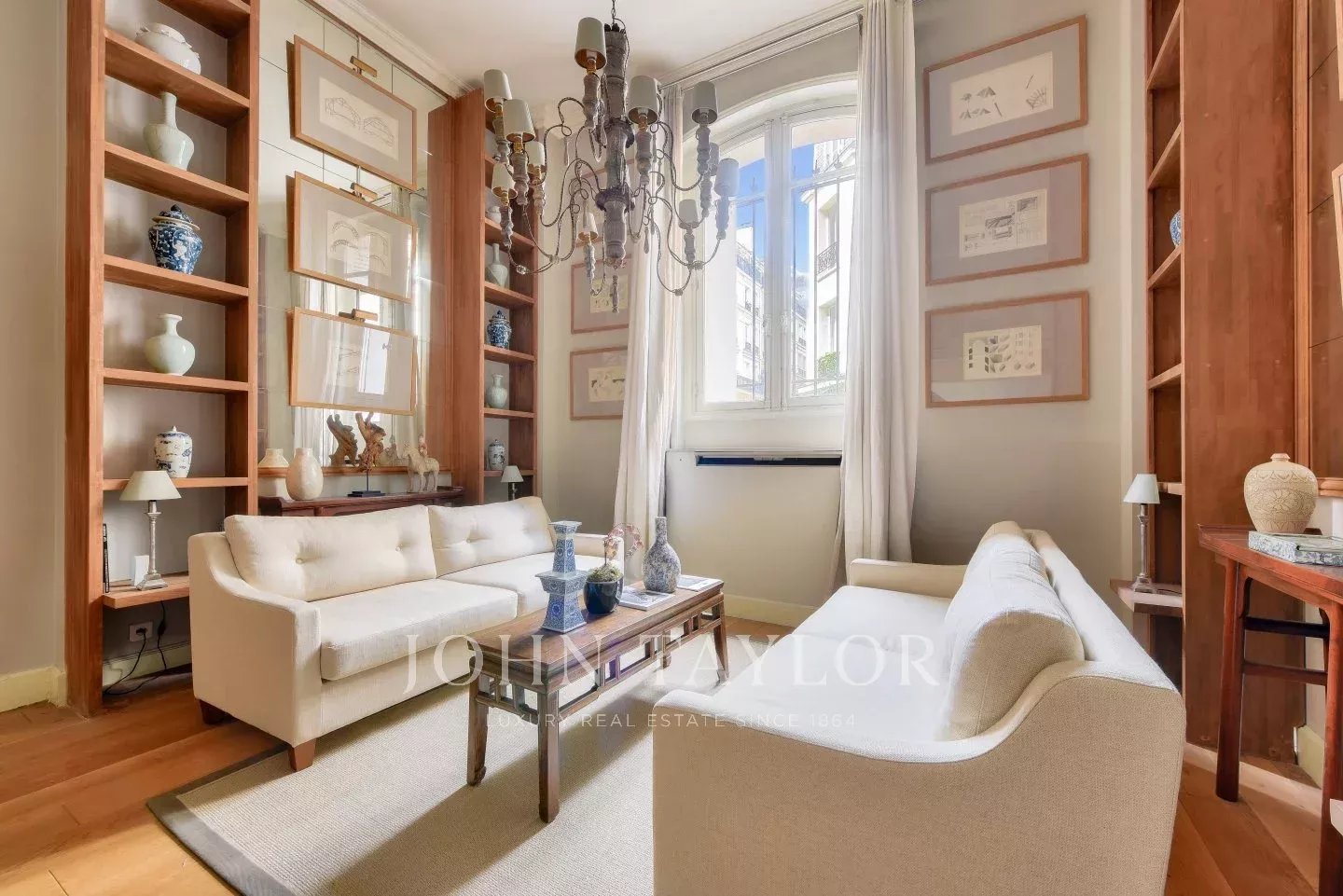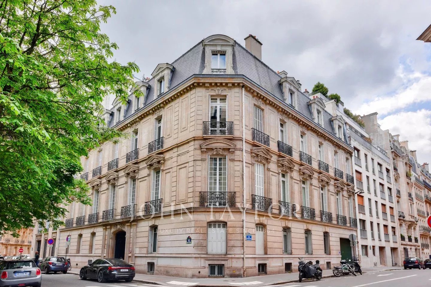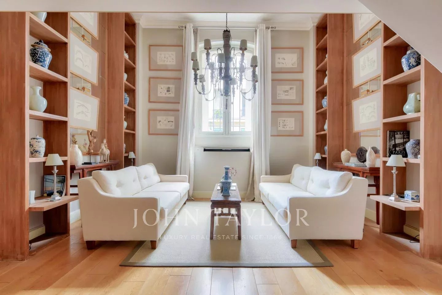 Rafinovaný dekor tohoto bytu, který má ideální polohu v privilegované a bezpečné čtvrti 16. obvodu mezi Avenue d'Iéna a Zlatým trojúhelníkem v 8. obvodu.