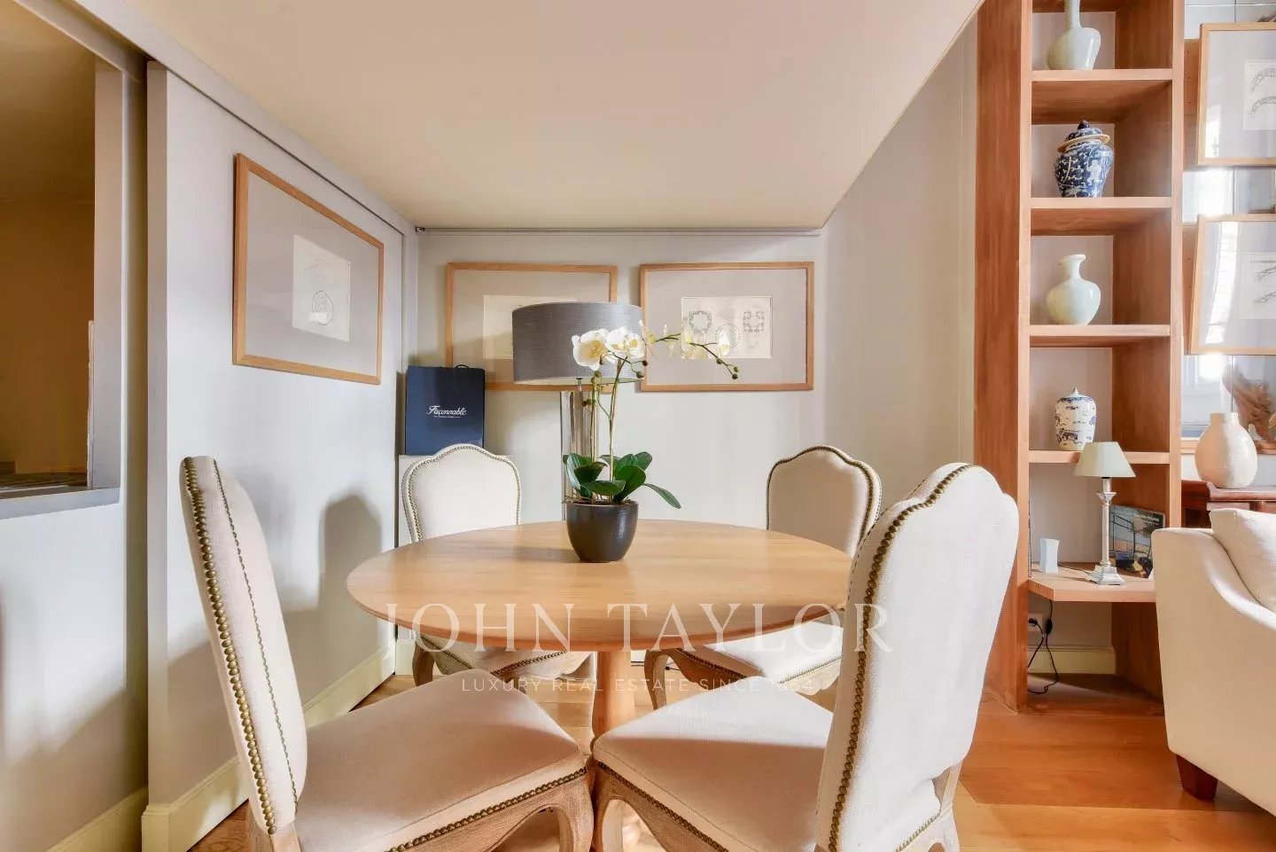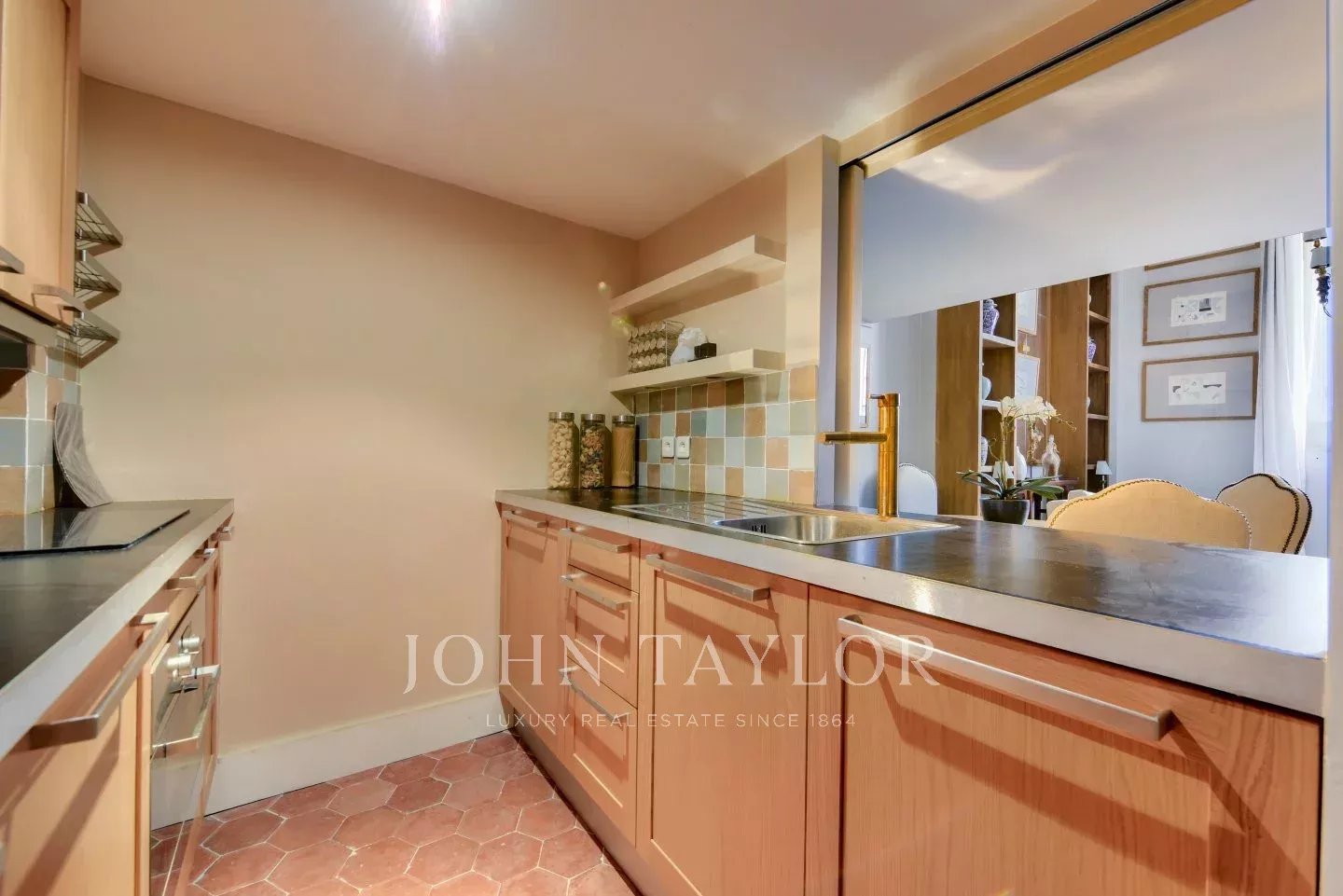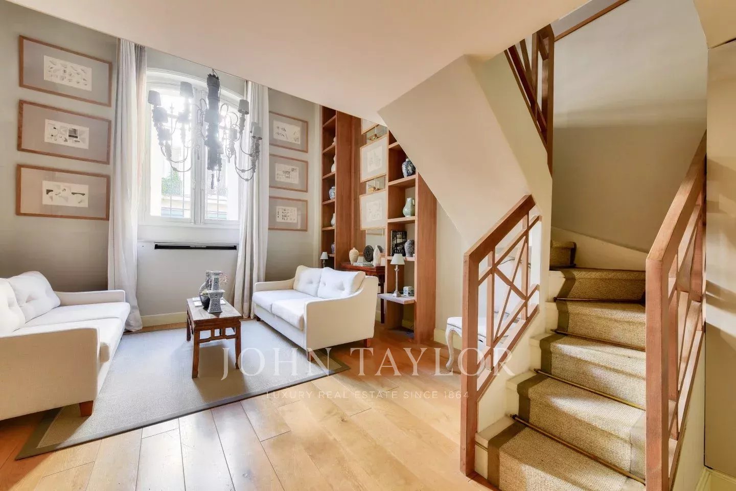 Rafinovaný dekor tohoto bytu, který má ideální polohu v privilegované a bezpečné čtvrti 16. obvodu mezi Avenue d'Iéna a Zlatým trojúhelníkem v 8. obvodu.