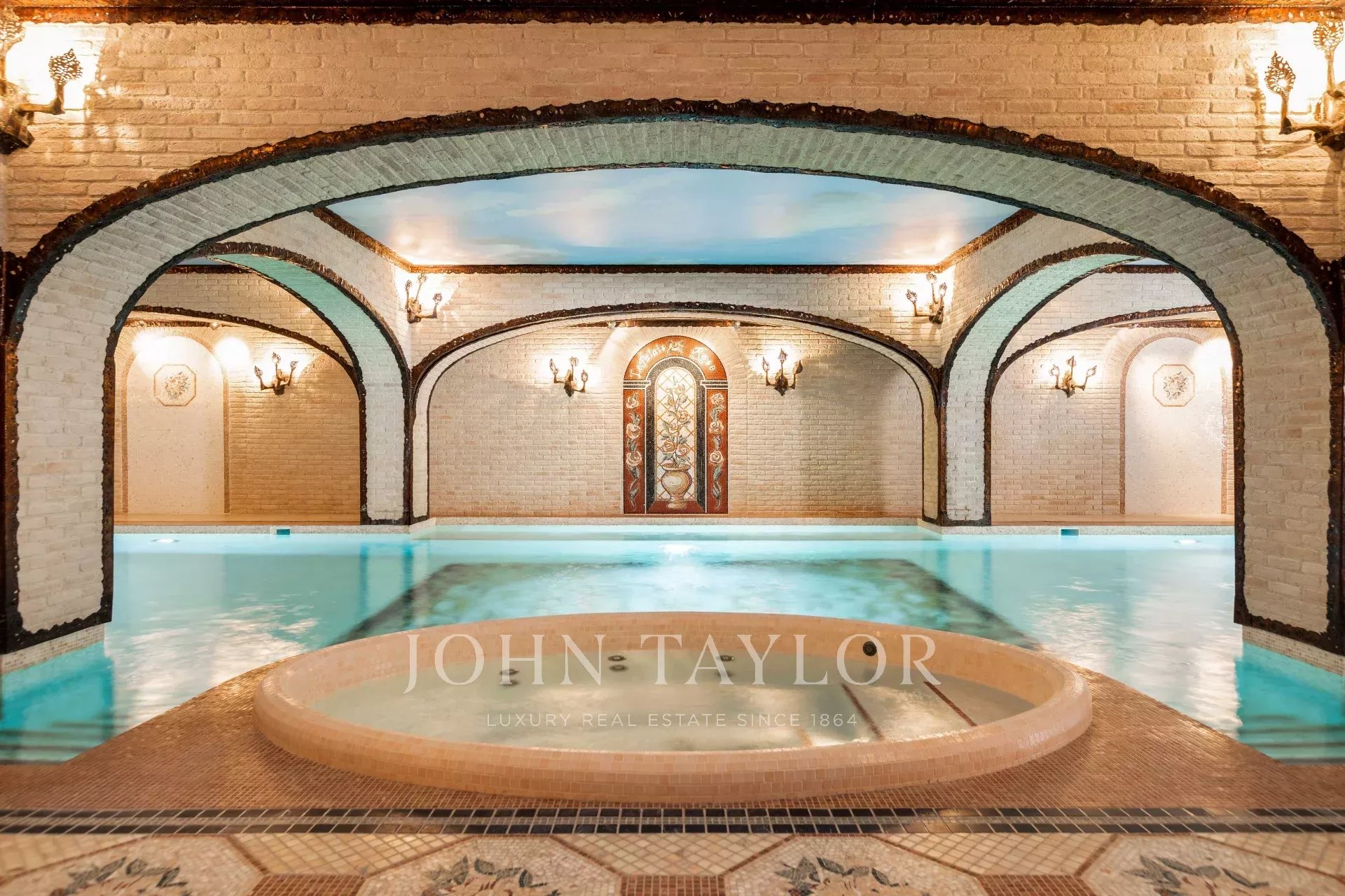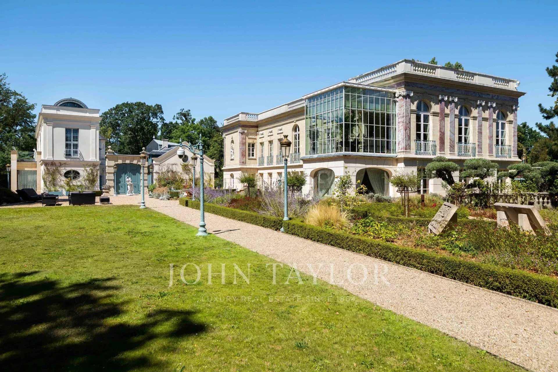 Tento palác inspirovaný Velkým Trianonem, zasazený do luxusního parku Parc des Ibis du Vésinet, nabízí 1769 m&&& prostoru pro rodinu a recepce rozděleného mezi přízemí, zahradní úroveň a upravené suterény.