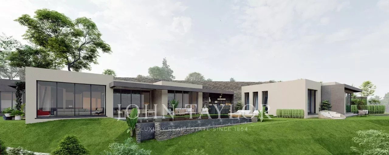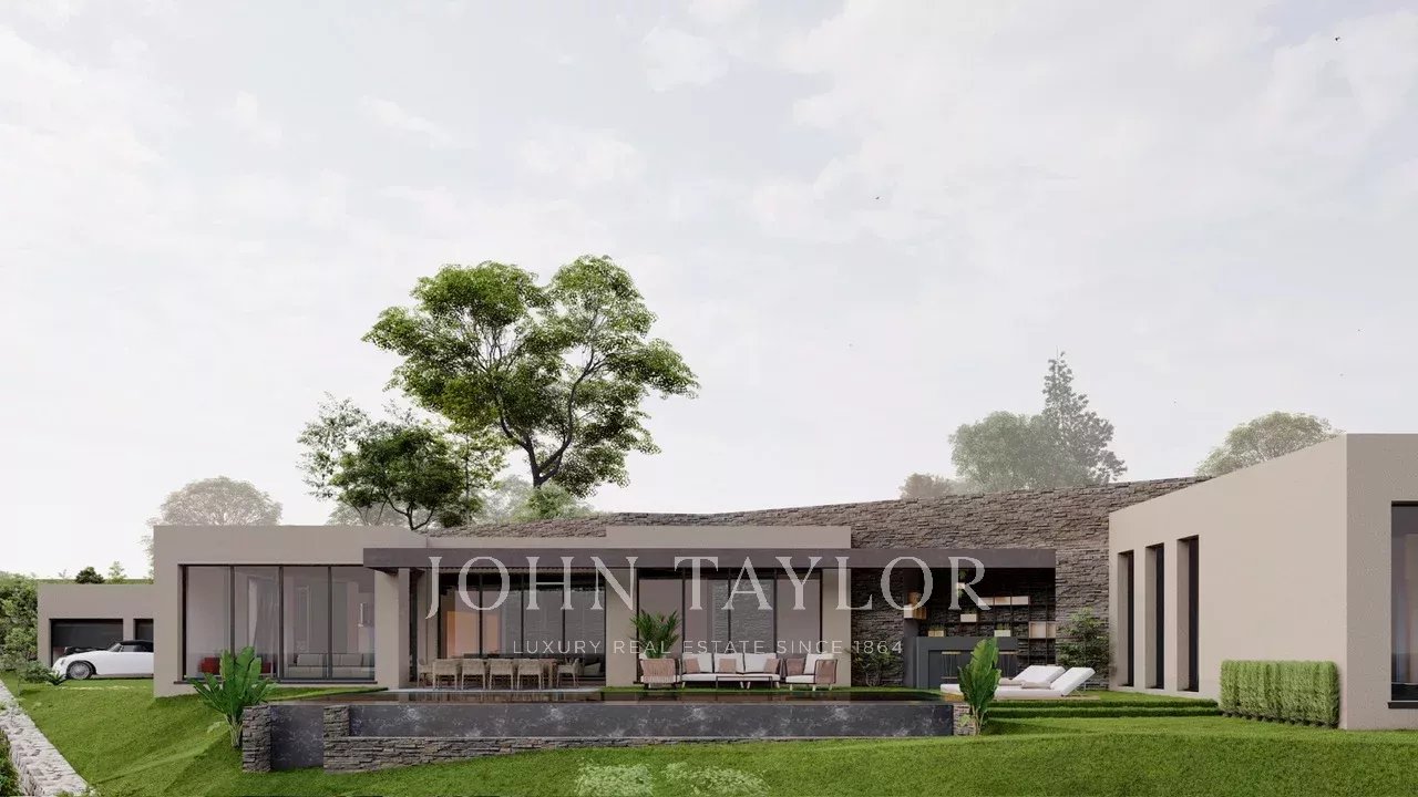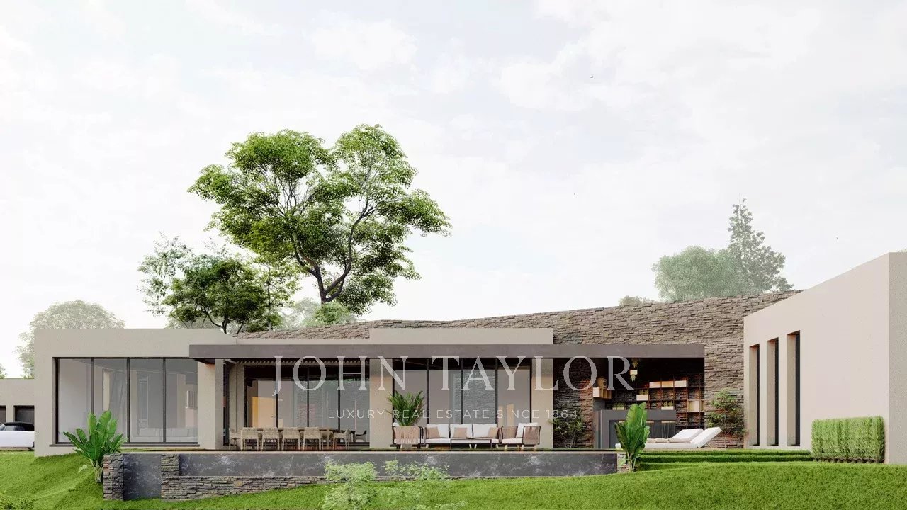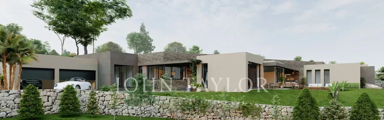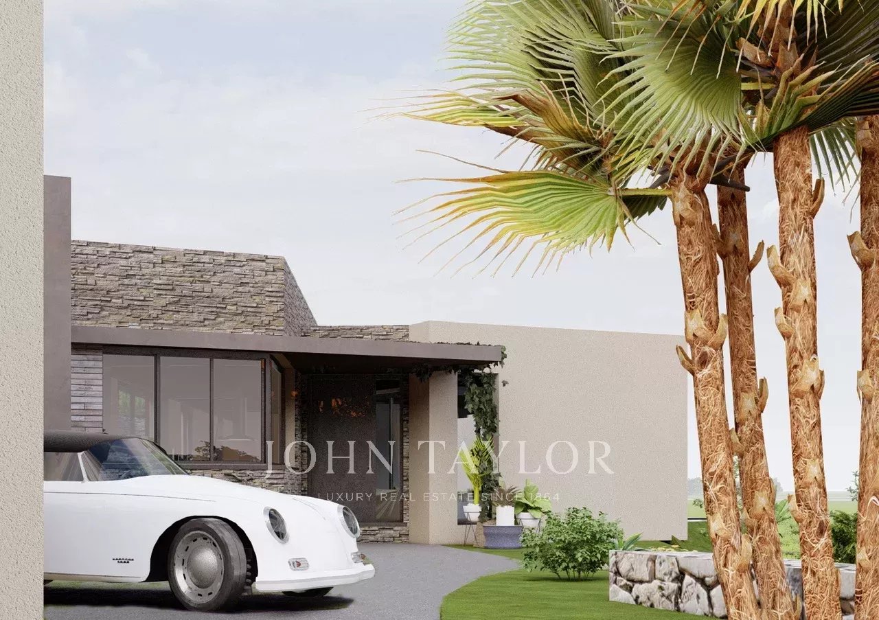 Udělené stavební povolení pro moderní jednopodlažní vilu o celkové ploše 477 m2, bazén a garáž pro 3 auta připojenou k vile.