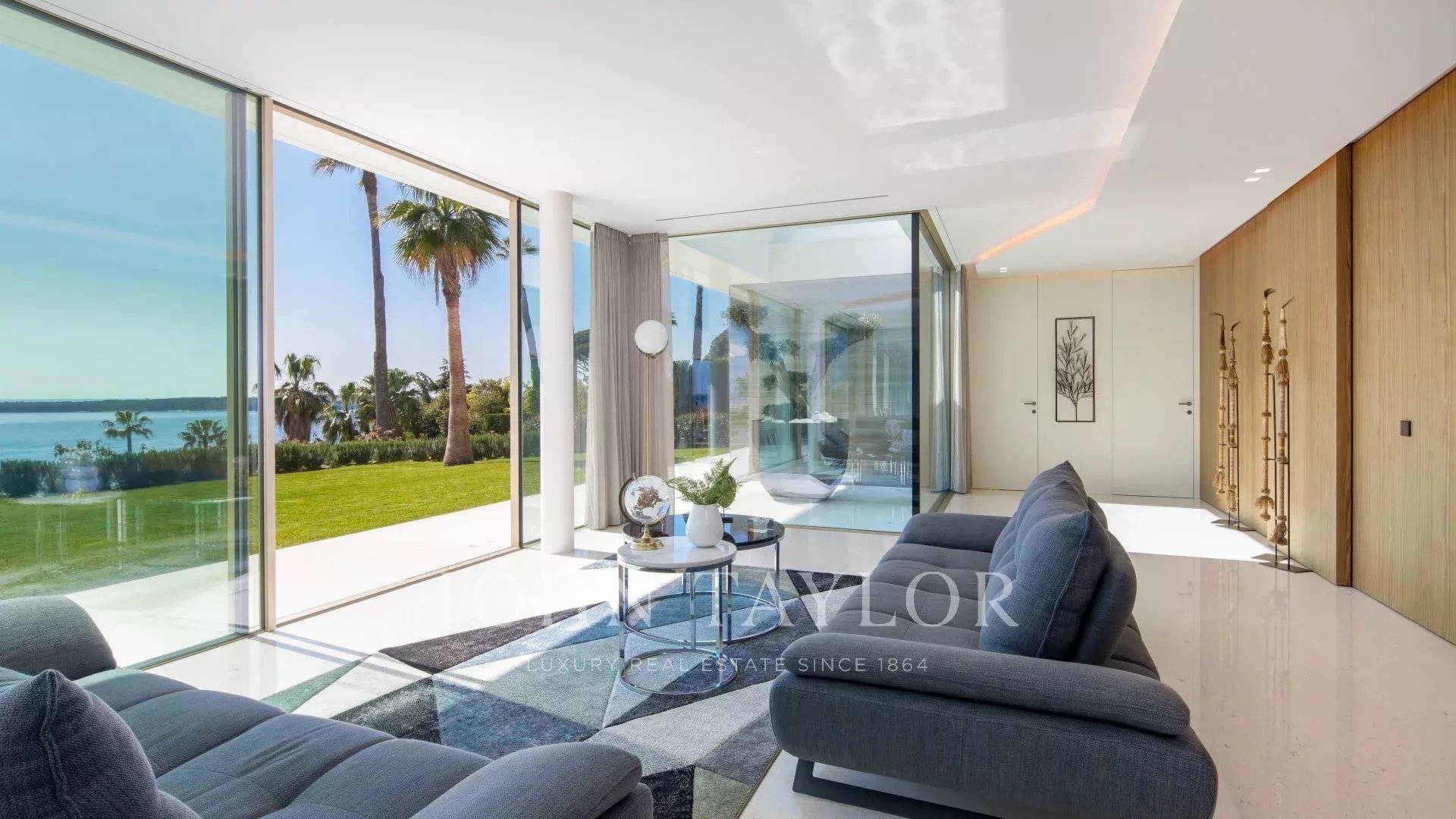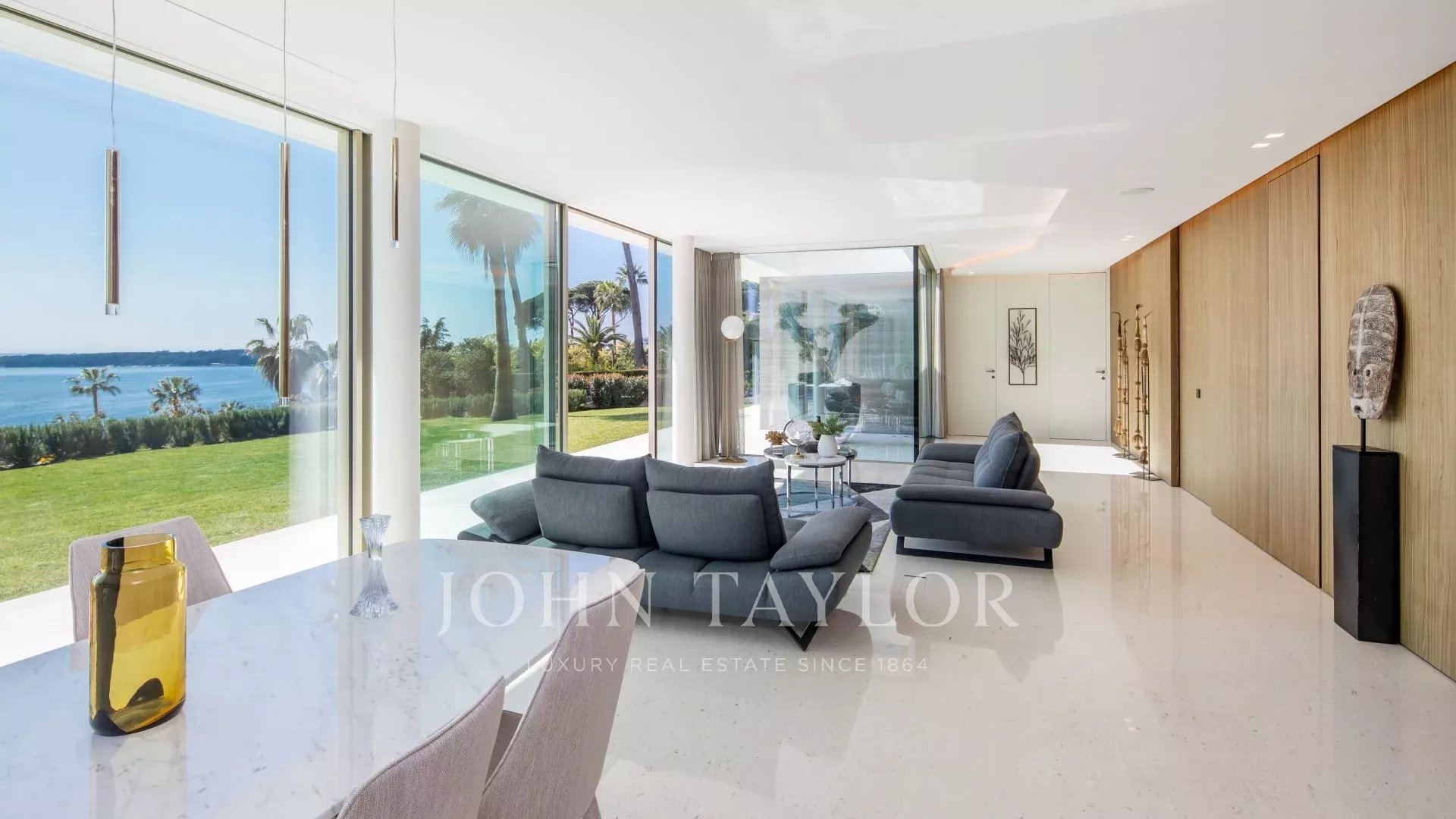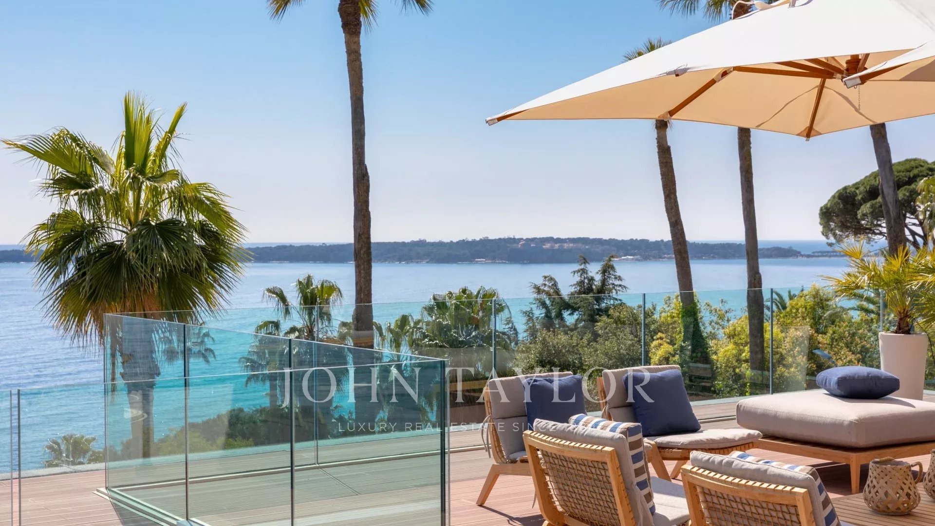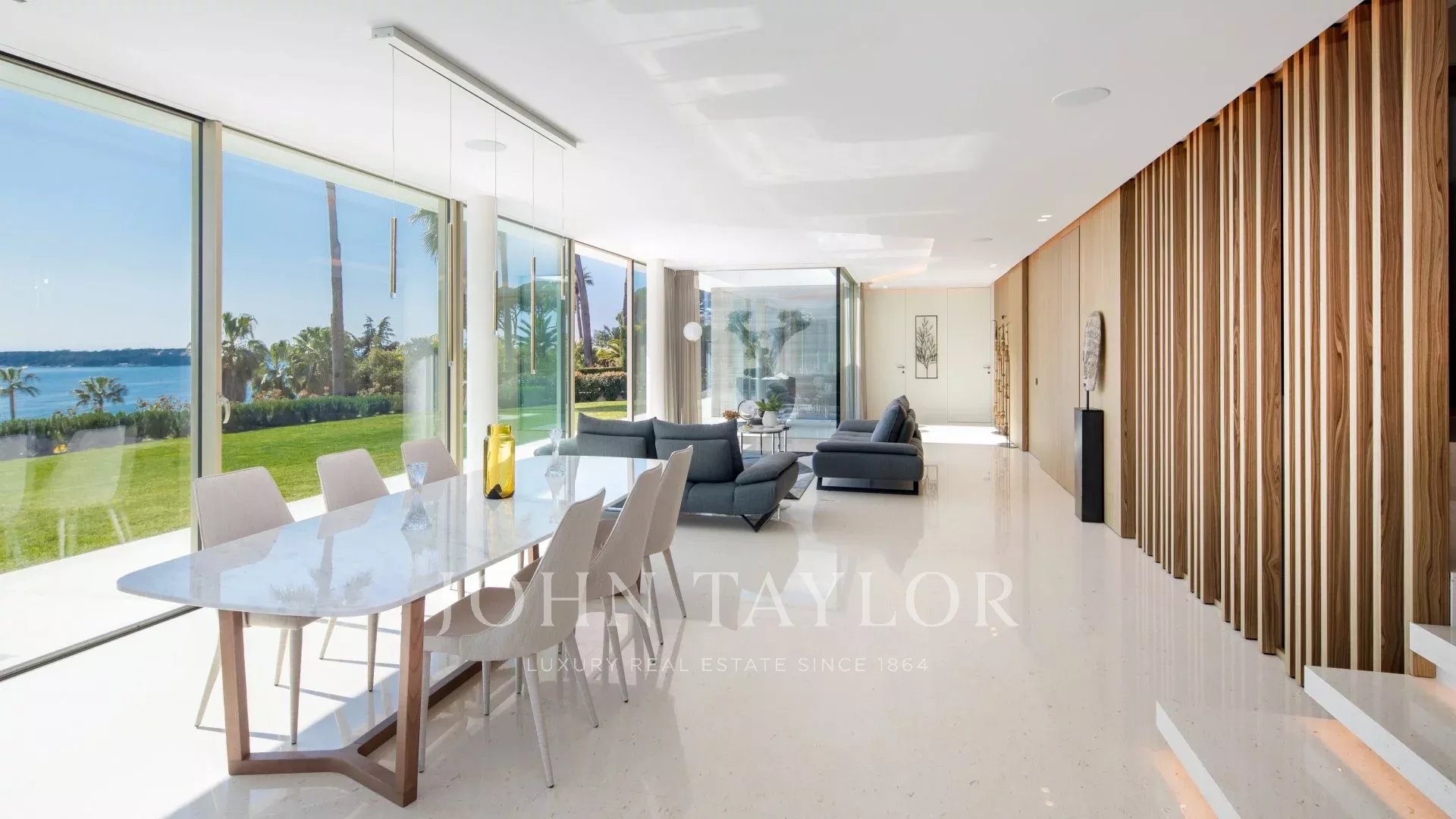 Vila je maximálně otevřená díky proskleným stěnám a velkým oknům, která ji propojují s okolní krajinou. Většina místností je rozšířena o rozlehlé terasy a nabízí privilegovaný výhled na moře a ostrov Sainte Marguerite.