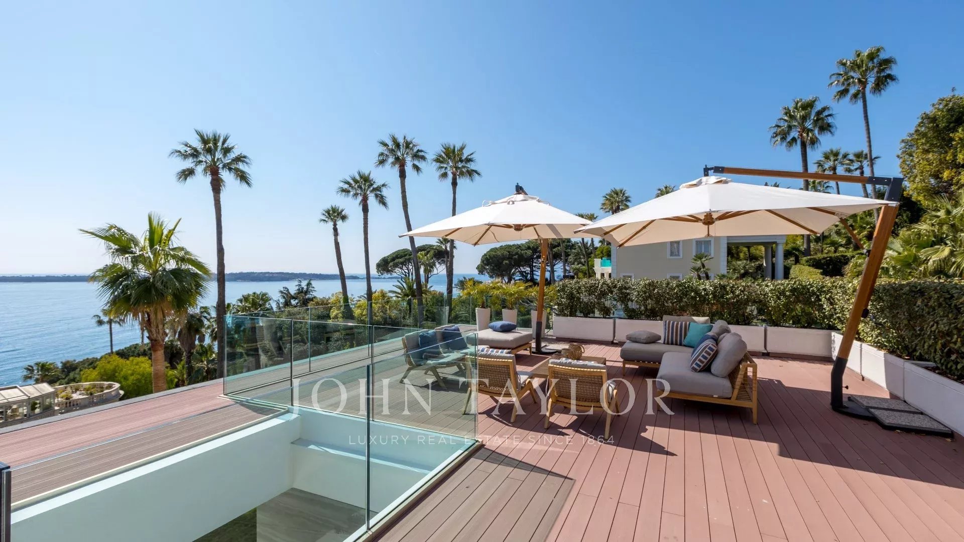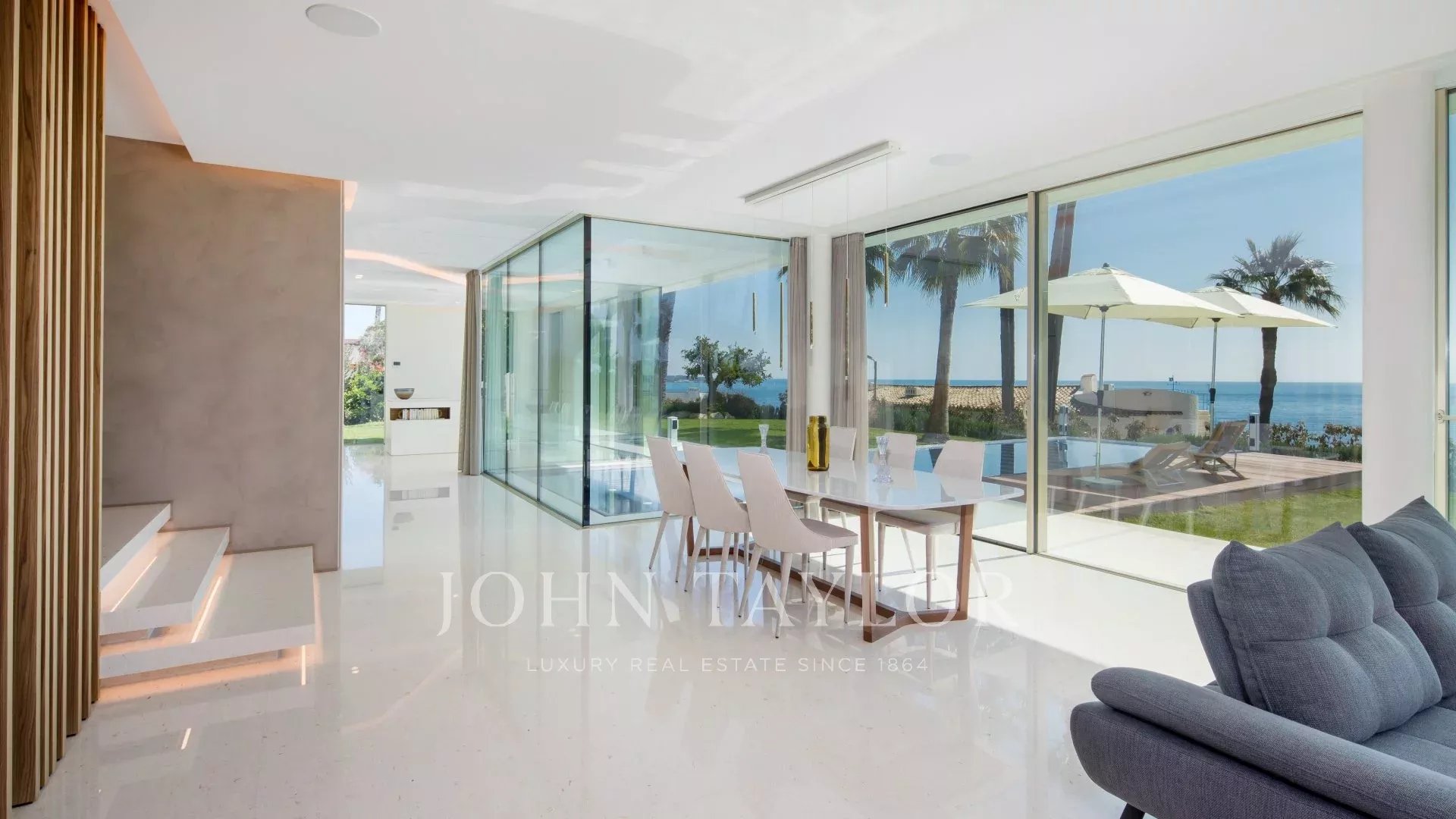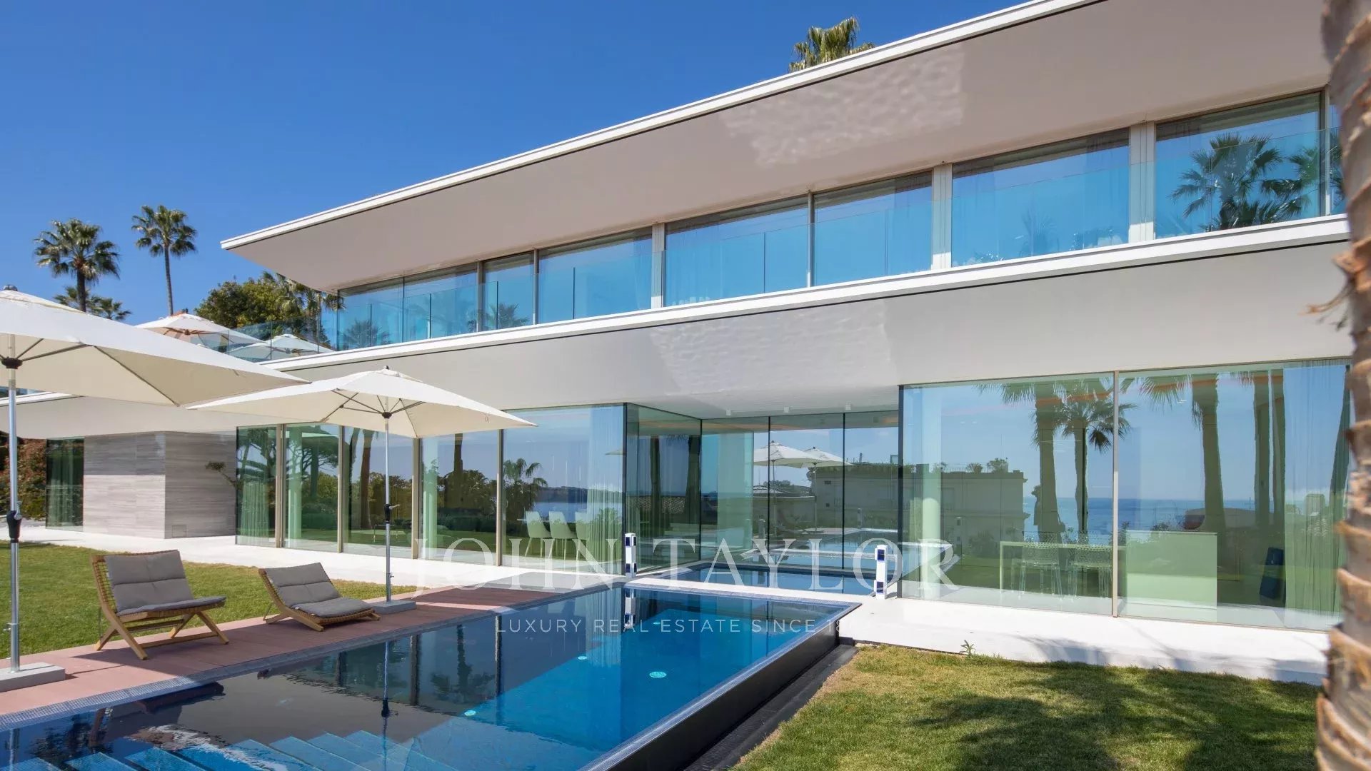 Vila je maximálně otevřená díky proskleným stěnám a velkým oknům, která ji propojují s okolní krajinou. Většina místností je rozšířena o rozlehlé terasy a nabízí privilegovaný výhled na moře a ostrov Sainte Marguerite.