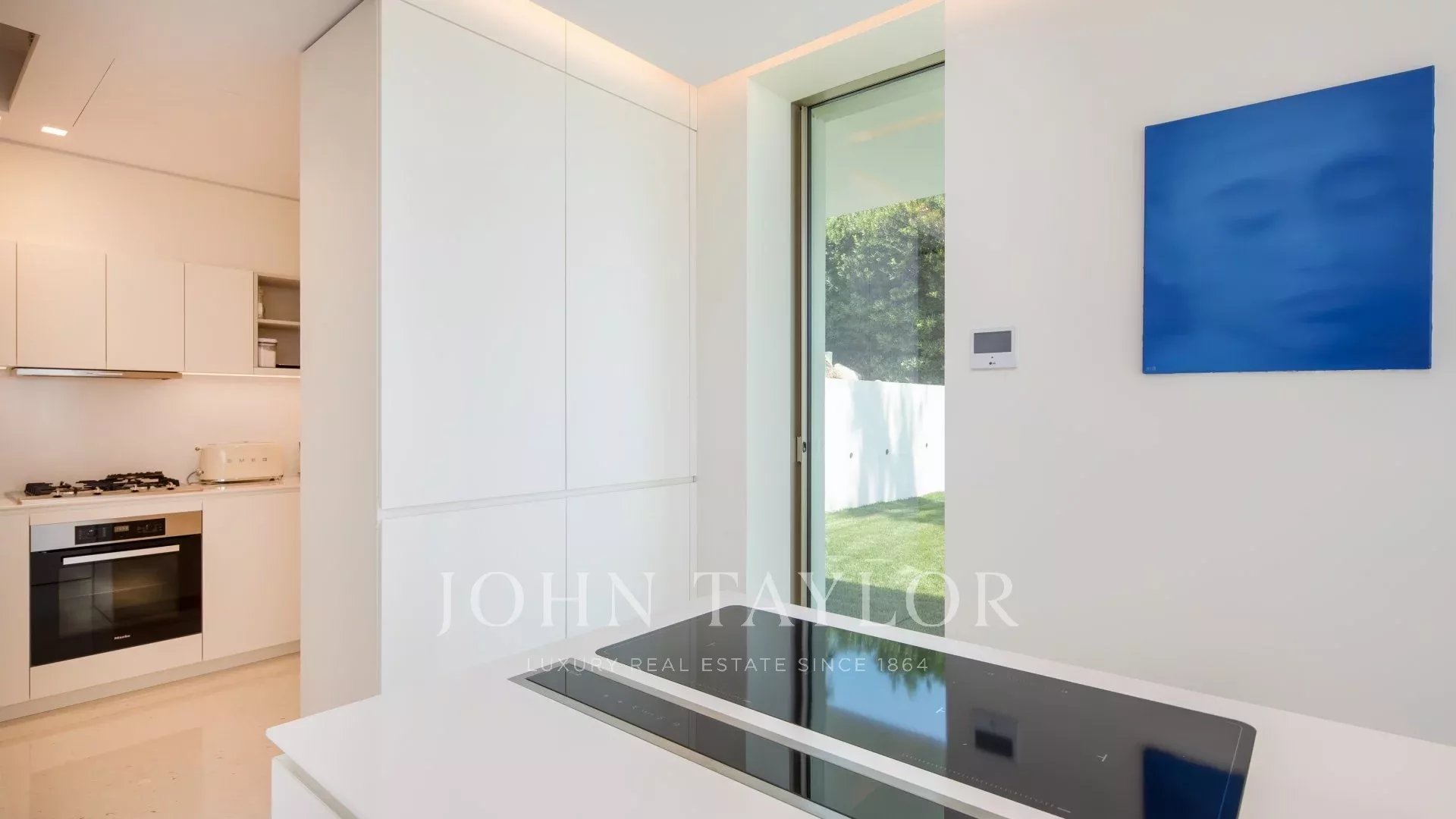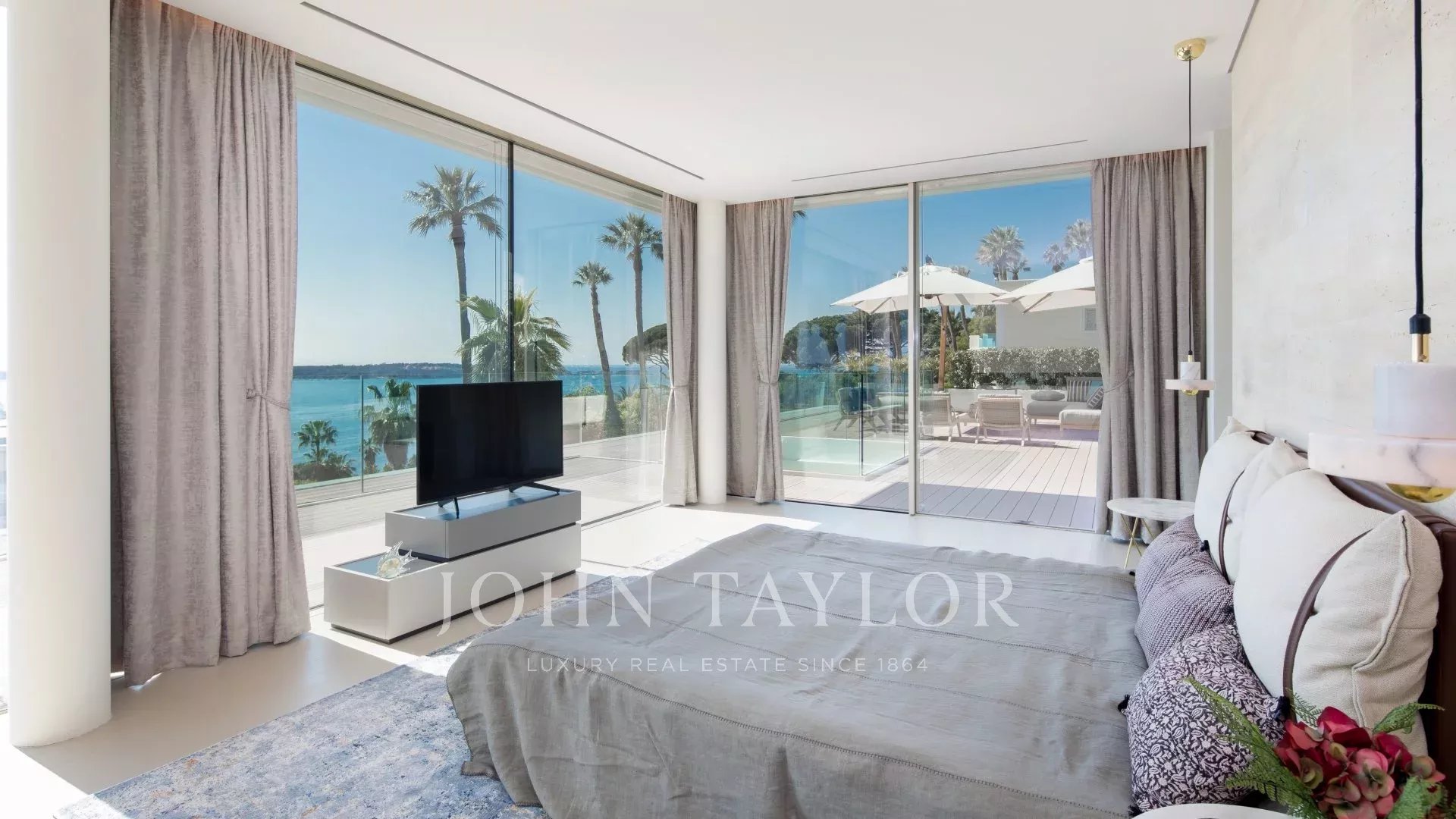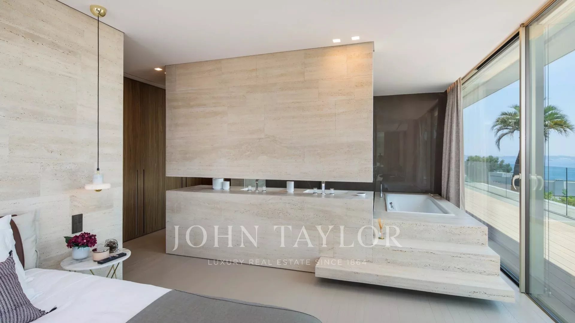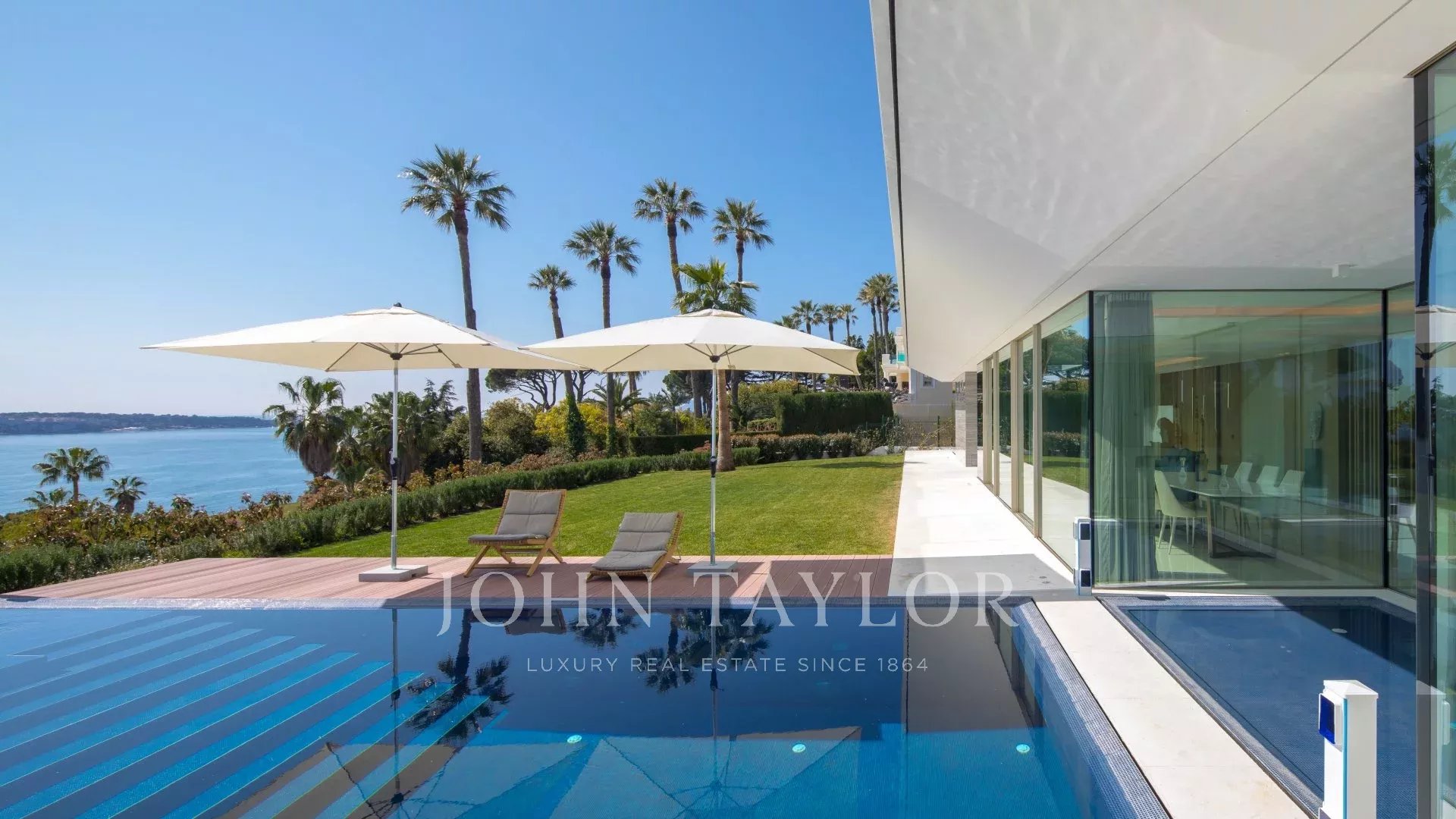 Vila je maximálně otevřená díky proskleným stěnám a velkým oknům, která ji propojují s okolní krajinou. Většina místností je rozšířena o rozlehlé terasy a nabízí privilegovaný výhled na moře a ostrov Sainte Marguerite.