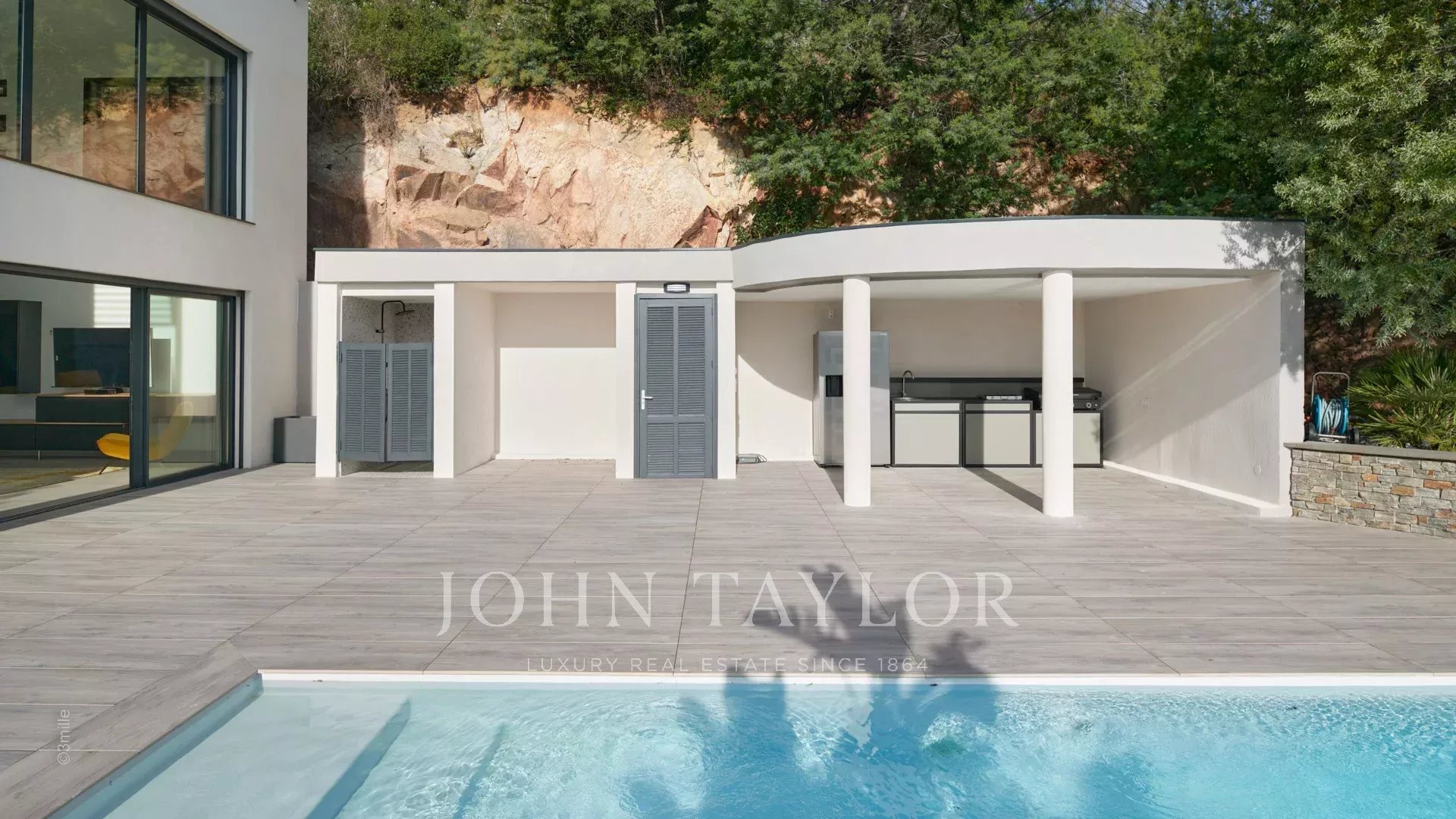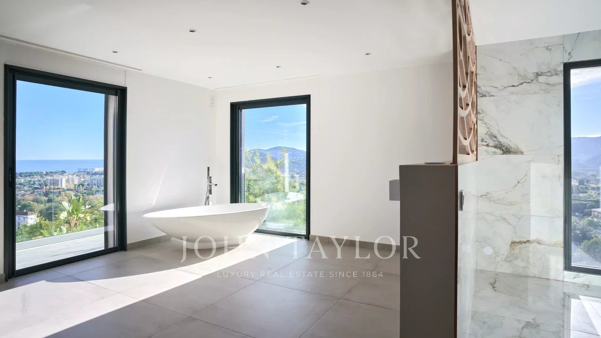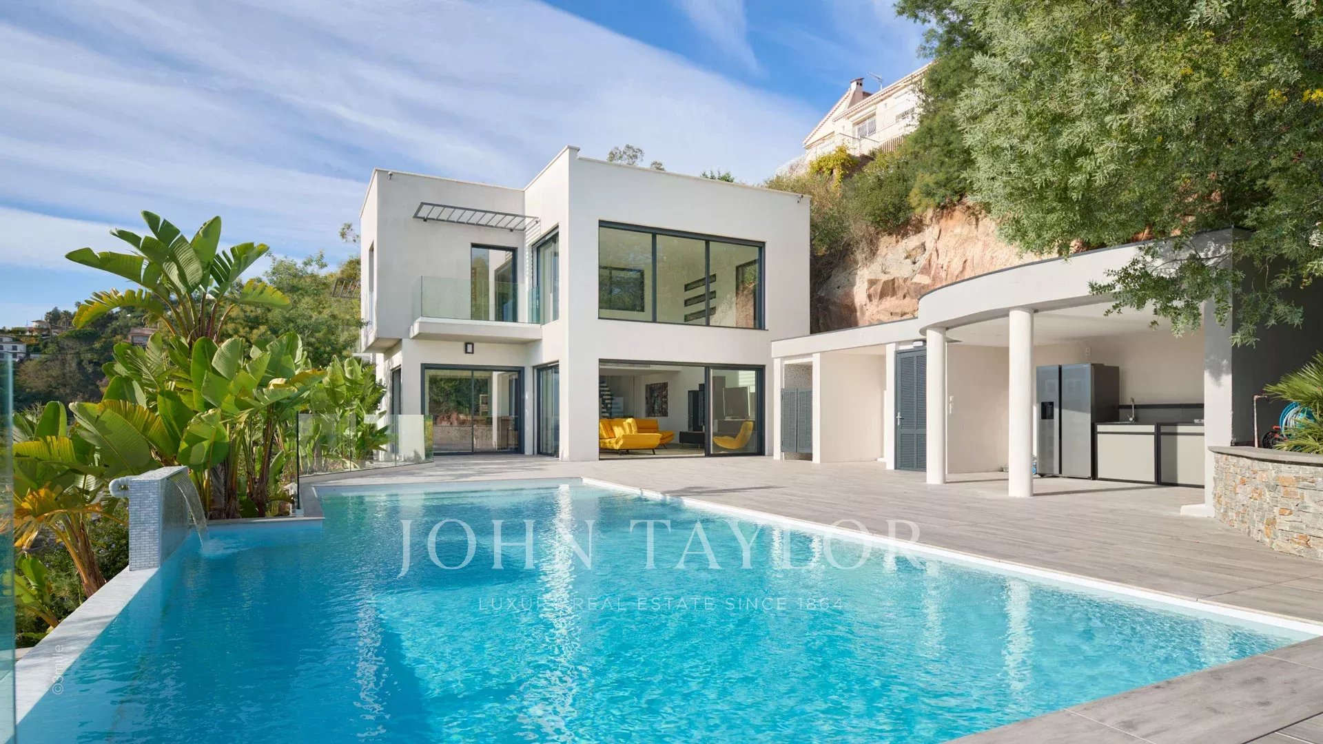 Tato nádherná moderní vila se nachází pouhých 5 minut od centra města Mandelieu a může se pochlubit špičkovými prvky, působivou architekturou a nerušeným výhledem na moře a ostrovy Lérins.