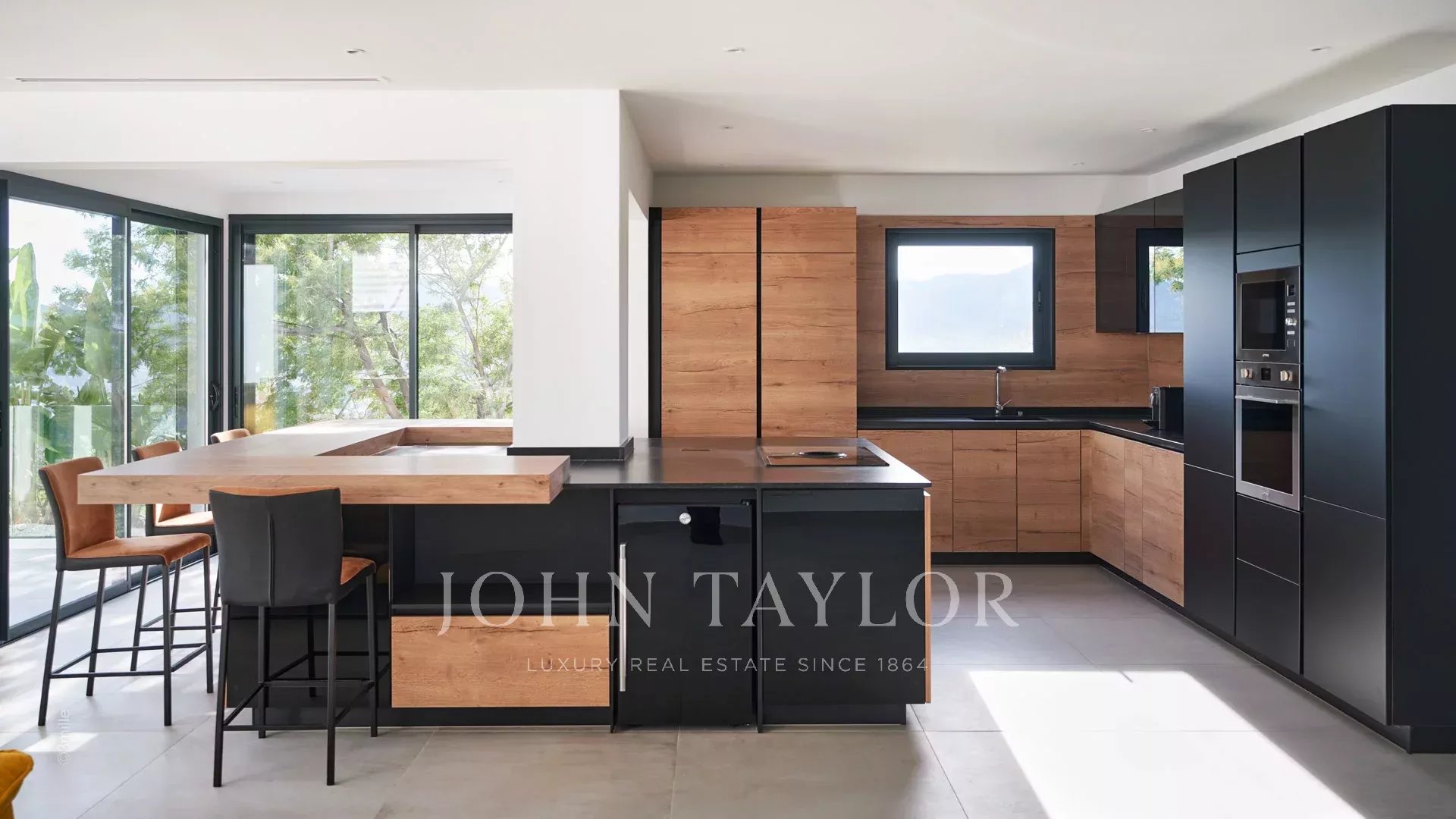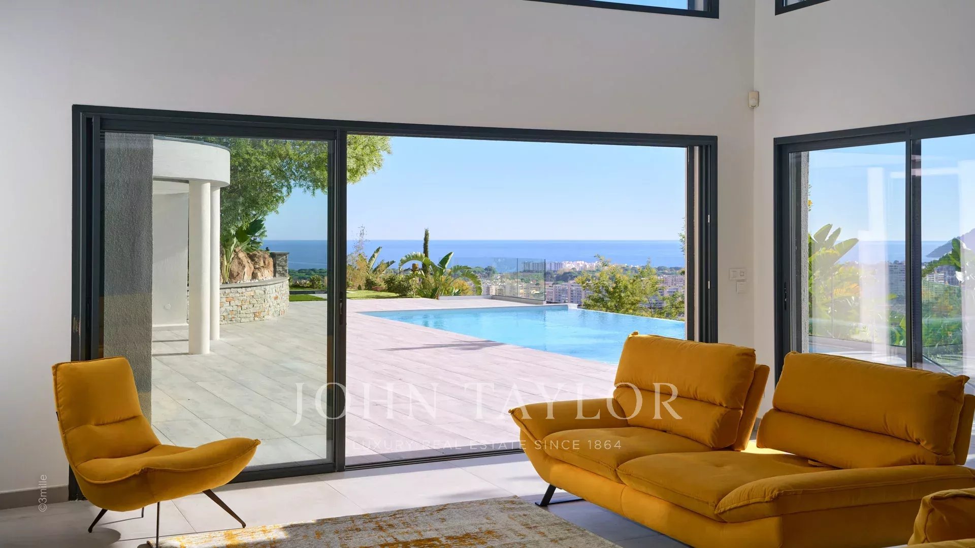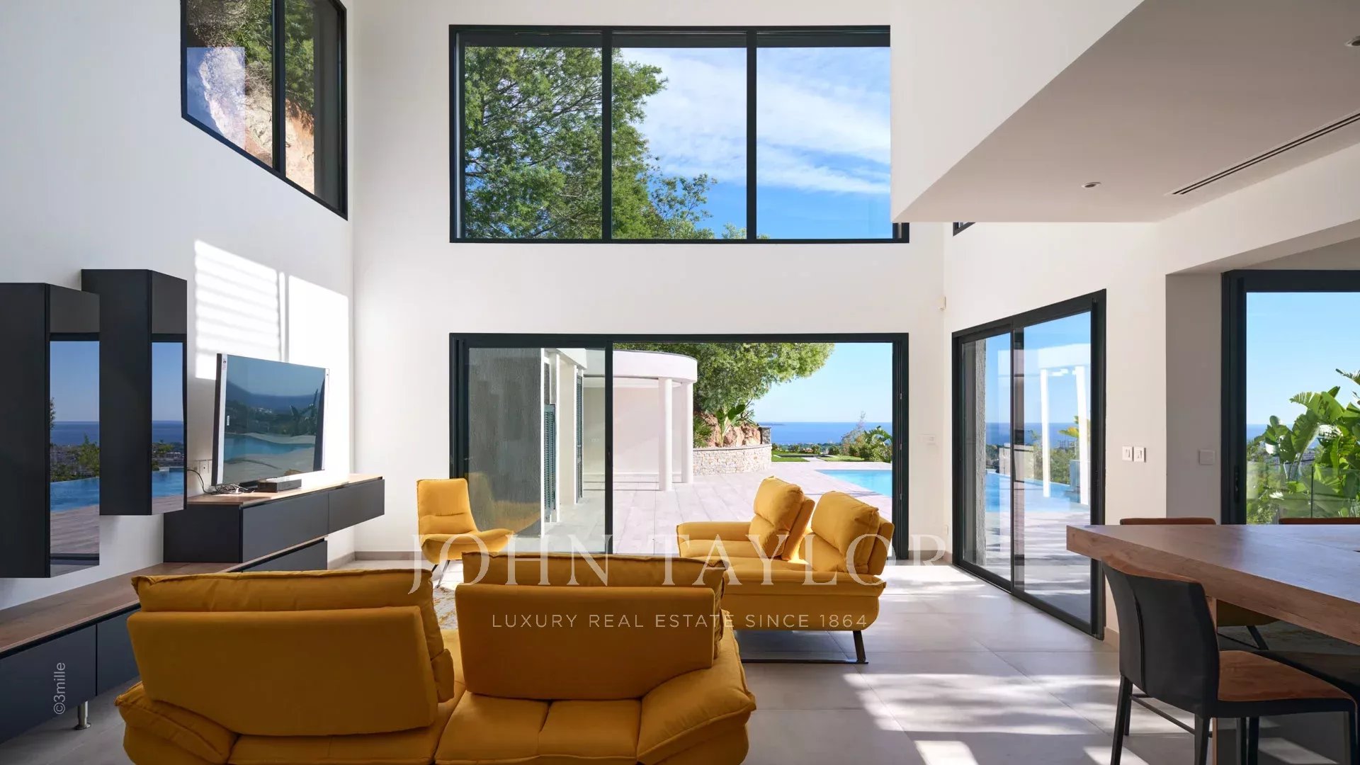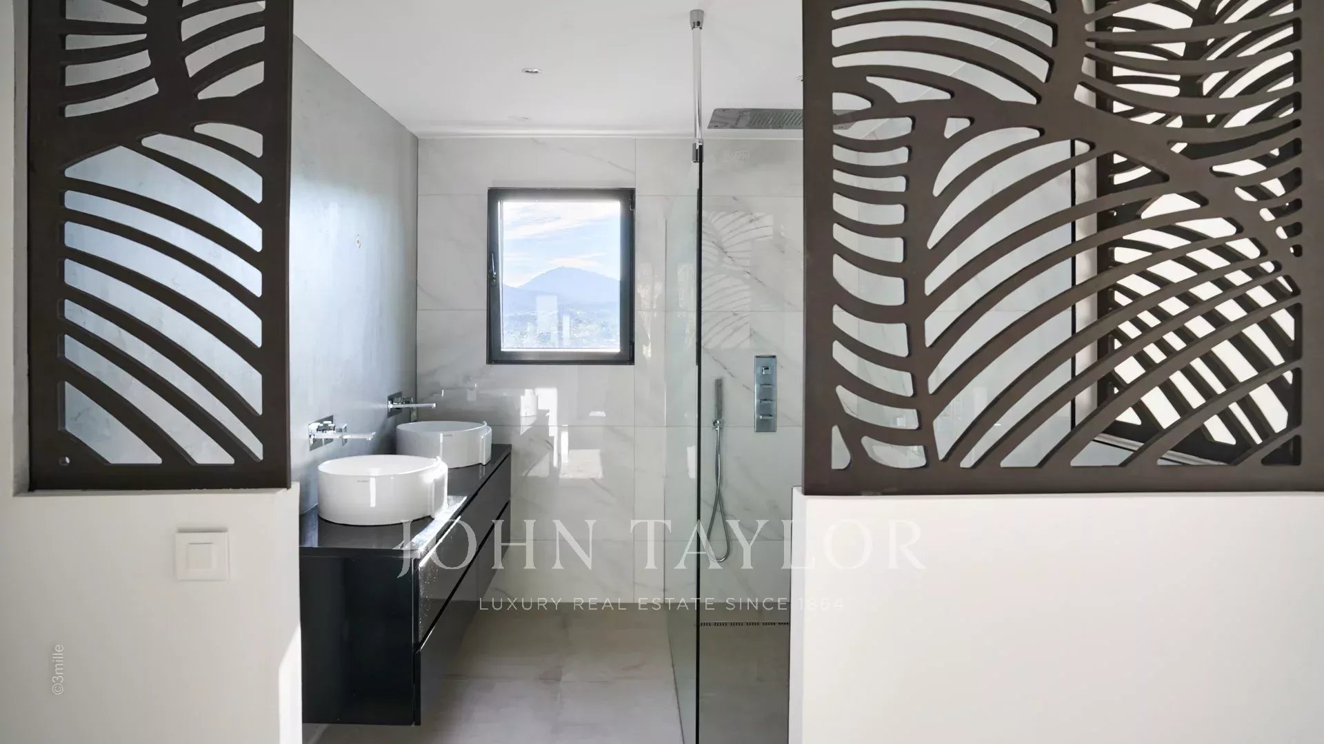 Tato nádherná moderní vila se nachází pouhých 5 minut od centra města Mandelieu a může se pochlubit špičkovými prvky, působivou architekturou a nerušeným výhledem na moře a ostrovy Lérins.