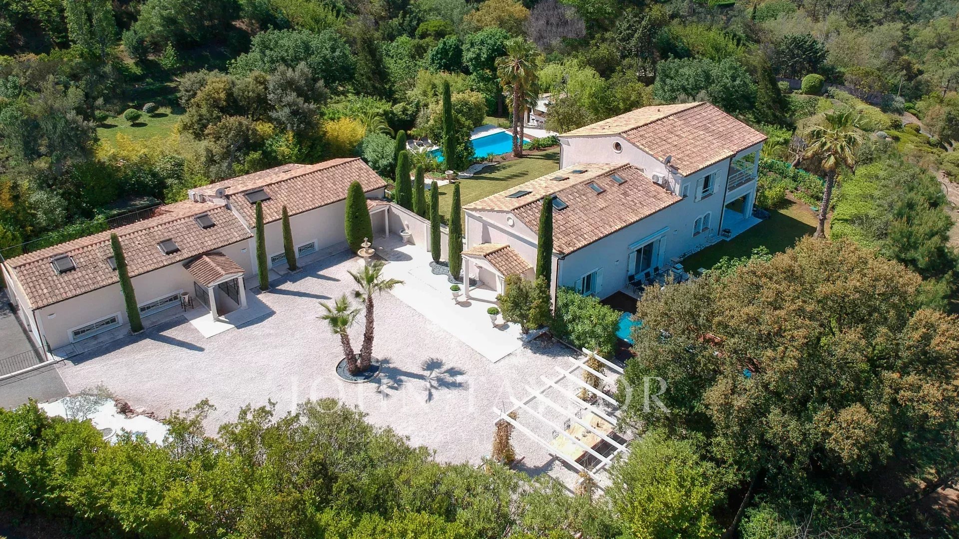 Tato luxusní nemovitost se nachází v srdci masivu Esterel v Saint Jean de Cannes, ve velmi dobře zabezpečeném areálu, a skládá se ze dvou vil, které nabízejí jedinečné životní prostředí.