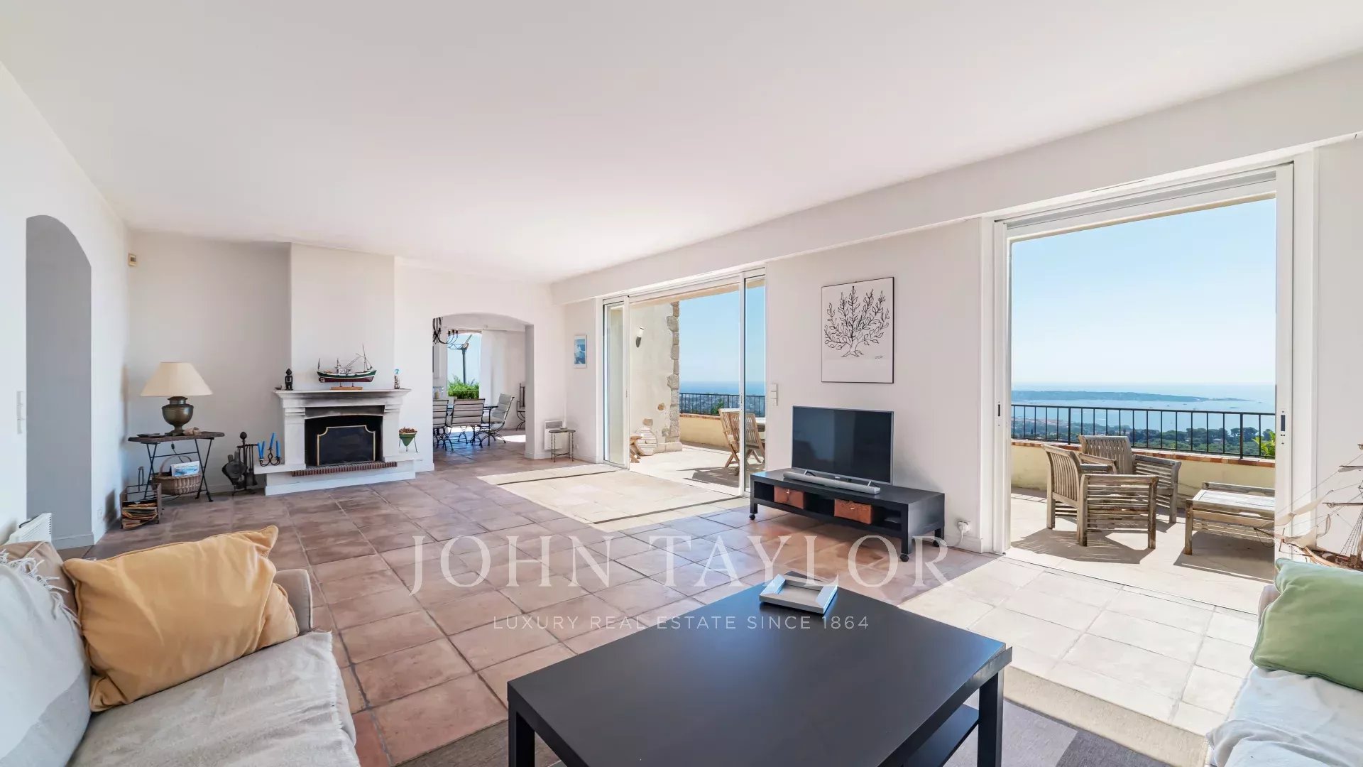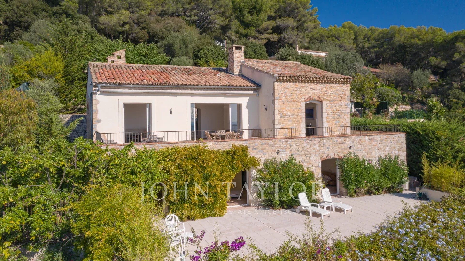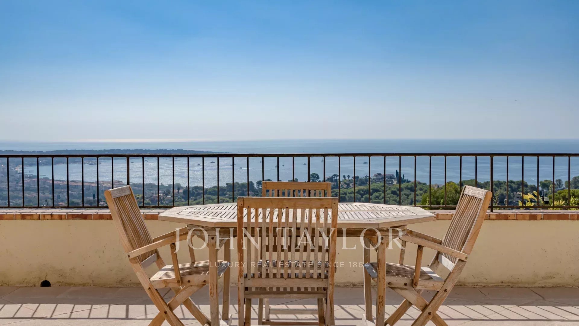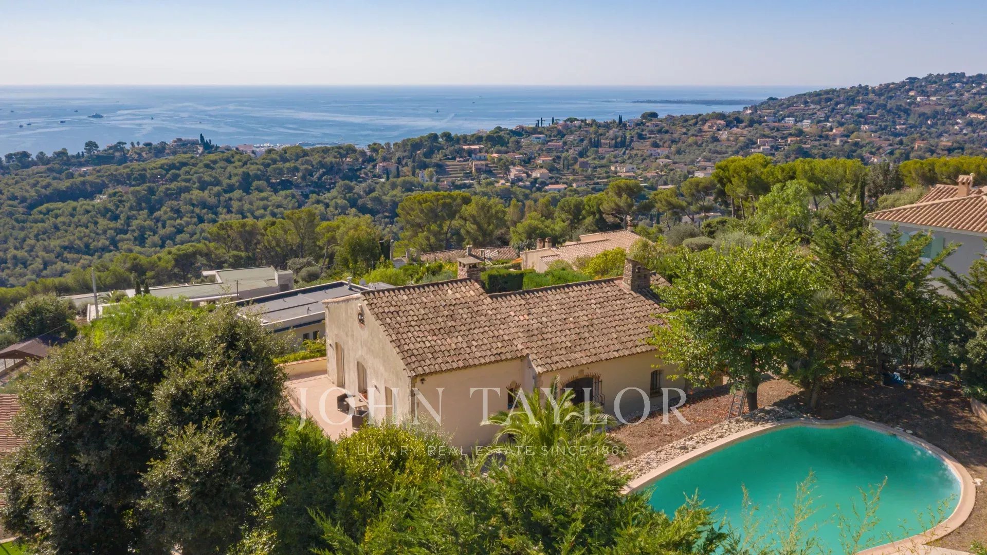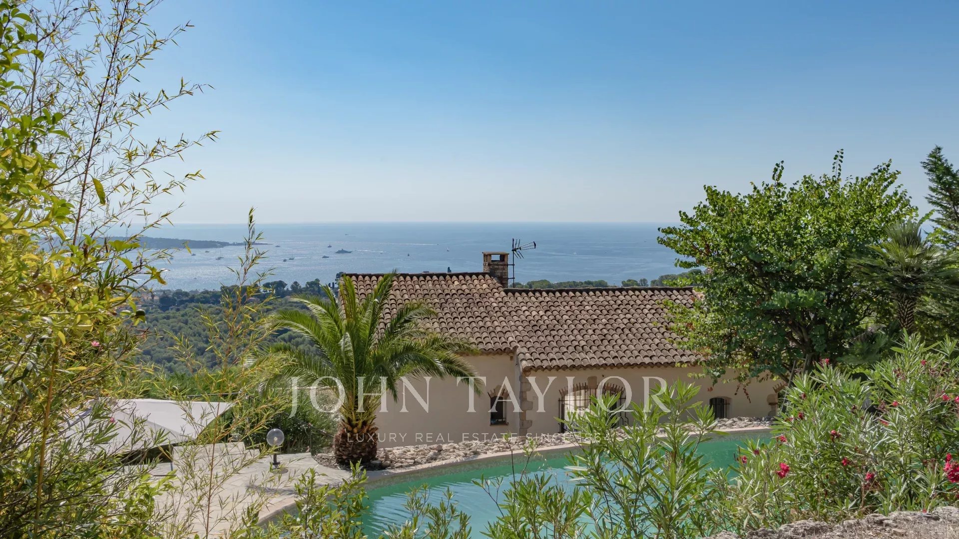 Tato provensálská vila na pozemku o rozloze 1820 m² s bazénem se nachází na výšinách Golfe Juan, v blízkosti hlavních silnic, a nabízí výjimečný výhled na moře a Cap d'Antibes.
