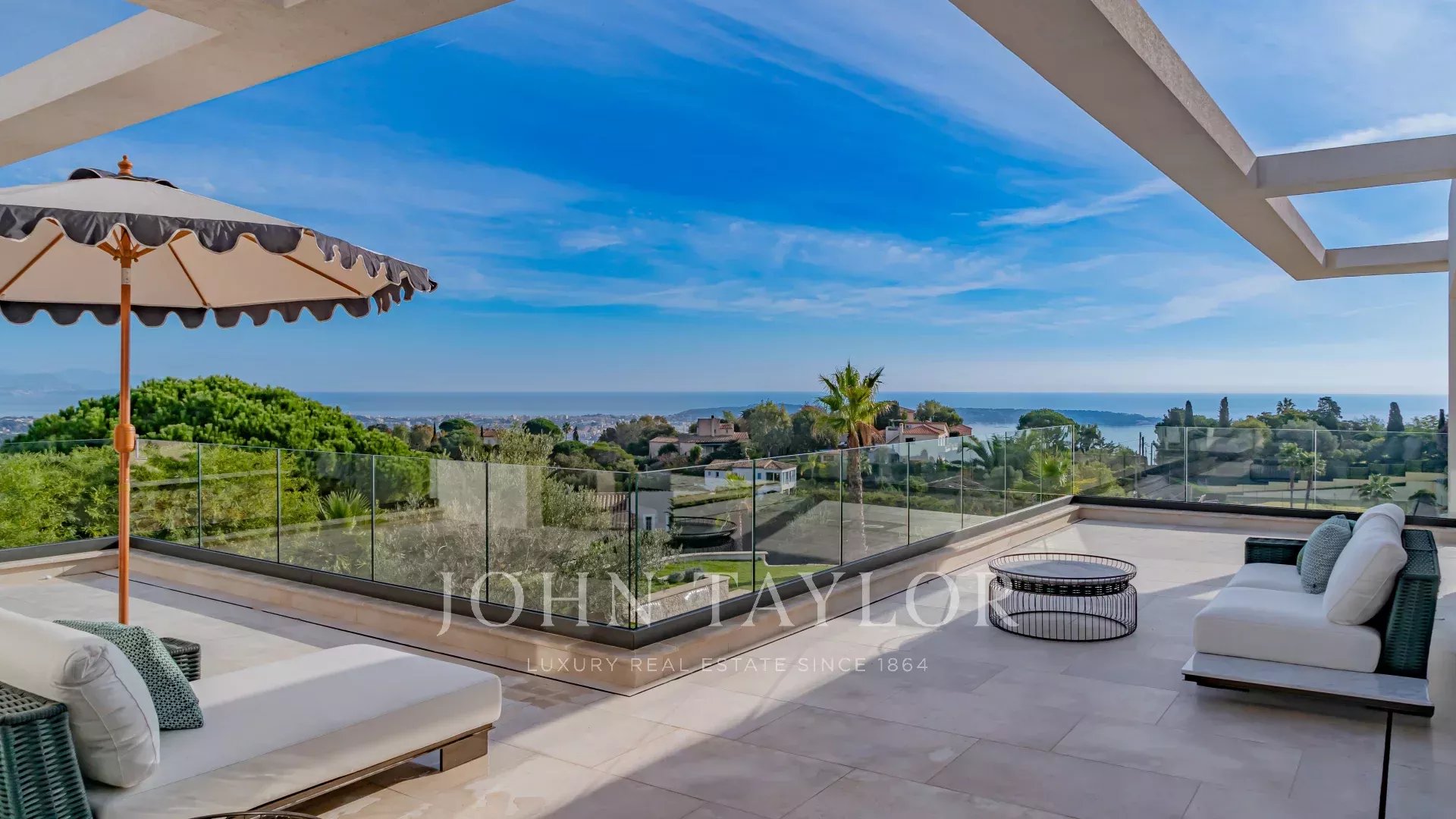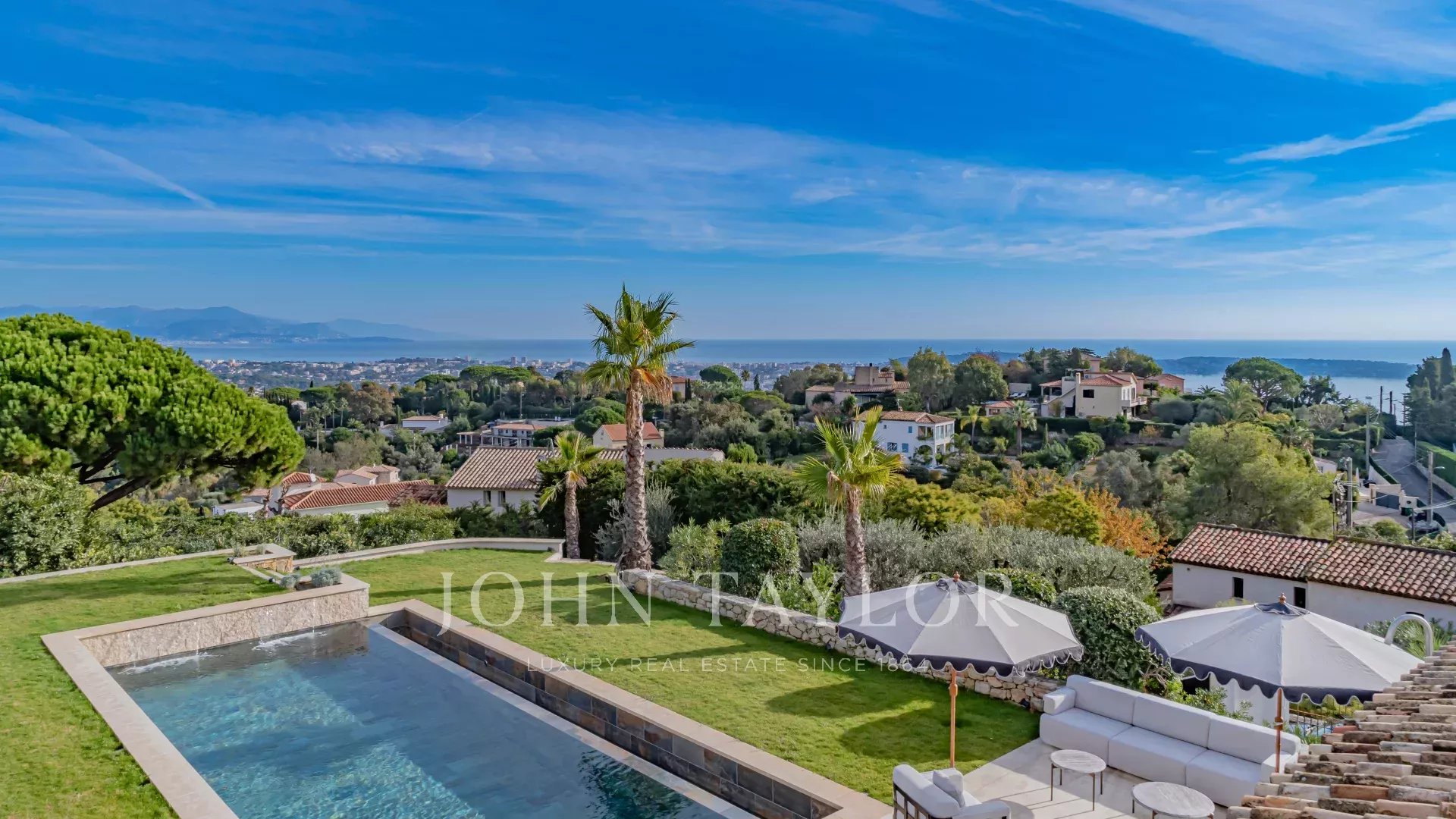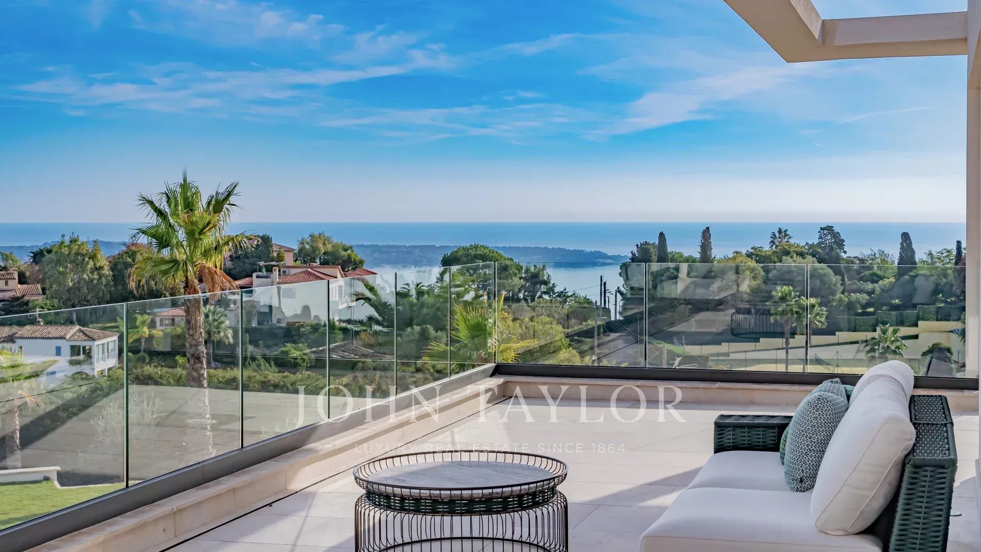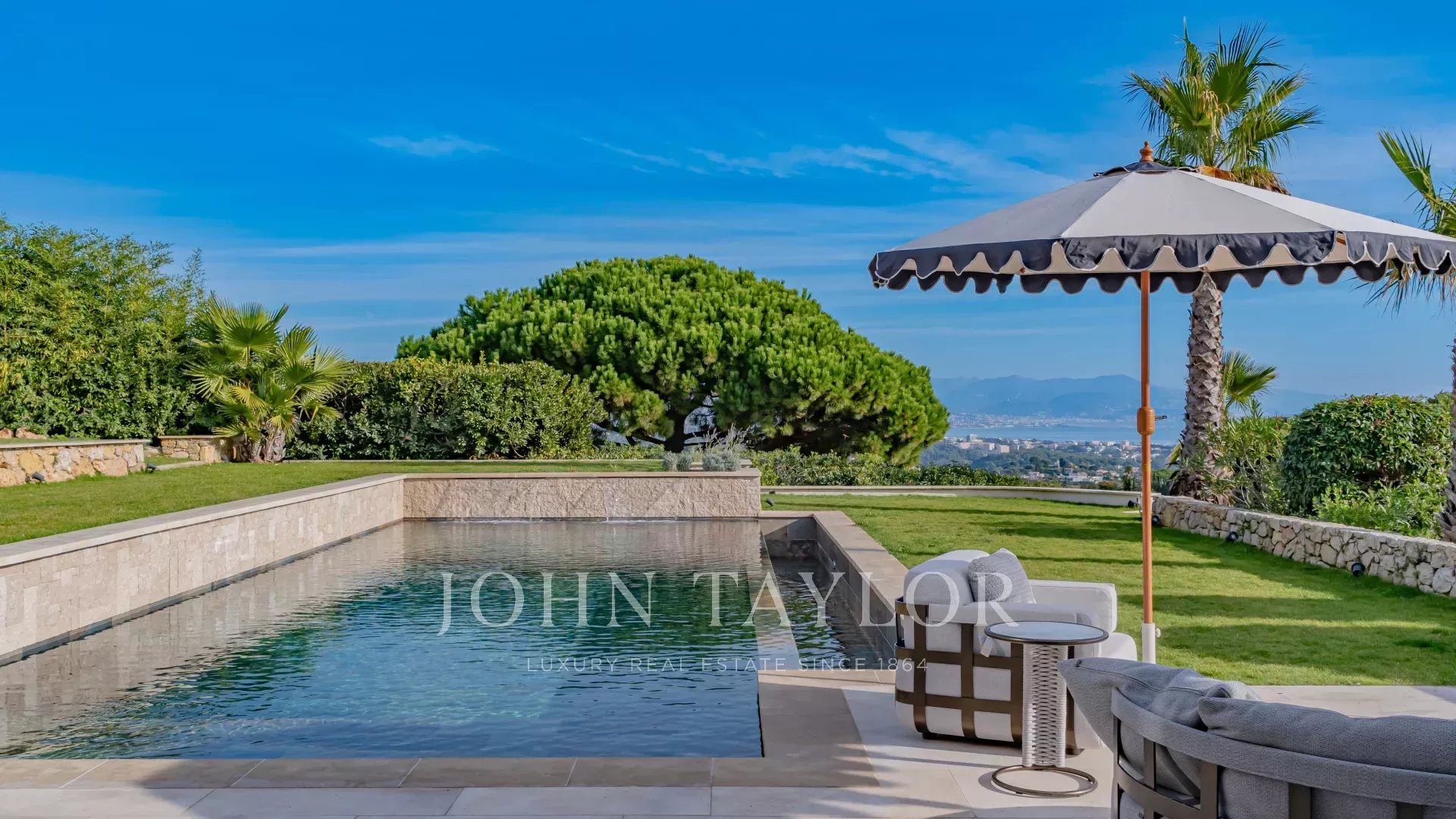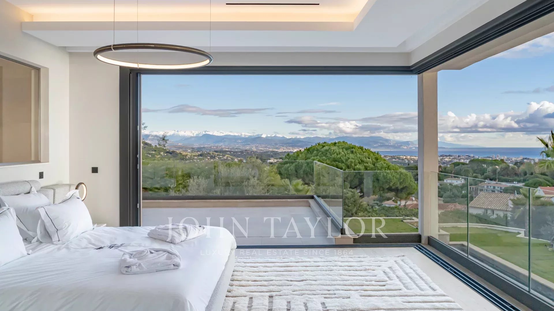 Tato moderní vila o rozloze přibližně 400 m² se nachází v uzavřeném areálu v prestižní, mimořádně klidné rezidenční čtvrti Super Cannes. Stojí na dominantním místě na pozemku o rozloze 2 090 m² a nabízí nádherný výhled od Cap d'Antibes přes Alpy až k italským horám.