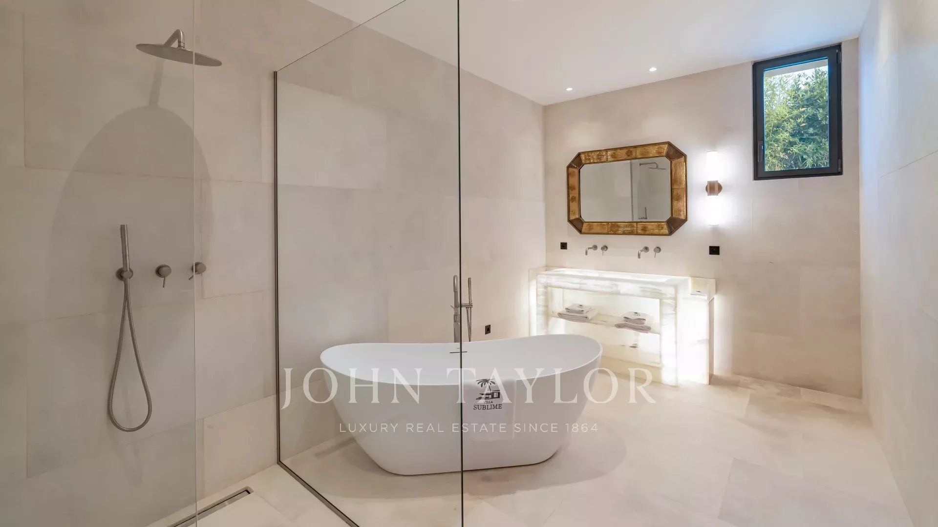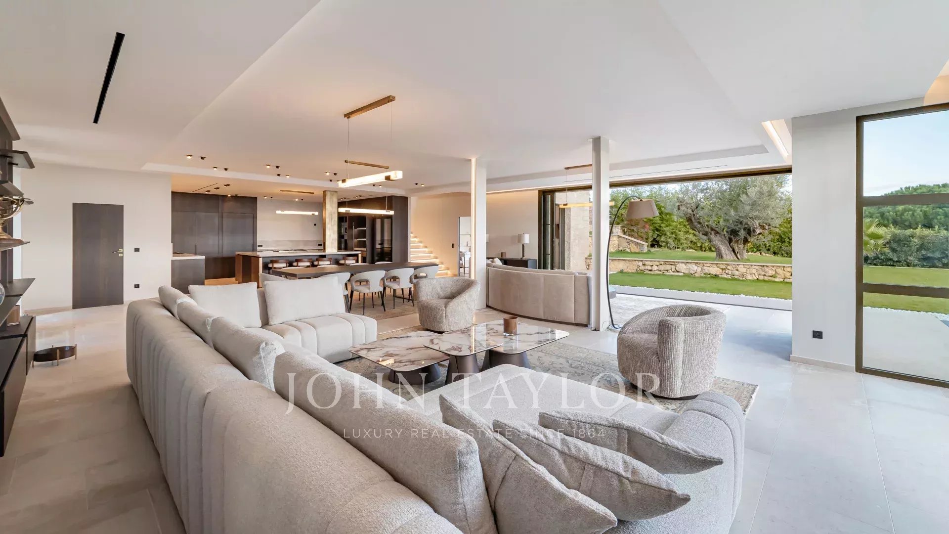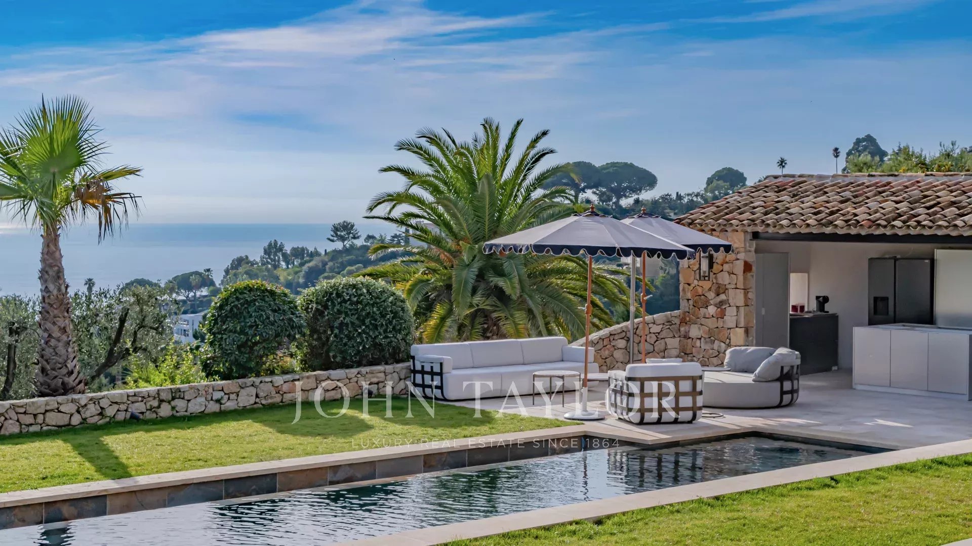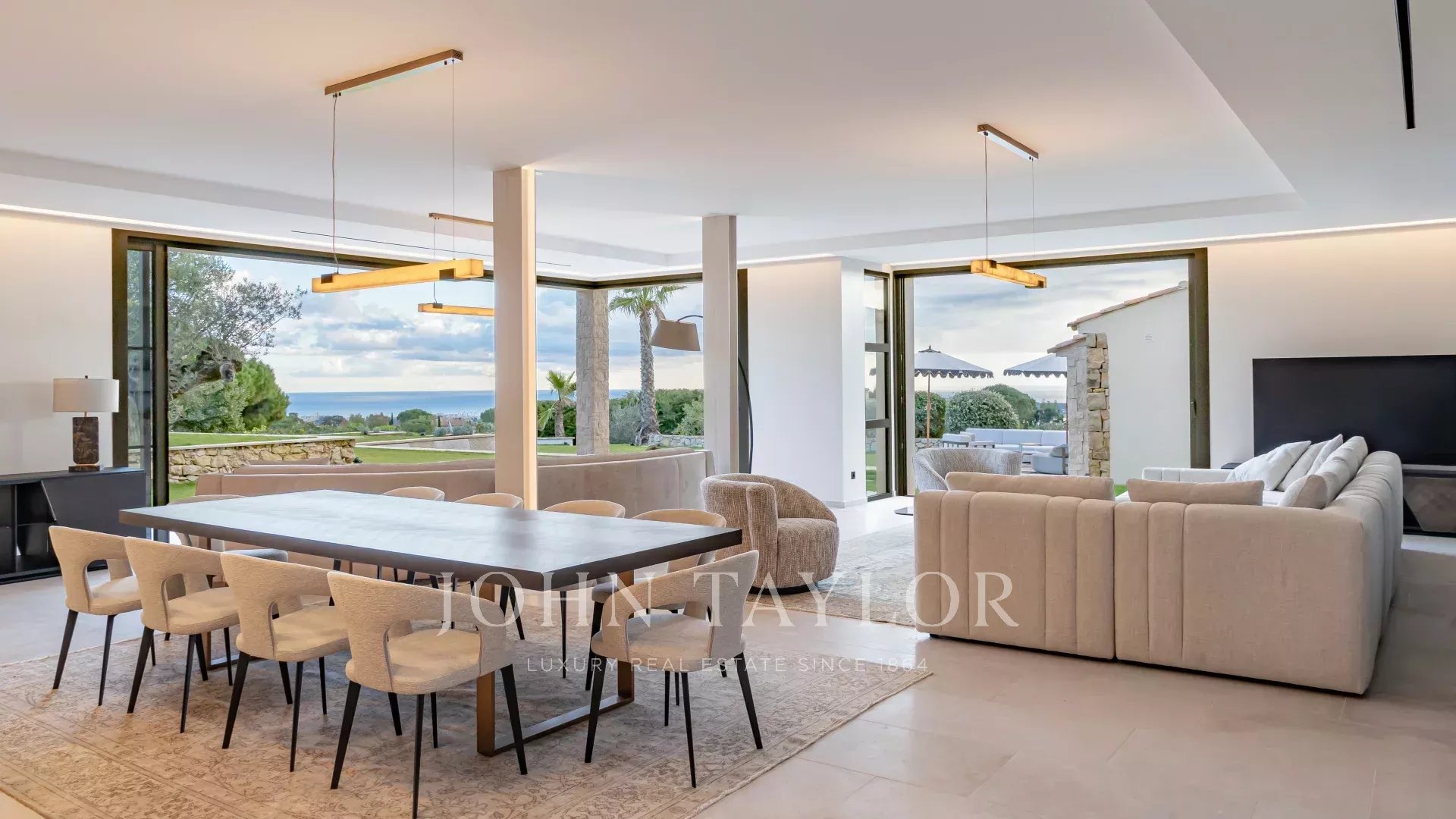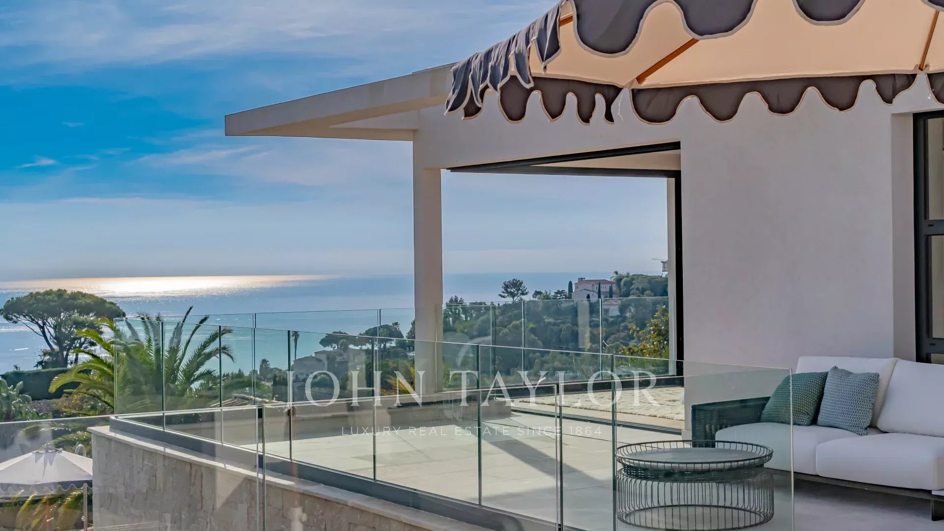 Tato moderní vila o rozloze přibližně 400 m² se nachází v uzavřeném areálu v prestižní, mimořádně klidné rezidenční čtvrti Super Cannes. Stojí na dominantním místě na pozemku o rozloze 2 090 m² a nabízí nádherný výhled od Cap d'Antibes přes Alpy až k italským horám.