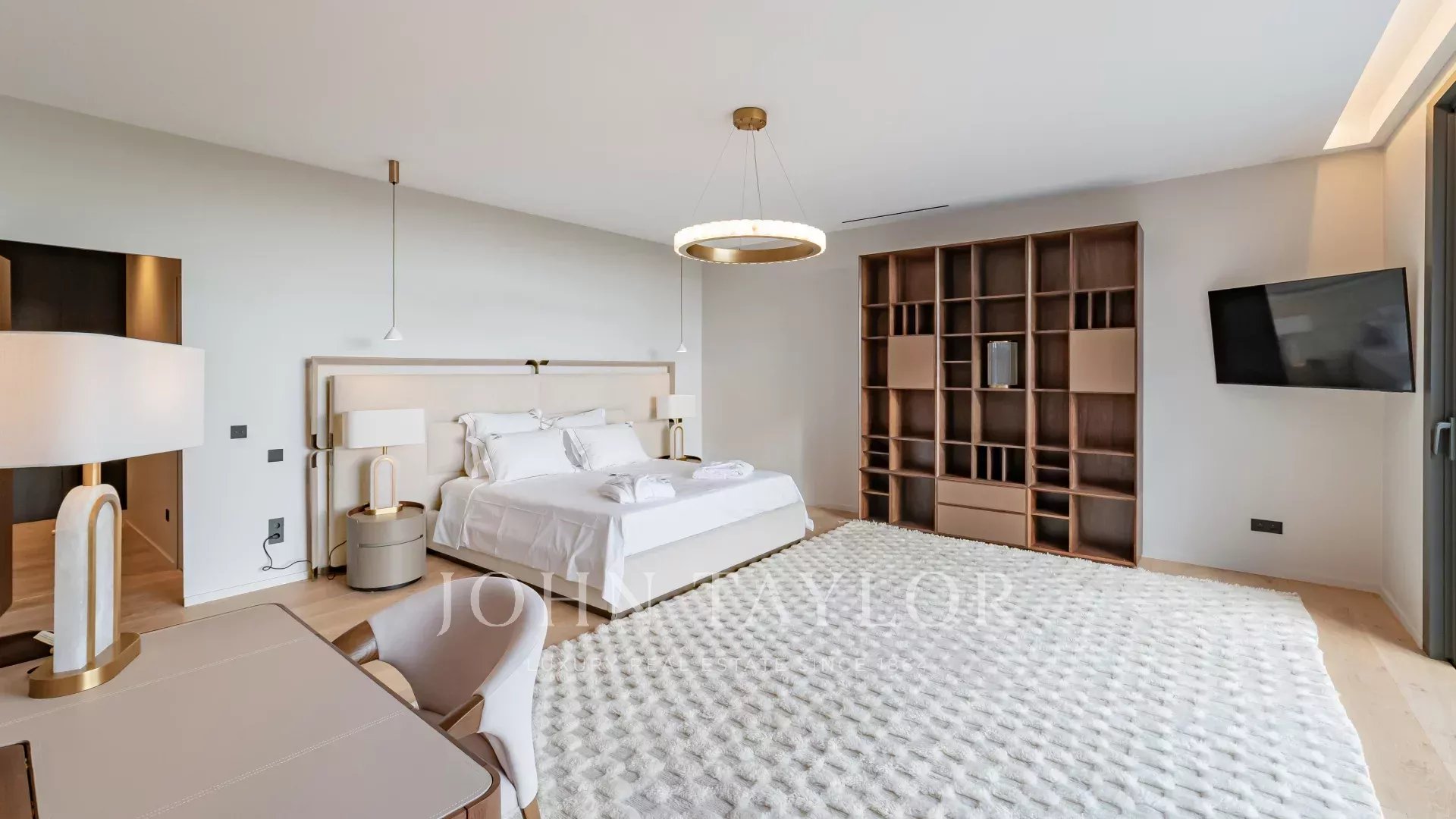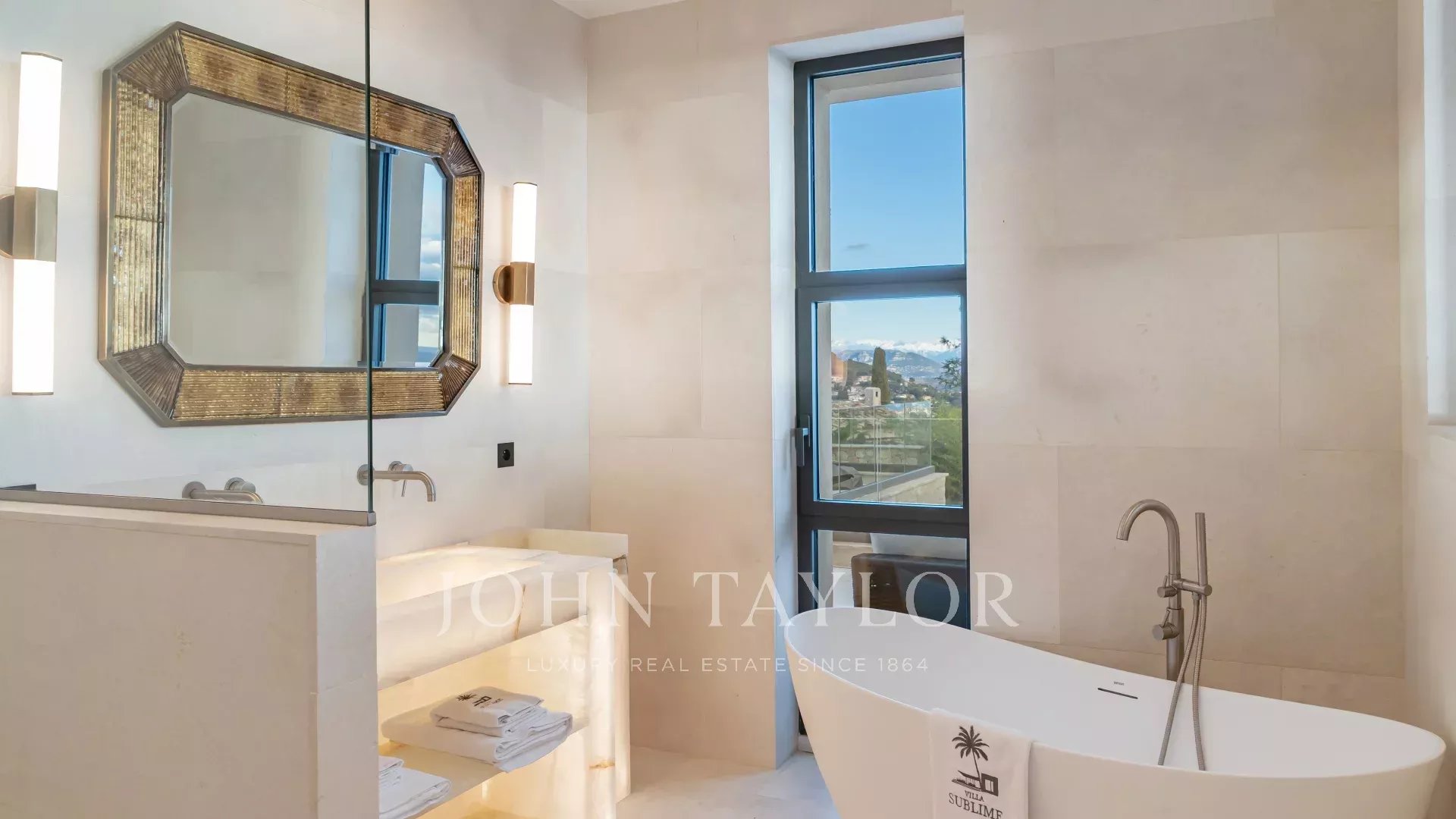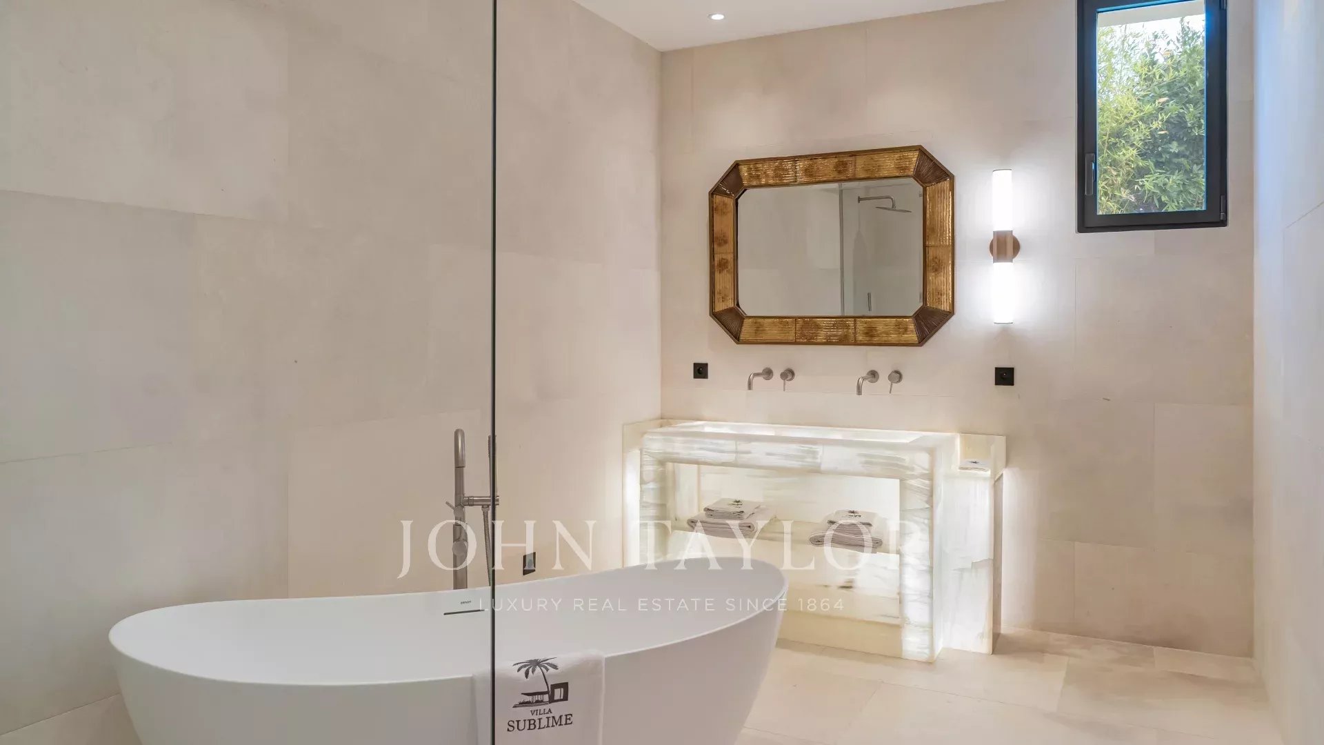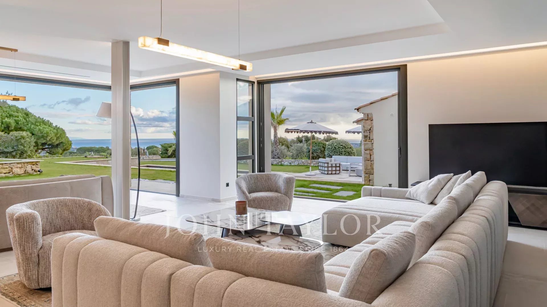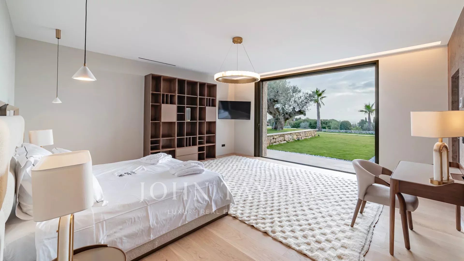 Tato moderní vila o rozloze přibližně 400 m² se nachází v uzavřeném areálu v prestižní, mimořádně klidné rezidenční čtvrti Super Cannes. Stojí na dominantním místě na pozemku o rozloze 2 090 m² a nabízí nádherný výhled od Cap d'Antibes přes Alpy až k italským horám.