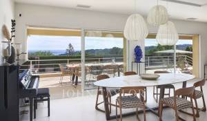 Tato pěkná, moderní, jednopatrová vila na výšinách Vallauris se nachází jen pár kroků od hlavních silnic a centra Cannes a nabízí panoramatický výhled na moře, Cap d'Antibes a hory.