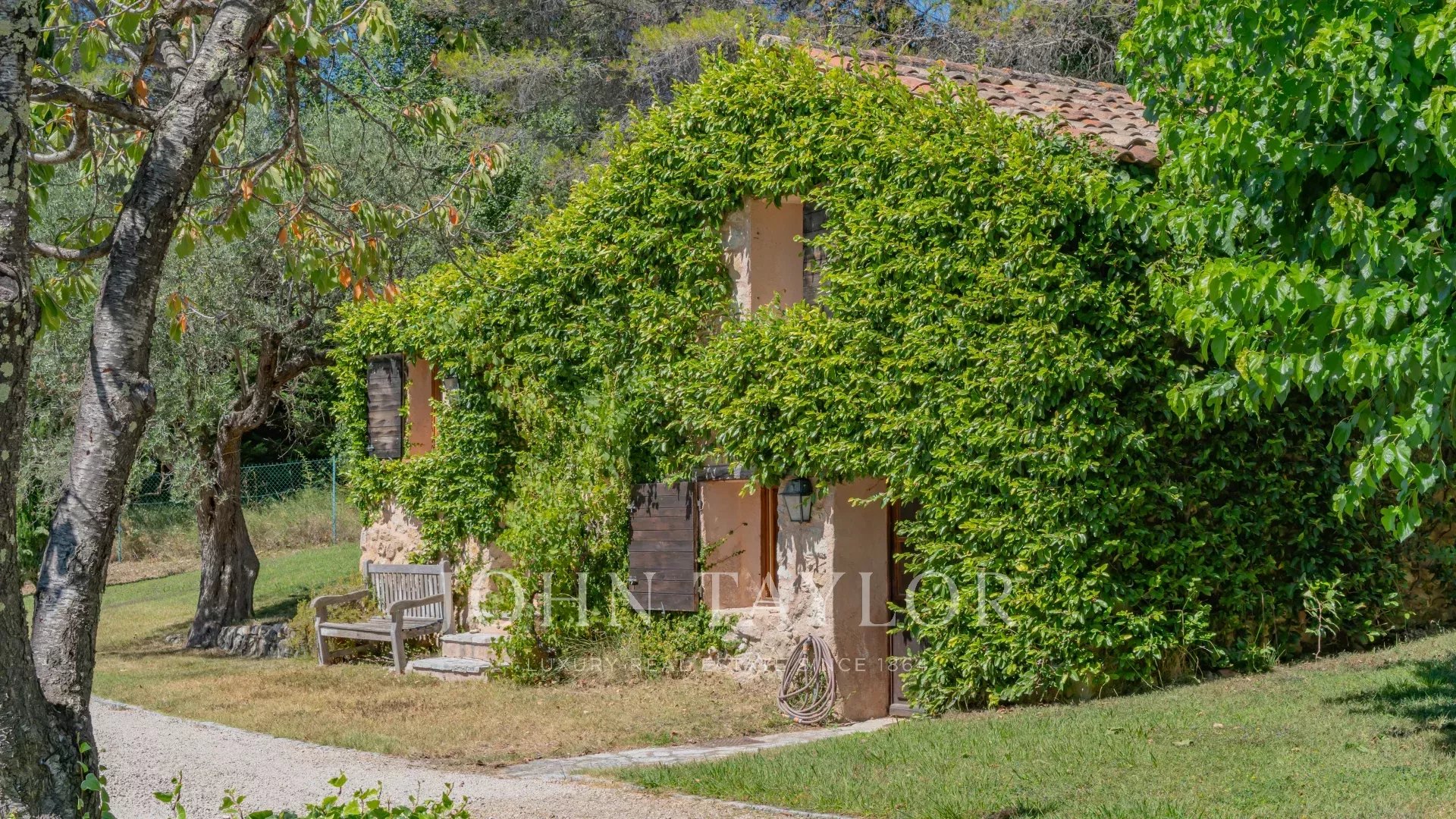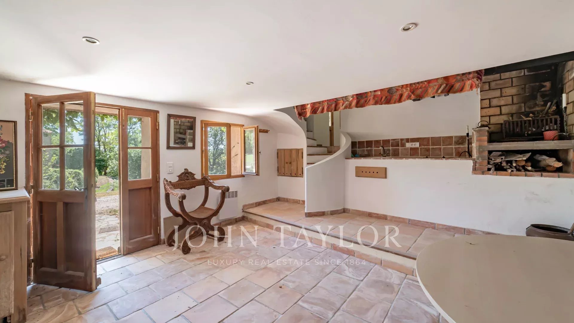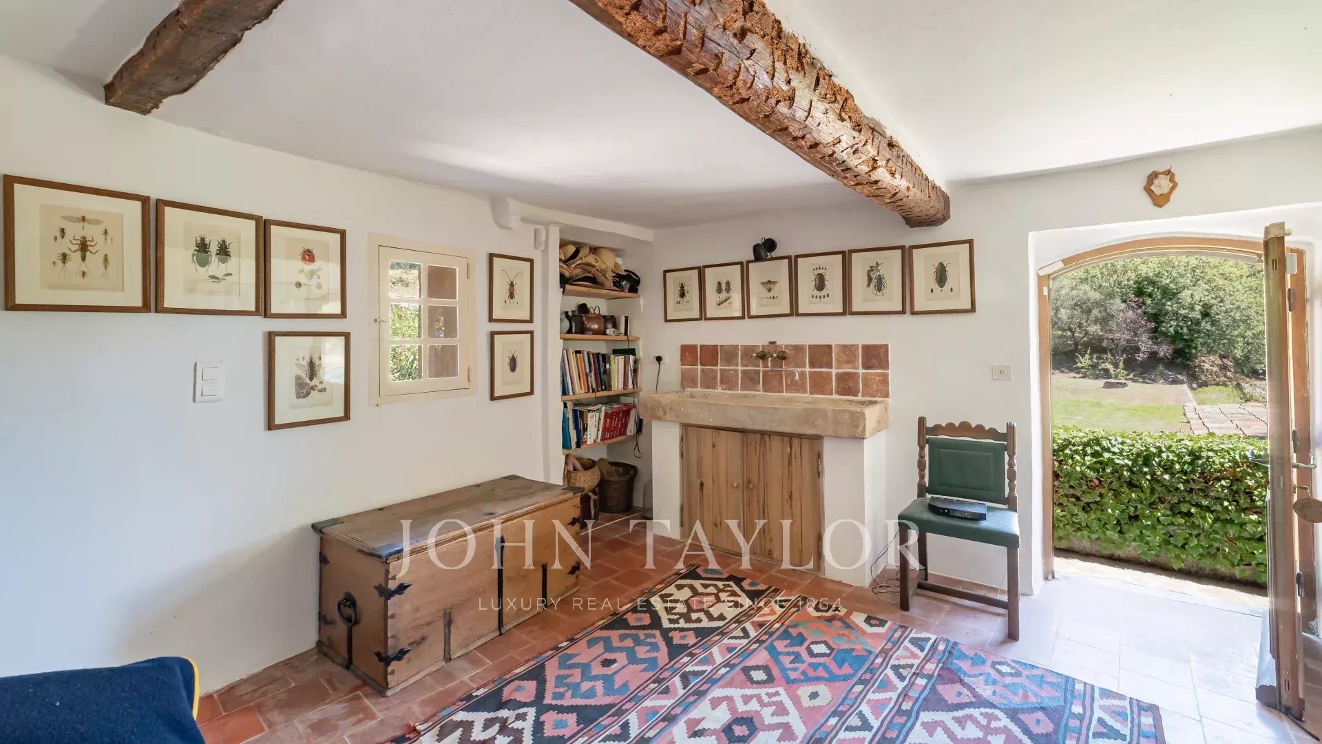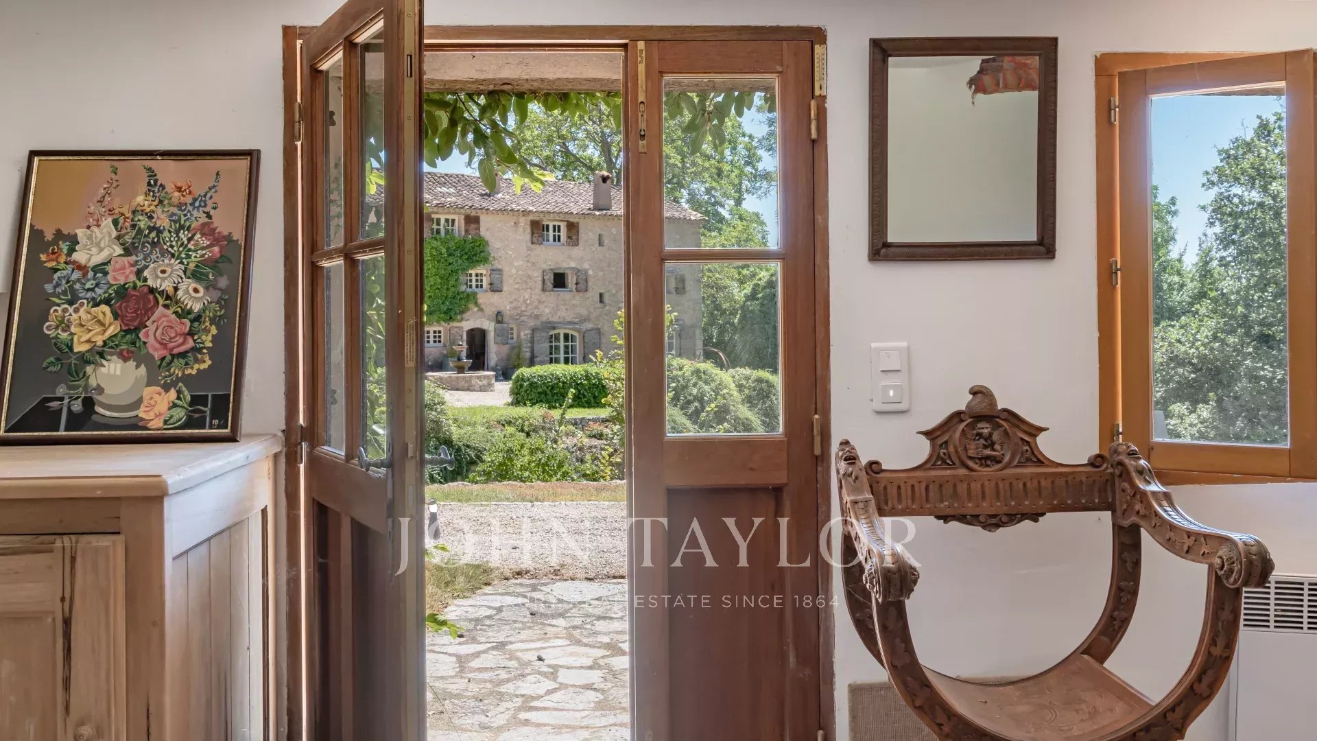 Tato výjimečná nemovitost se nachází uprostřed více než 4 hektarů nedotčené přírody a spojuje kouzlo minulosti s moderním komfortem. Kamenná bašta ze 17. století, orientovaná na jih, nabízí nerušený výhled na kopce a rozprostírá světlé, prostorné interiéry: rozlehlé přijímací místnosti s krbem, vybavenou kuchyní, vinným sklípkem, prádelnou a pěti elegantními apartmány.