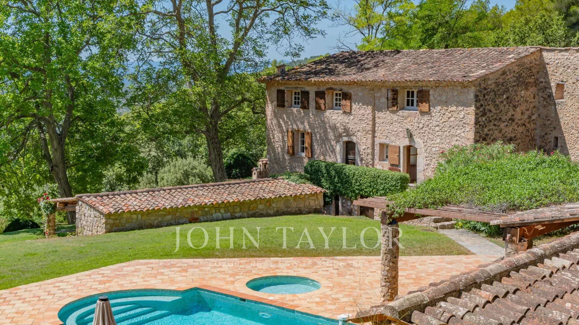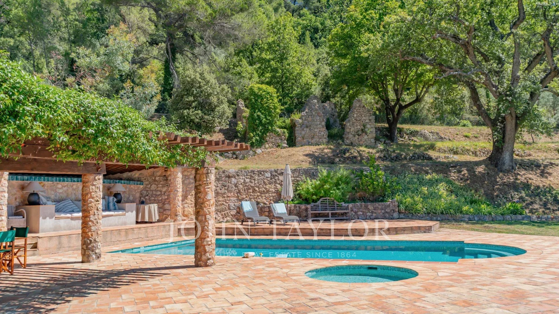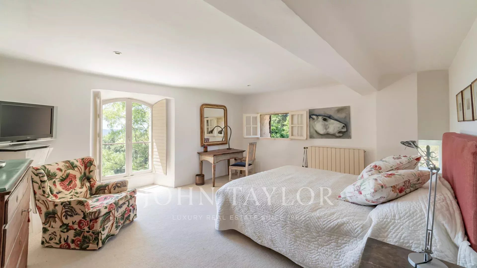 Tato výjimečná nemovitost se nachází uprostřed více než 4 hektarů nedotčené přírody a spojuje kouzlo minulosti s moderním komfortem. Kamenná bašta ze 17. století, orientovaná na jih, nabízí nerušený výhled na kopce a rozprostírá světlé, prostorné interiéry: rozlehlé přijímací místnosti s krbem, vybavenou kuchyní, vinným sklípkem, prádelnou a pěti elegantními apartmány.