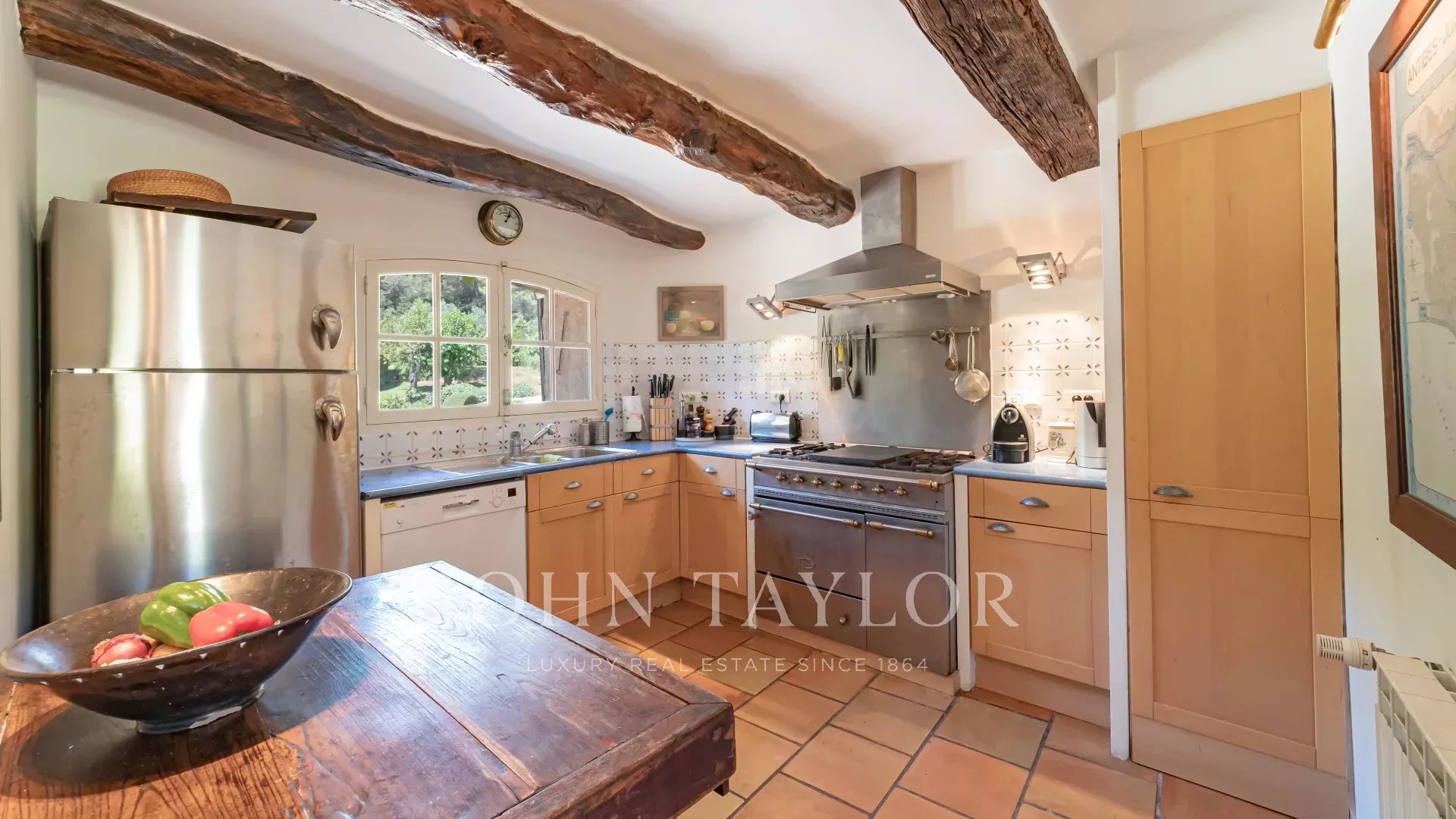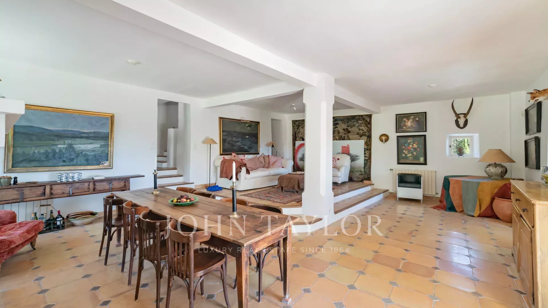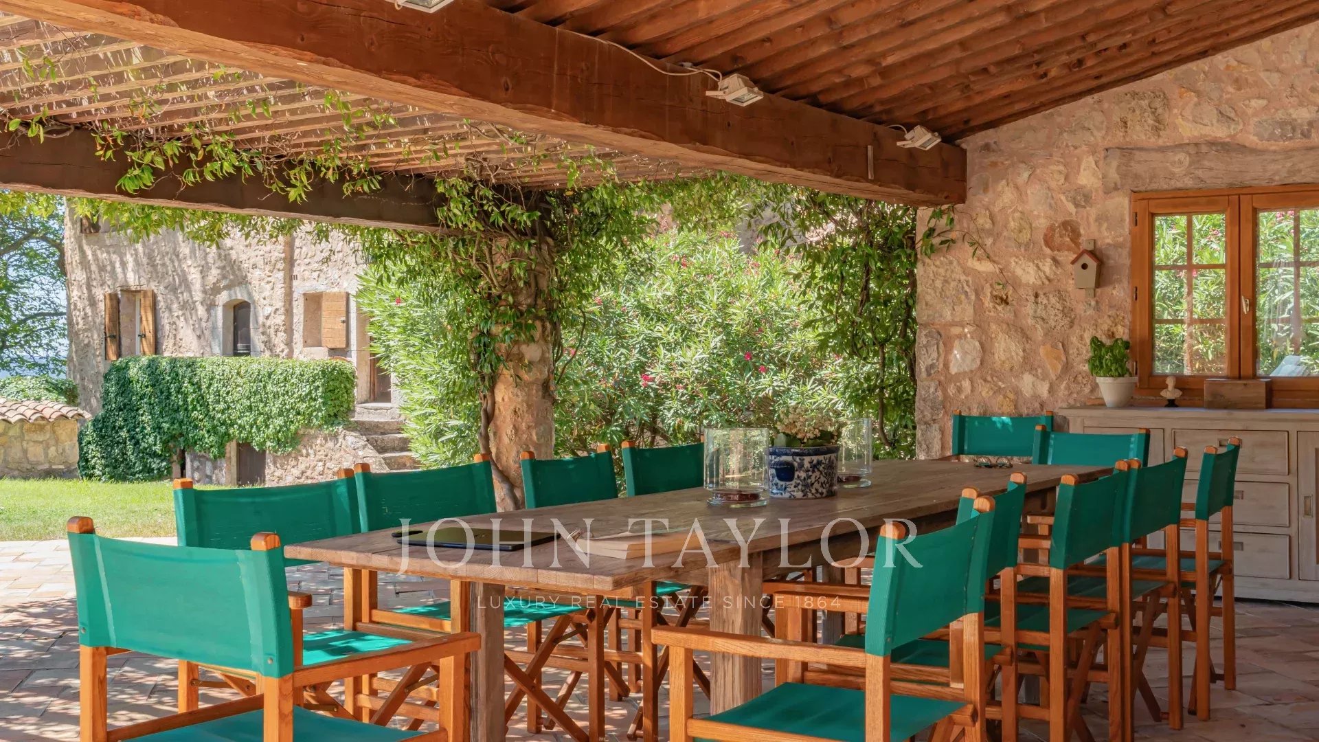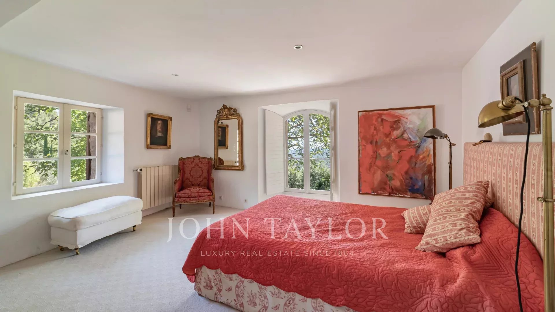 Tato výjimečná nemovitost se nachází uprostřed více než 4 hektarů nedotčené přírody a spojuje kouzlo minulosti s moderním komfortem. Kamenná bašta ze 17. století, orientovaná na jih, nabízí nerušený výhled na kopce a rozprostírá světlé, prostorné interiéry: rozlehlé přijímací místnosti s krbem, vybavenou kuchyní, vinným sklípkem, prádelnou a pěti elegantními apartmány.