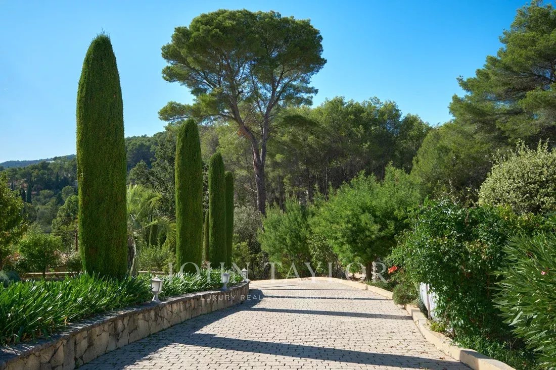 Elegantní příjezdová cesta vede k této velmi okouzlující nemovitosti o rozloze 2 864 m² s nádherným výhledem na malebnou vesničku Cabris a okolní kopce.
