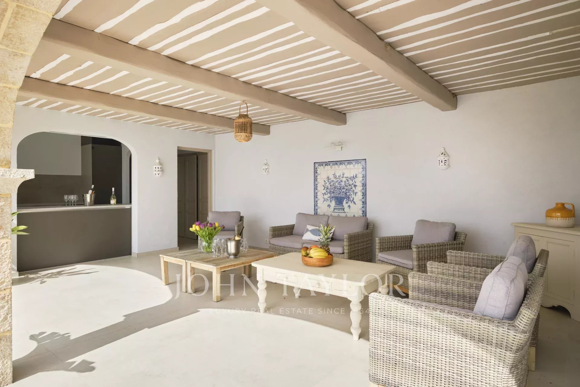 Vynikající vstupní hala s dvojitou výškou stropu vede do rozlehlého obývacího pokoje s jídelnou, elegantním krbem a velkými okny s výhledem na obrovskou terasu. Okouzlující provensálská kuchyně s velkým krbem poskytuje příjemný prostor pro rodinné stolování. Na stejném podlaží najdete také pracovnu, dvě ložnice, včetně hlavní ložnice s atraktivní koupelnou, šatnou a vlastní terasou, a také prádelnu, sklad a šatnu.