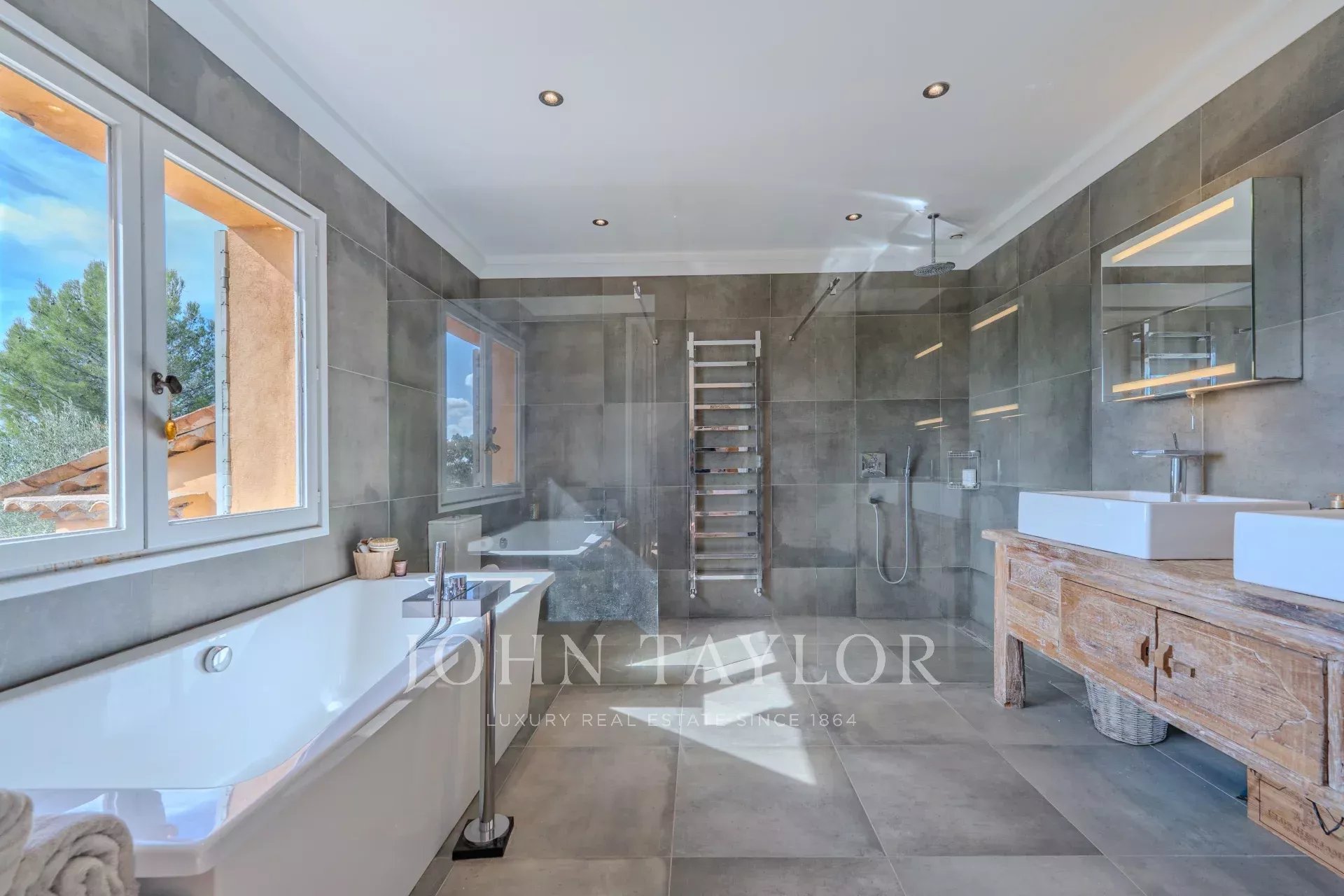 Komfort tohoto vynikajícího sídla, které má ideální polohu v blízkosti vyhlášených golfových hřišť a vzdělávacích zařízení a pouhých 40 minut od Cannes, doplňuje přístřešek pro tři vozidla.
