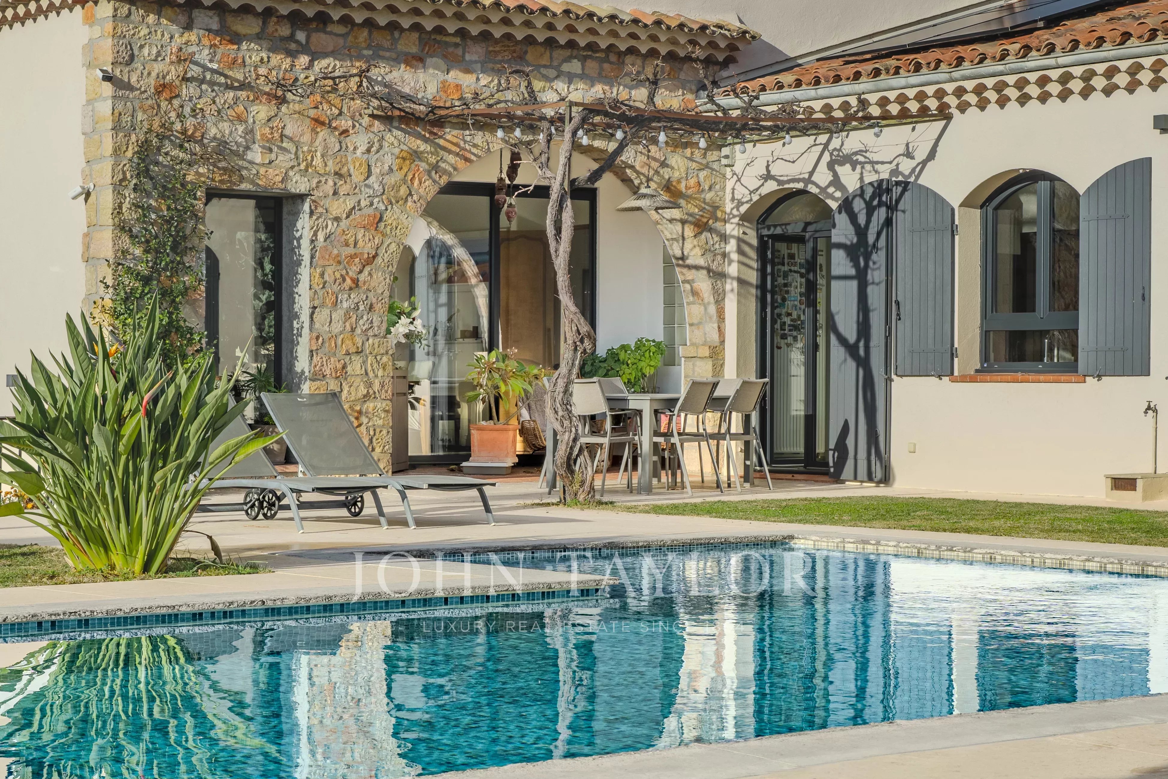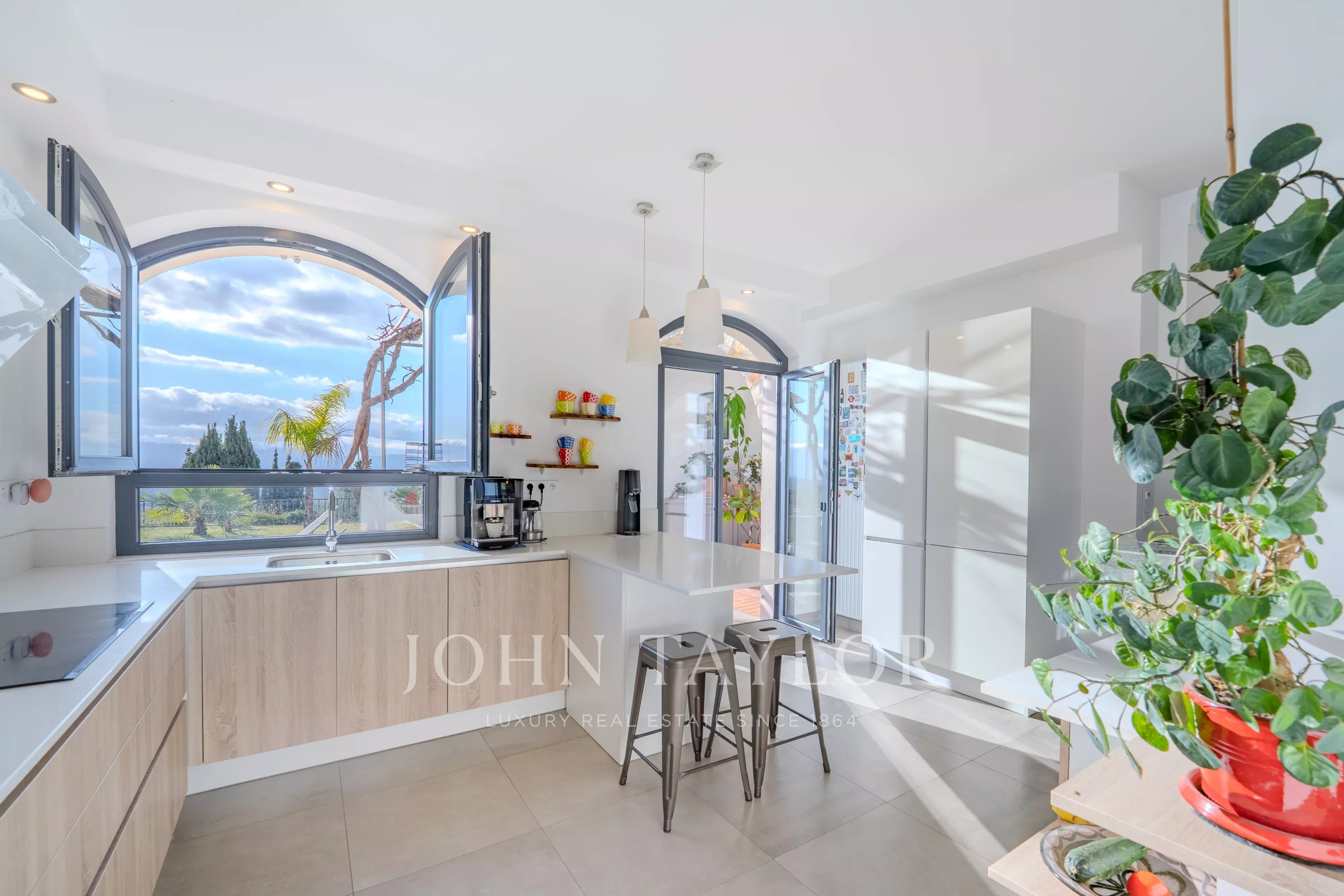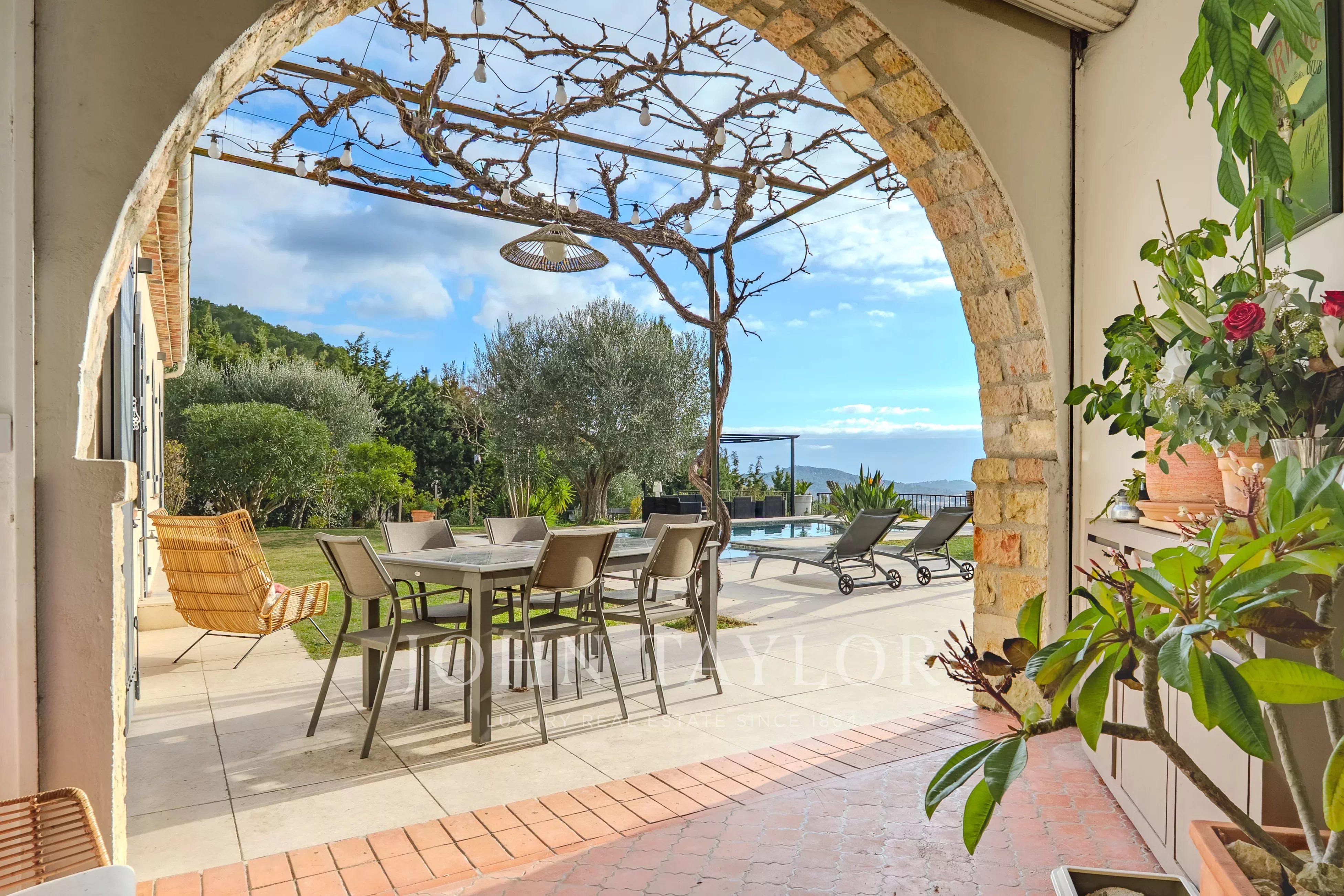 Tato zrekonstruovaná nemovitost o rozloze 217 m2 s bazénem a vířivkou vás okouzlí nádherným panoramatickým výhledem od Canneského zálivu až po hory Grasse, a to vše na upraveném pozemku o rozloze přibližně 3500 m2.