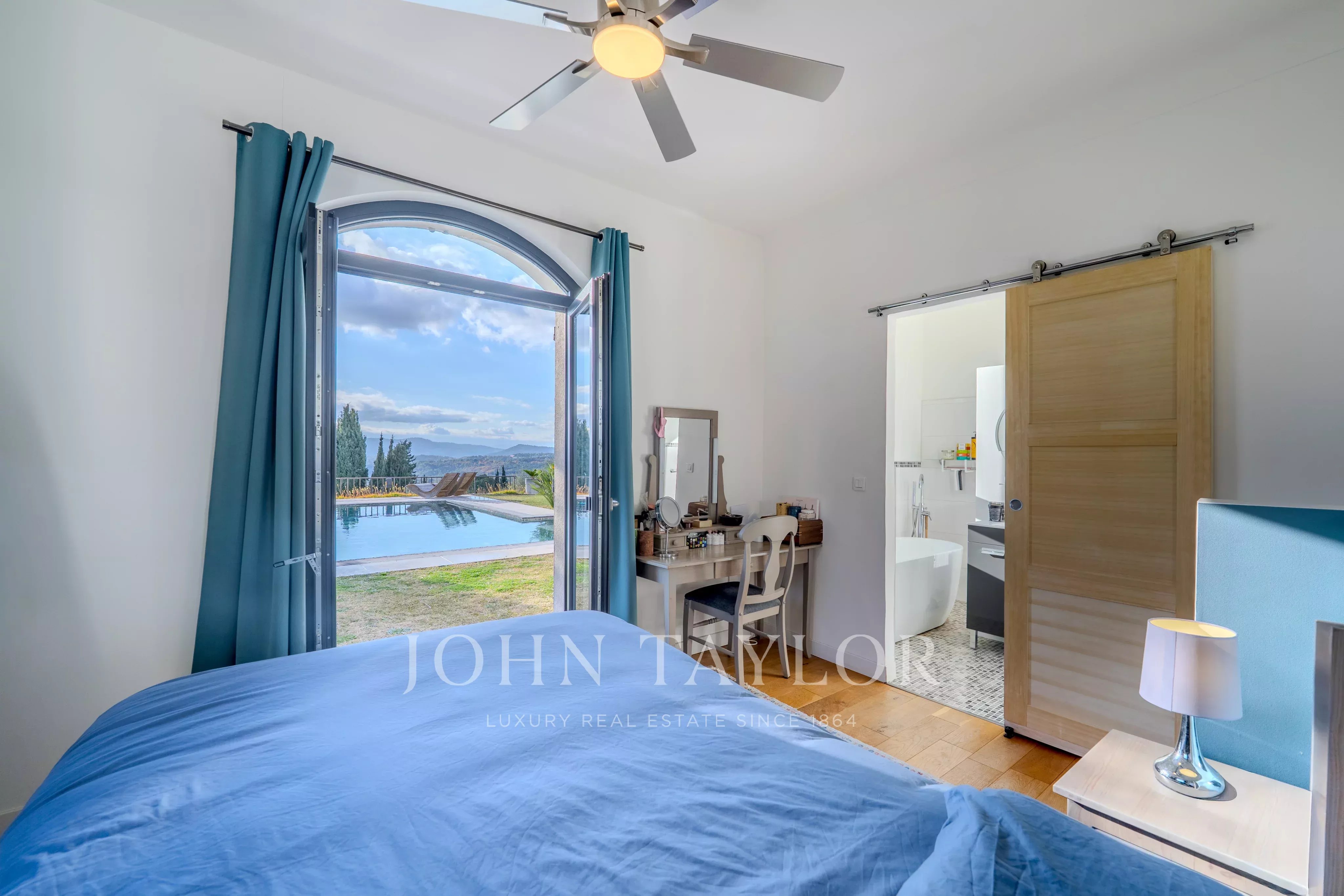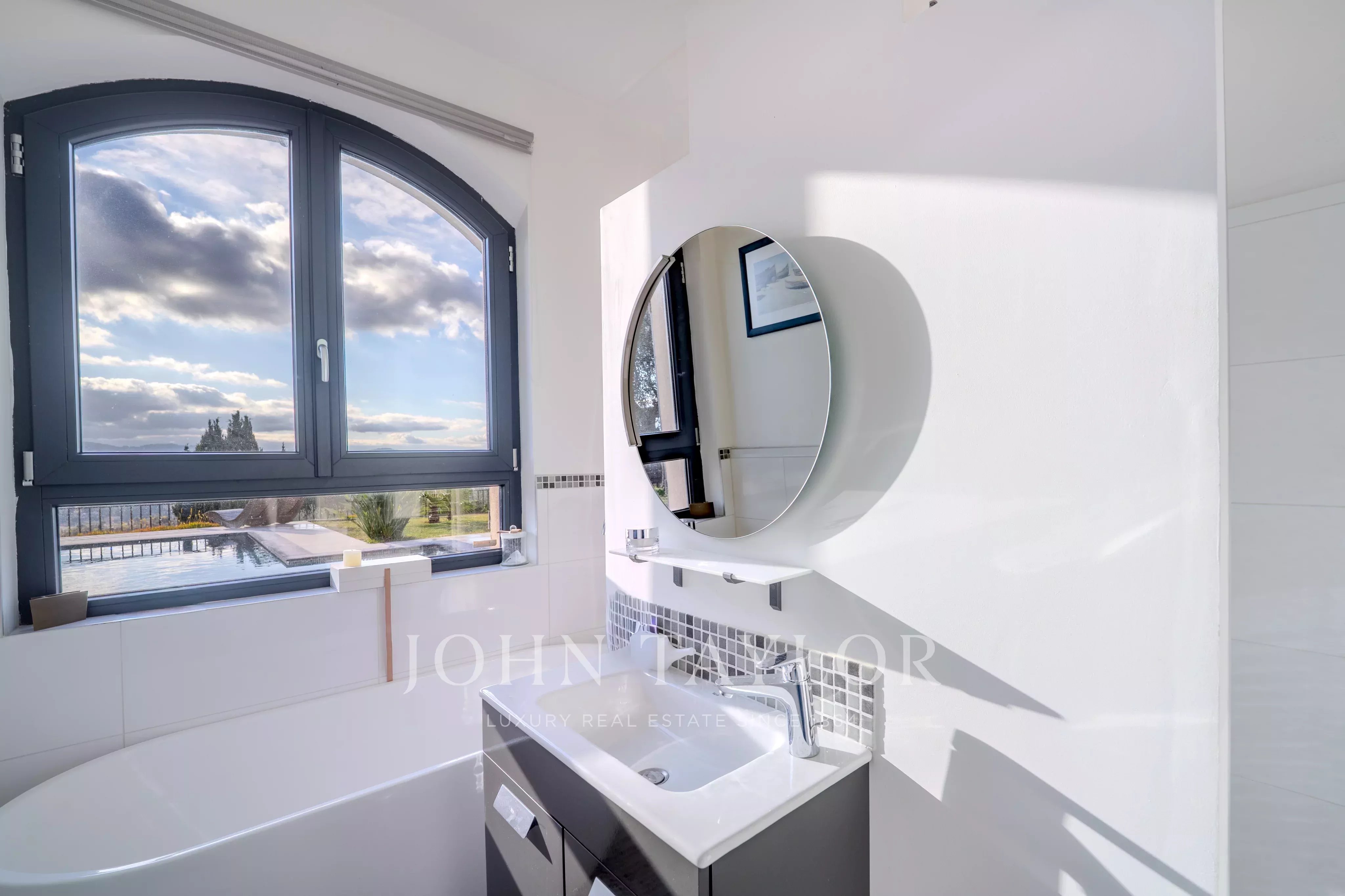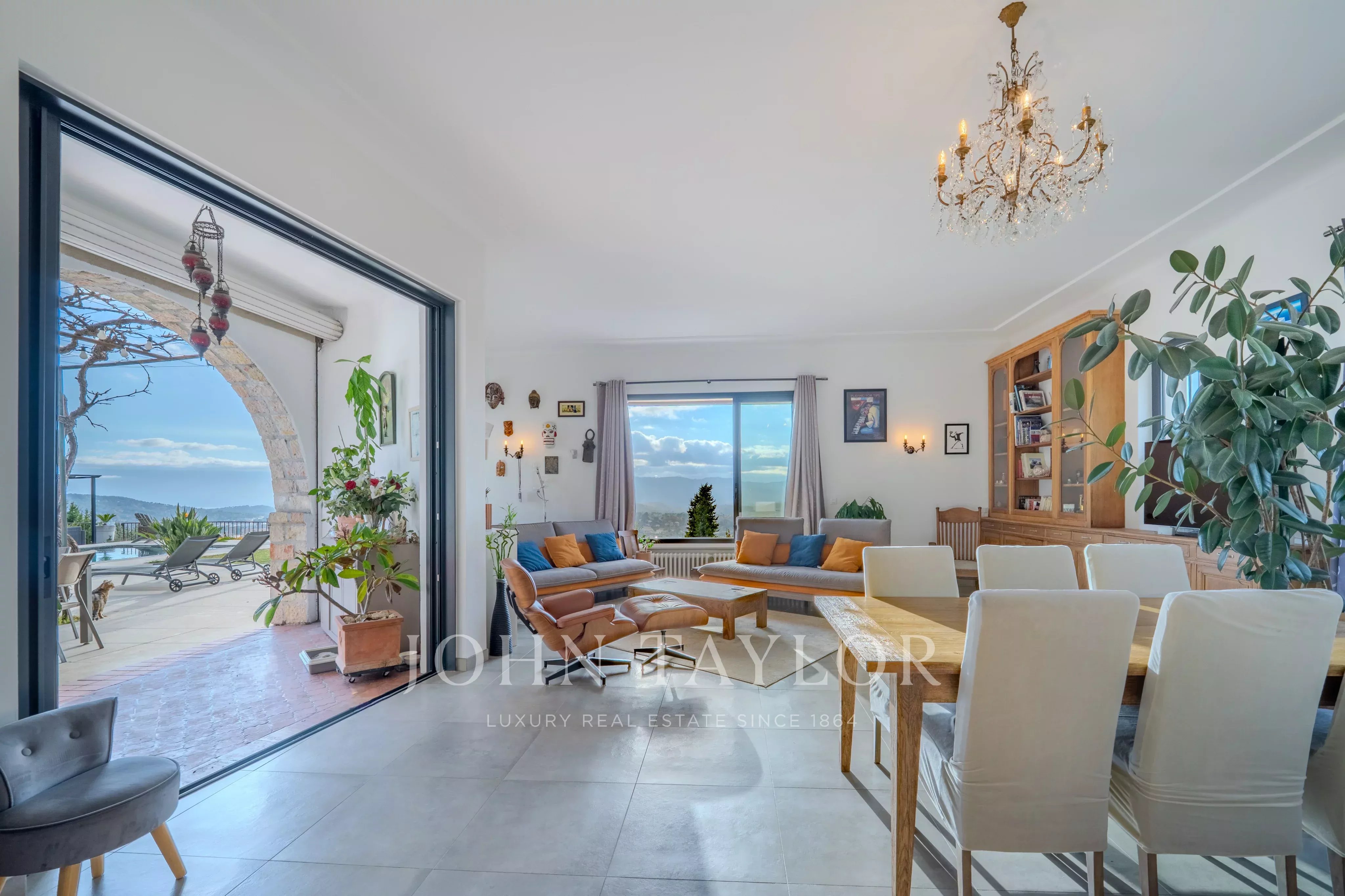 Tato zrekonstruovaná nemovitost o rozloze 217 m2 s bazénem a vířivkou vás okouzlí nádherným panoramatickým výhledem od Canneského zálivu až po hory Grasse, a to vše na upraveném pozemku o rozloze přibližně 3500 m2.