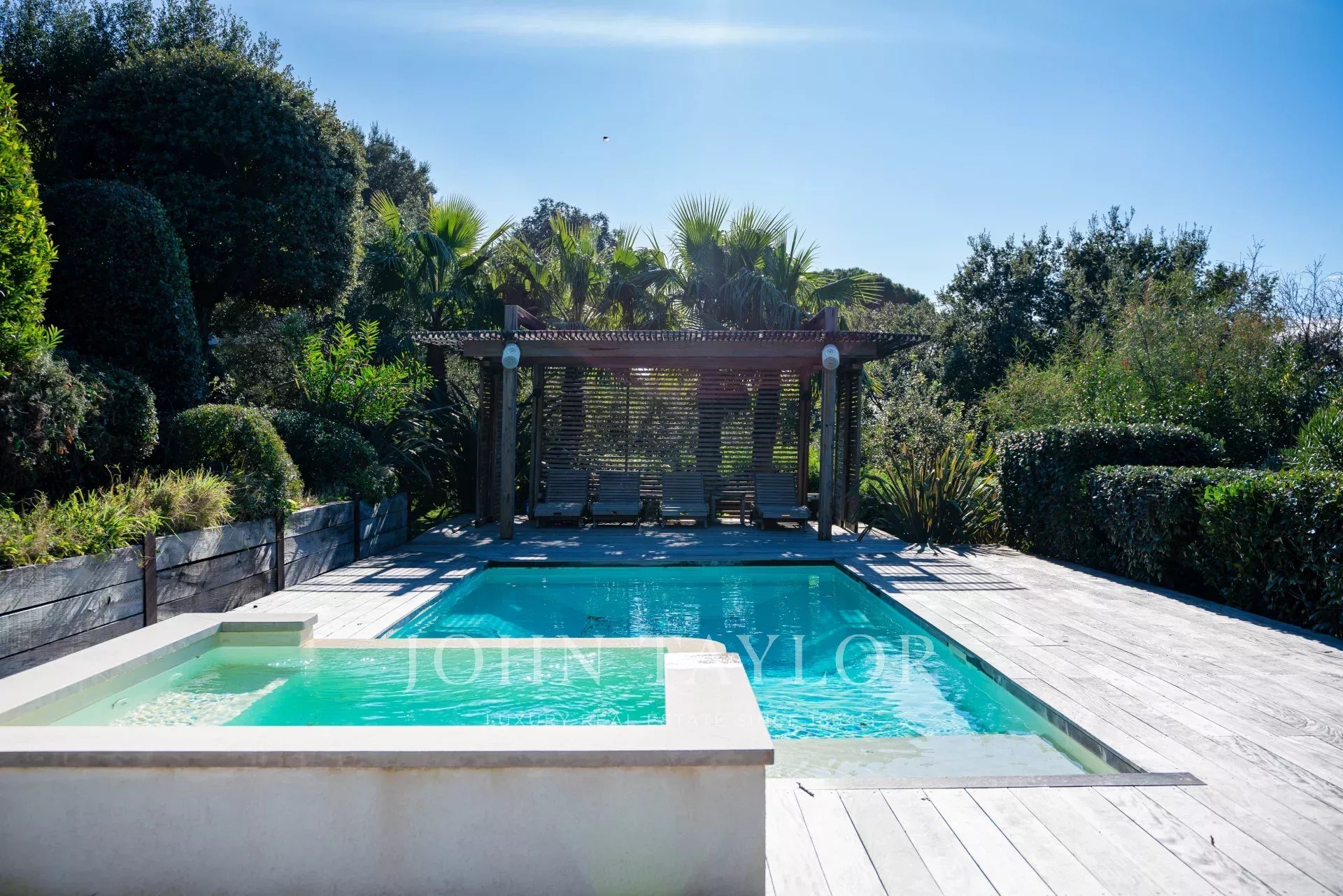 Tato vynikající vila navržená architektem se nachází v exkluzivním sídle, jen kousek od centra La Croix-Valmer, a nabízí jedinečné bydlení.