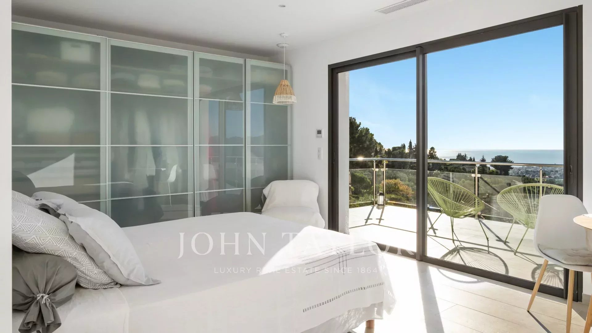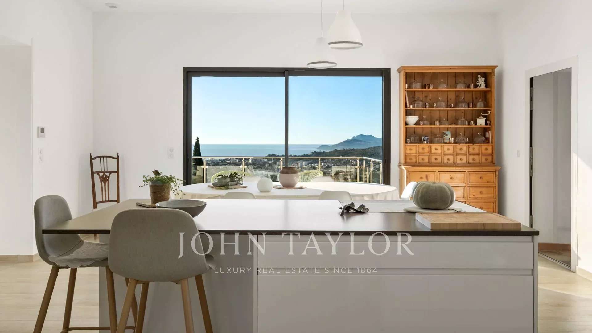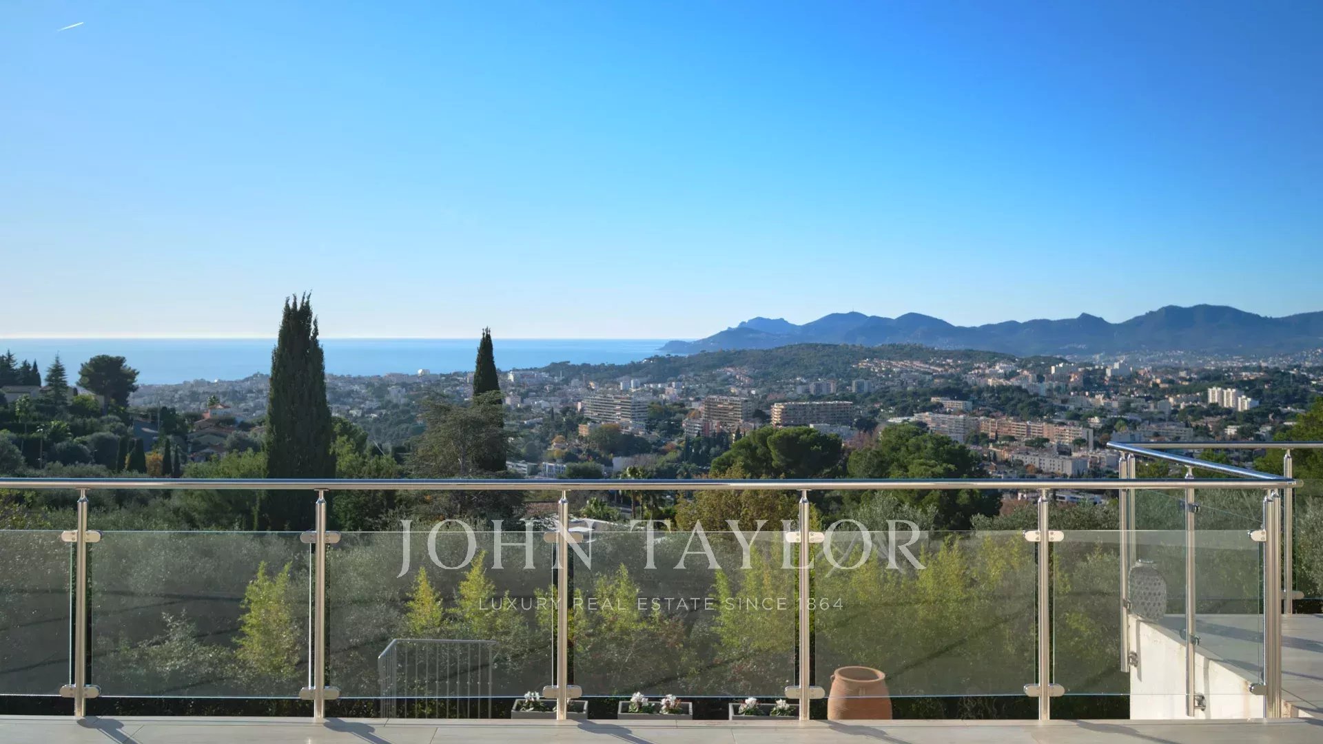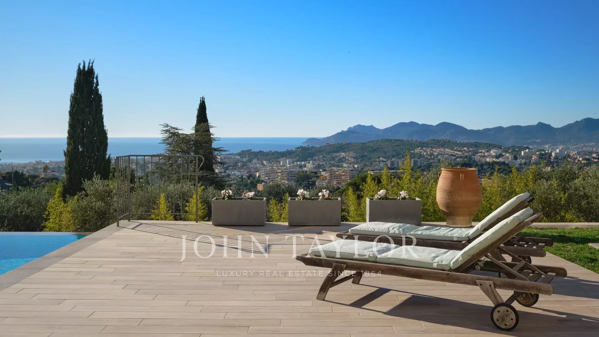 Moderní vila v rezidenční čtvrti s panoramatickým výhledem na moře a esterel se nachází na upraveném pozemku o rozloze 2 600 m2 s bazénem.