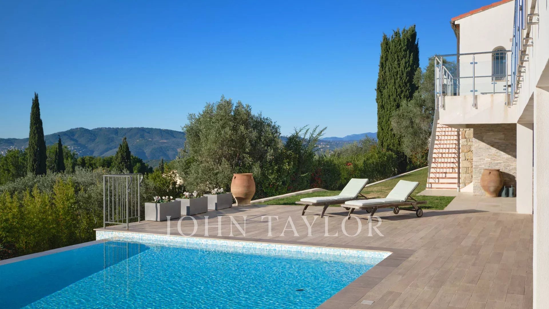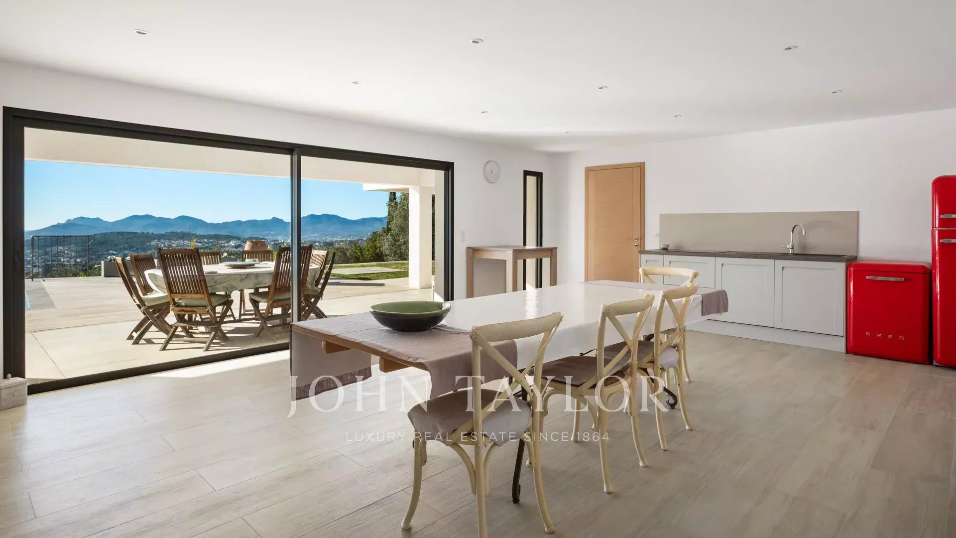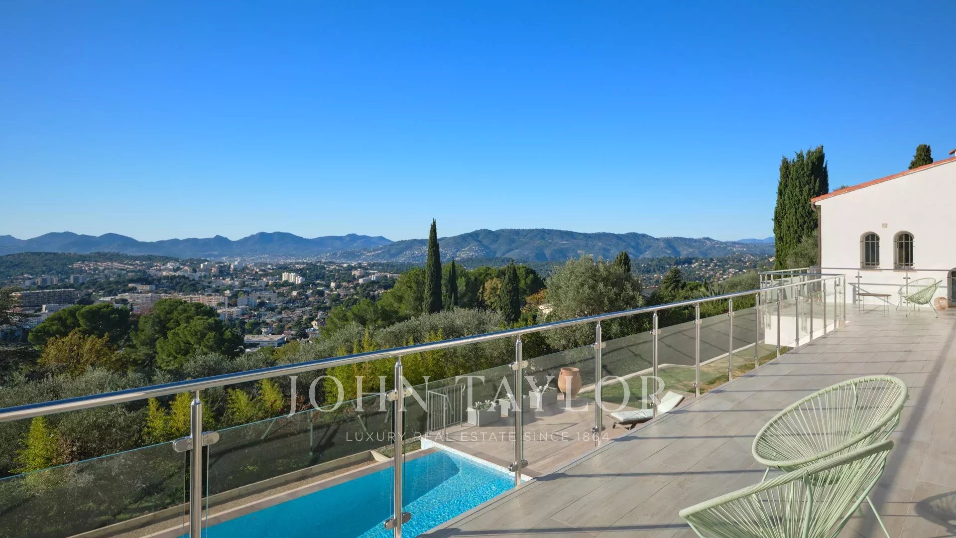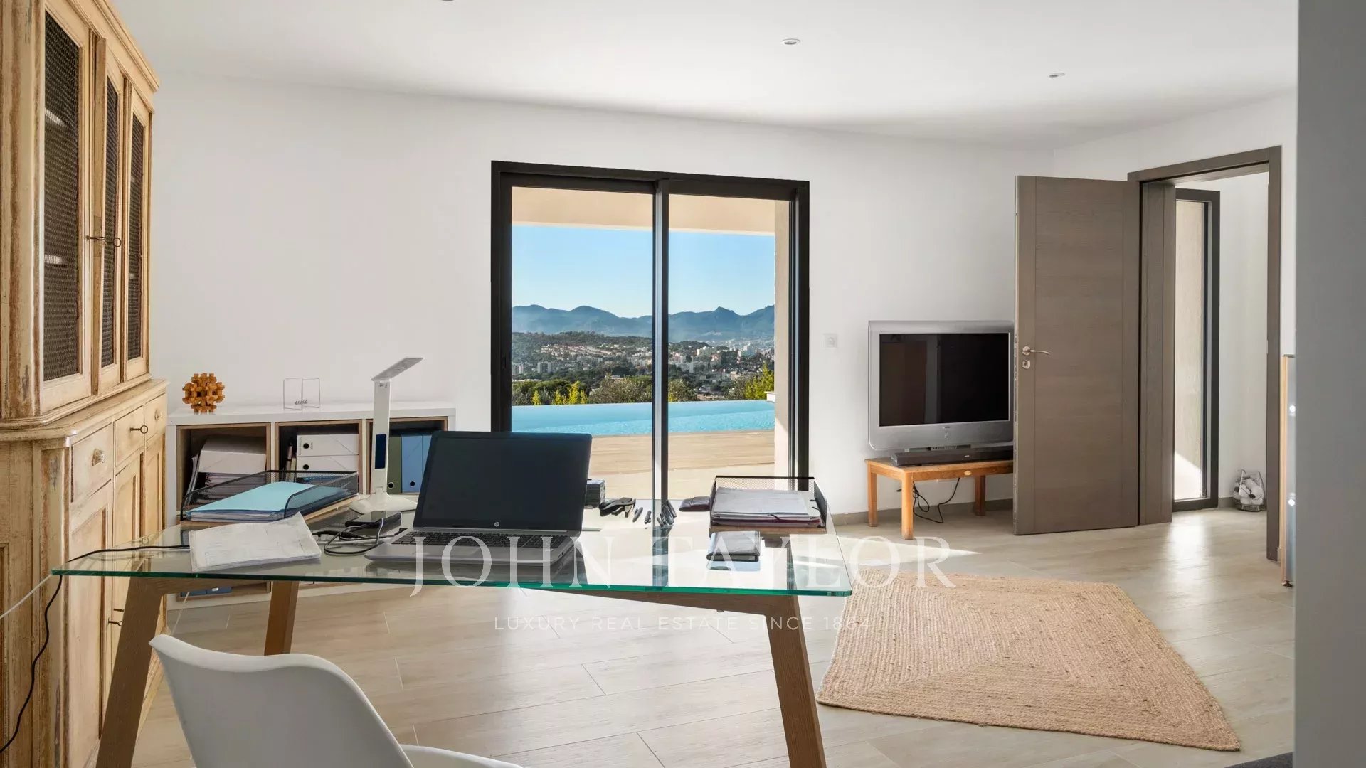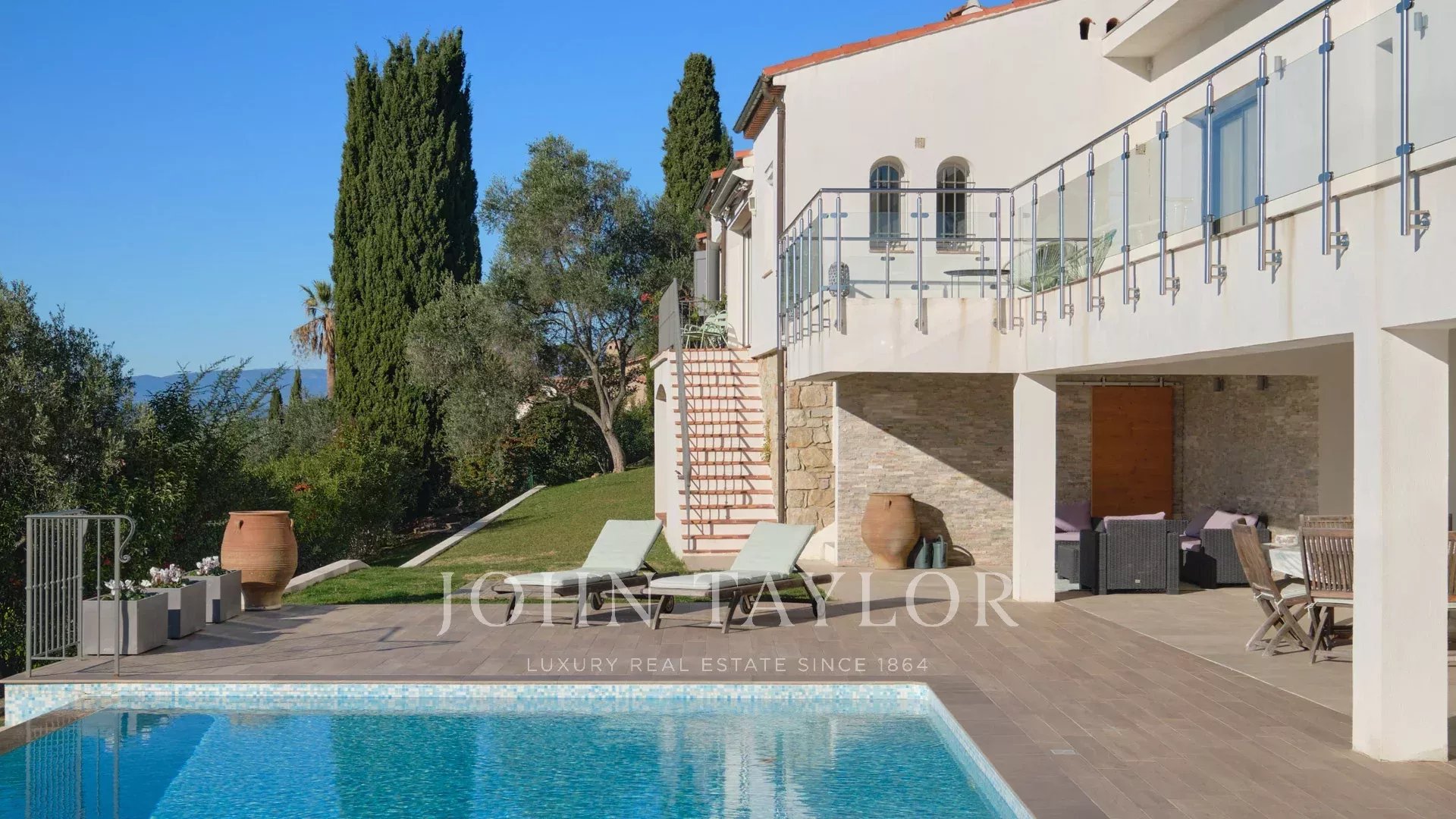 Moderní vila v rezidenční čtvrti s panoramatickým výhledem na moře a esterel se nachází na upraveném pozemku o rozloze 2 600 m2 s bazénem.