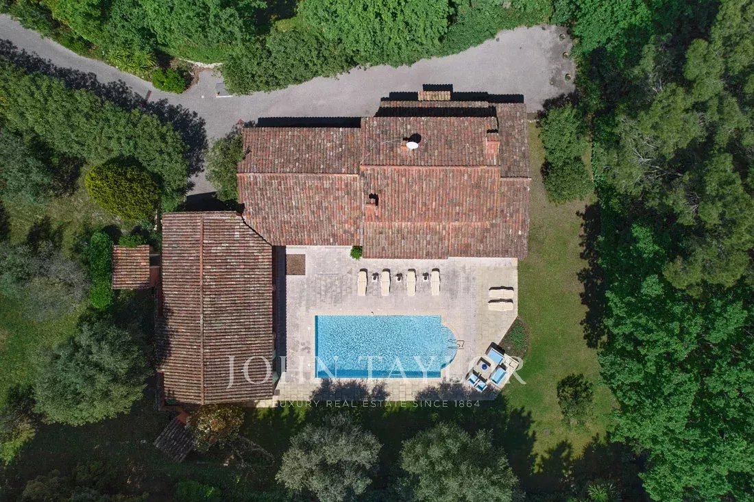 Spoluvýhradní postavení: Na svahu Mougins, jen pár kroků od staré vesnice, se nachází tato krásná provensálská nemovitost o rozloze 234 m², která má k dispozici rovinatý pozemek o rozloze 3 218 m² s olivovým hájem.