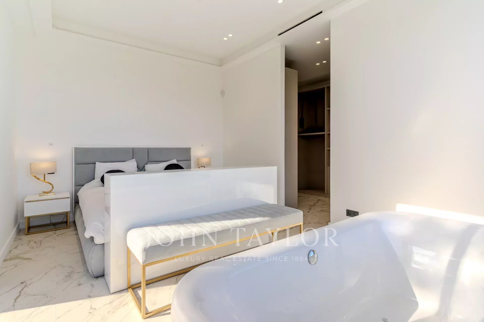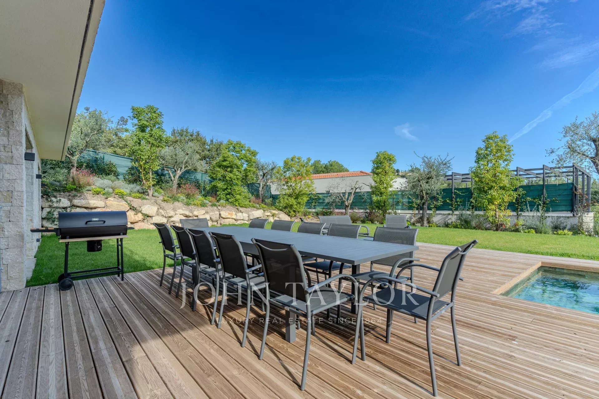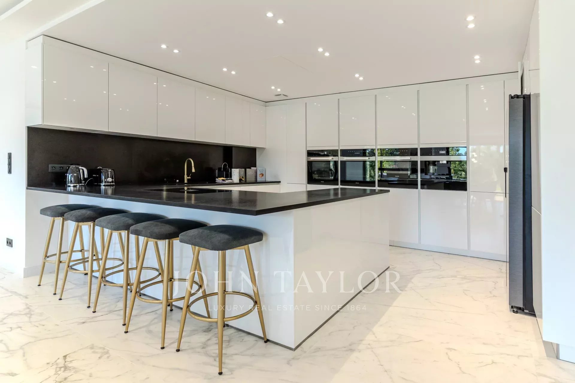 Tato výjimečná moderní vila se nachází v srdci vyhledávané čtvrti, v dosahu veškeré občanské vybavenosti, a nabízí obytnou plochu přibližně 420 m² na upraveném pozemku o rozloze 1 500 m² s bazénem.