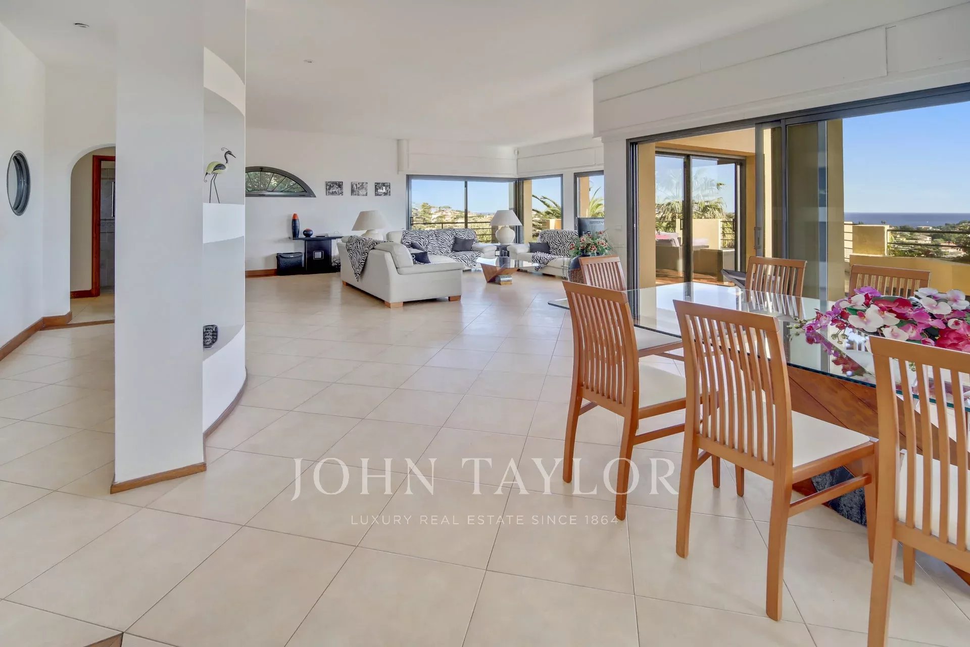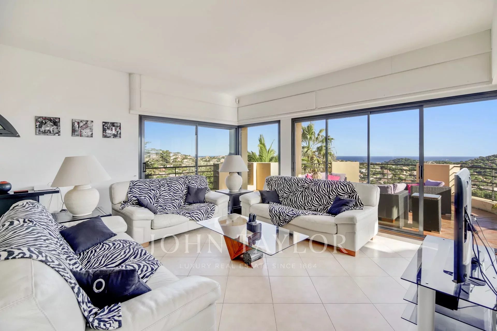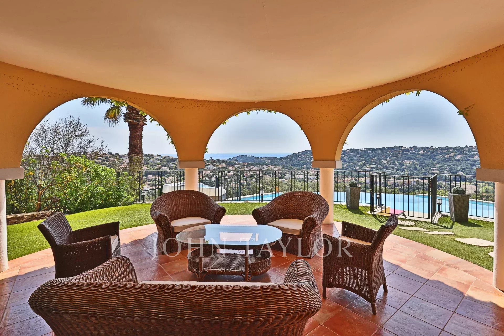 Tato vila o rozloze přibližně 250 m² se nachází na dominantním místě u golfového hřiště Sainte-Maxime s krásným výhledem na moře a skládá se z obývacího pokoje a jídelny, z nichž se vychází na velkou terasu orientovanou na jih, nedávno vybavené kuchyně a 4 ložnic, z nichž všechny mají vlastní koupelnu nebo sprchový kout, a samostatného bytu se 2 ložnicemi a 1 koupelnou.
