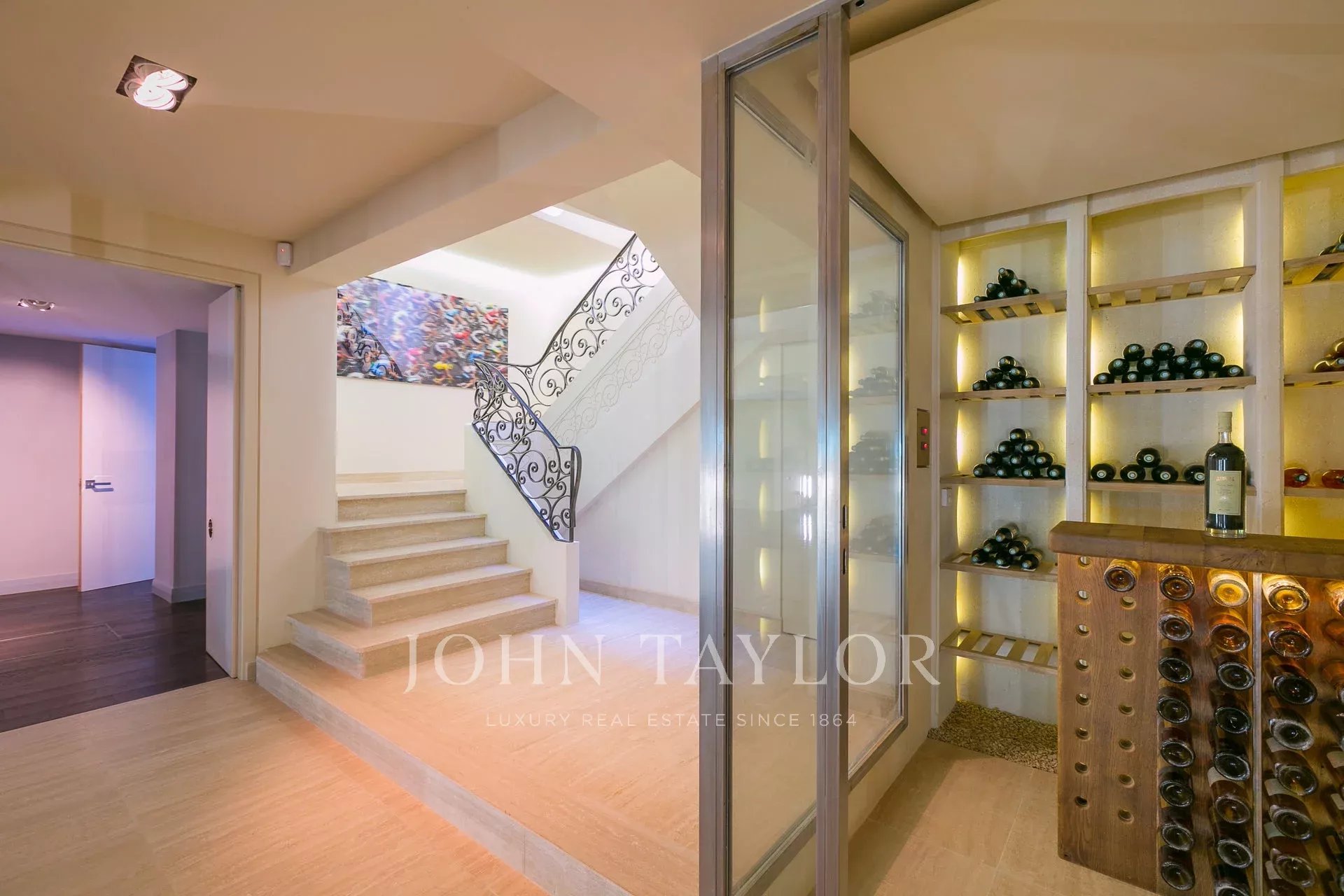 Hlavní vila, která je plně automatizovaná, nabízí plně vybavený obývací pokoj/jídelnu/kuchyň Gaggenau, 6 ložnic s vlastními koupelnami, fitness, lázně s hammamem a masážní místností, kinosál, hernu, vinný sklep.