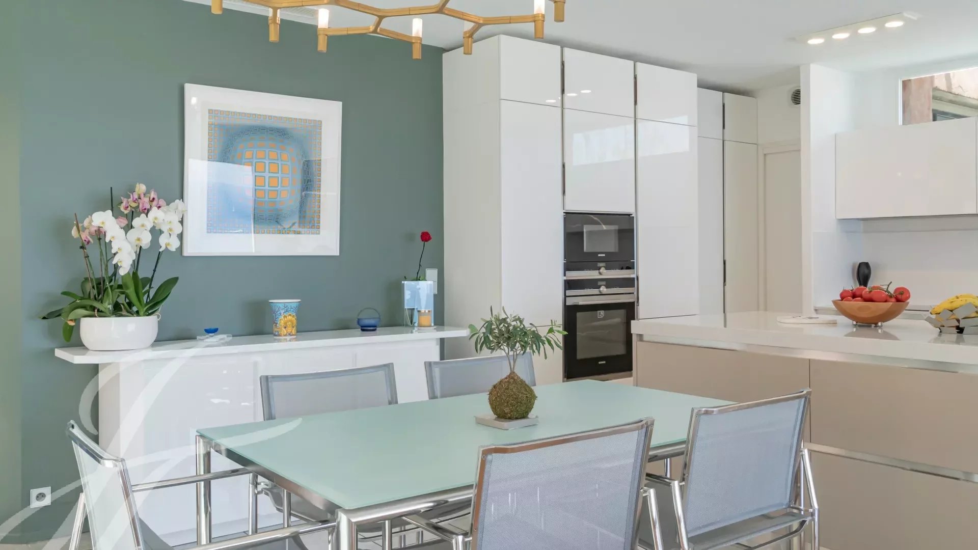 Tato vila je postavena na 4 podlažích, která jsou propojena výtahem, a byla rozvržena tak, aby vytvořila dva nezávislé byty, což nabízí velkou flexibilitu využití. Je to ideální příležitost pro vícegenerační rodiny nebo pro kvalitní investici na pronájem.