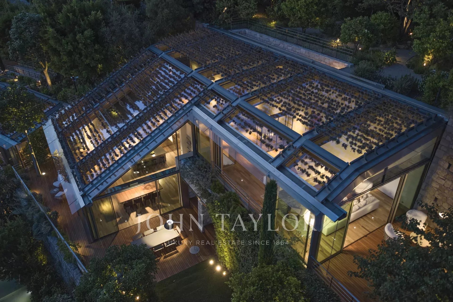 Tato nádherná novostavba o rozloze 600 m² na pozemku o rozloze přibližně 4100 m² byla navržena v dílnách slavného francouzského architekta Jeana NOUVELA.