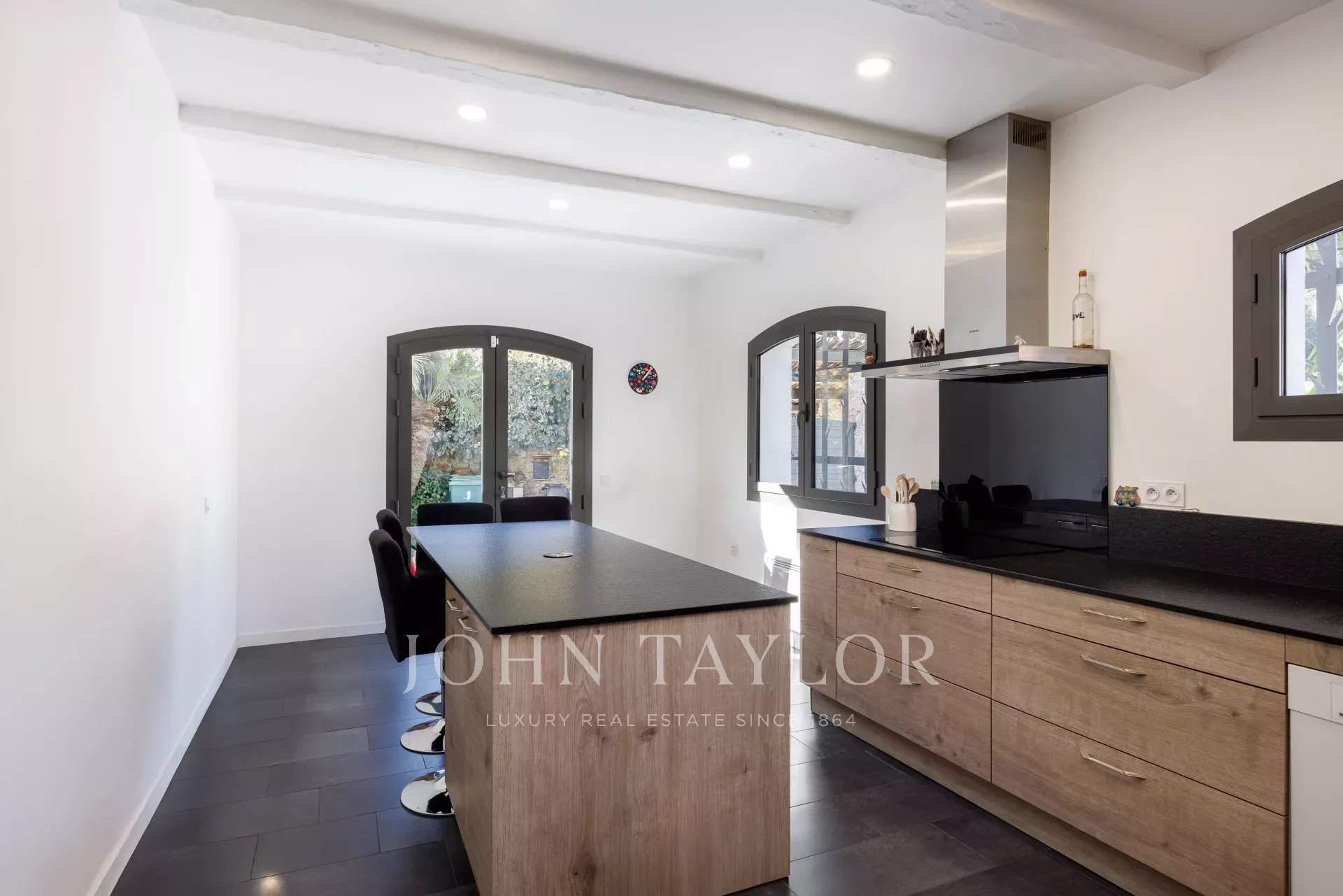 V přízemí vily se nachází vstupní hala s šatnou pro hosty, nádherný trojitý přijímací pokoj s krbem, vše propojené se zahradou, velká kuchyň/jídelna v blízkosti altánu, ideální pro venkovní stolování, dále hlavní apartmá se sprchovým koutem a šatnou a dvě ložnice s koupelnou/sprchou. Místnost ideální pro kancelář a technická místnost doplňují tuto úroveň, která se rozkládá již na více než 250 m2!