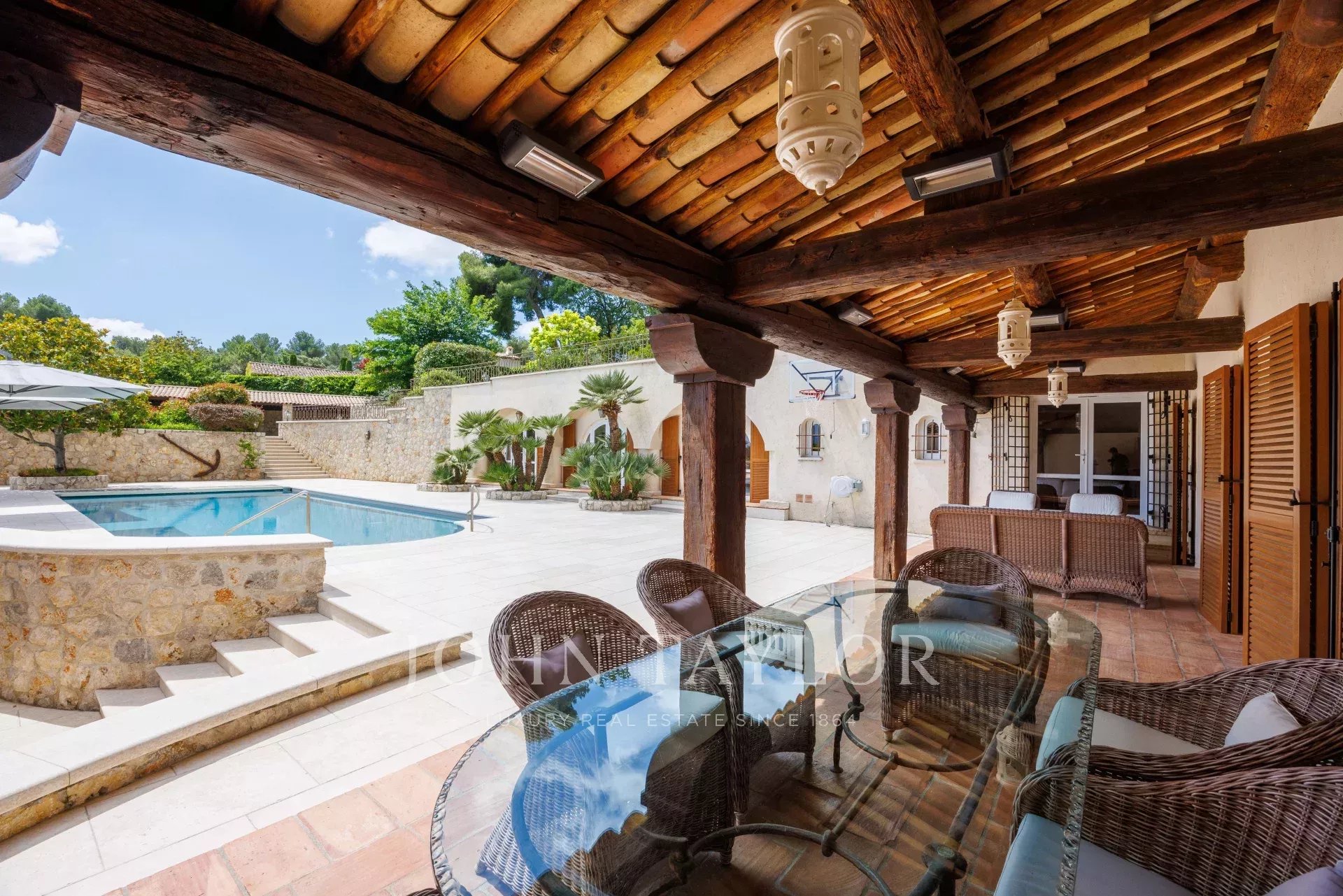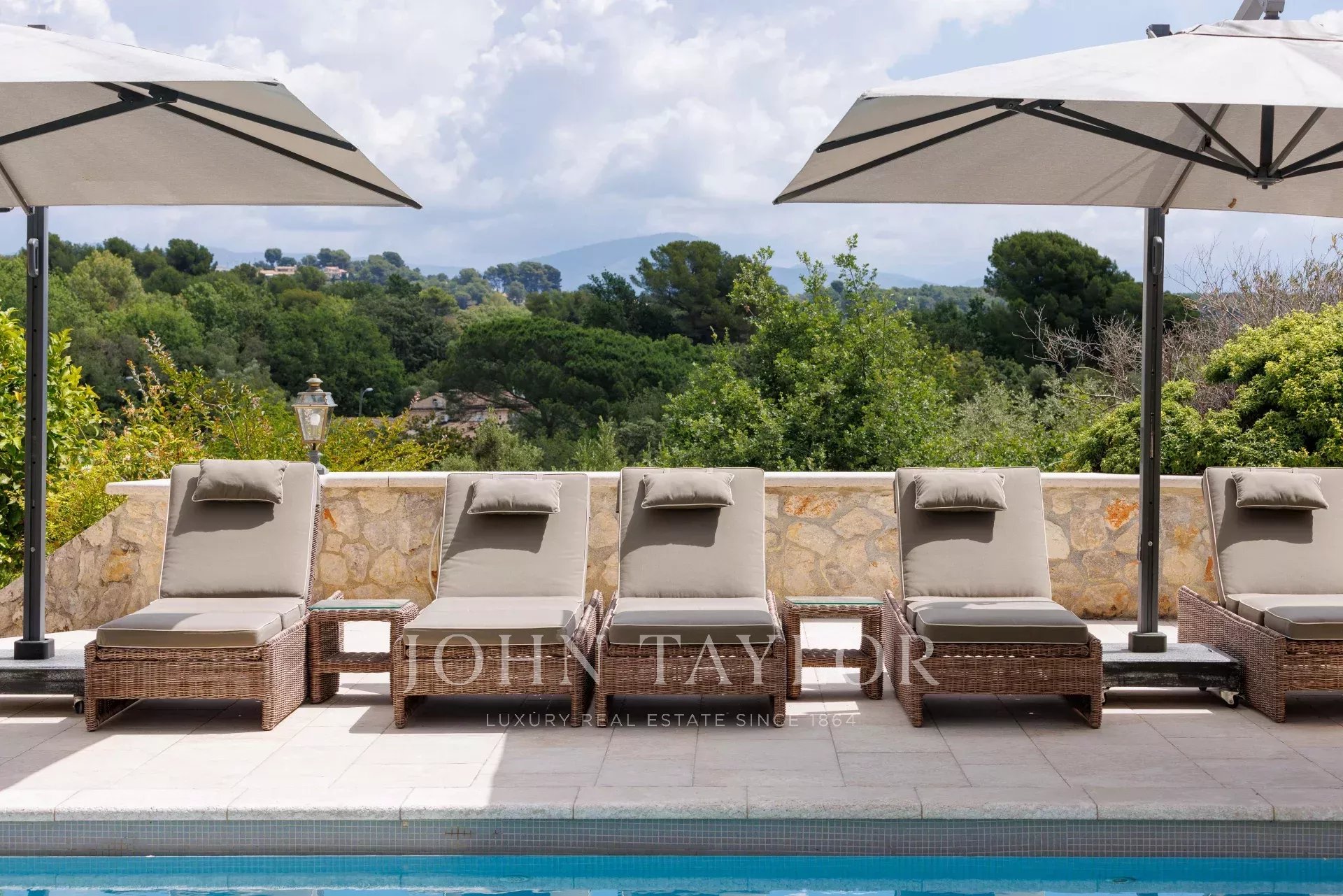 Nachází se jen několik minut od půvabné vesnice La Colle-sur-Loup, má absolutní klid a ideální jižní expozici a je zasazen do nádherného upraveného pozemku o rozloze přibližně 6 575 m². Ten zahrnuje vyhřívaný zrcadlový bazén, velké travnaté plochy, kamenné terasy a rozsáhlou zalesněnou plochu.