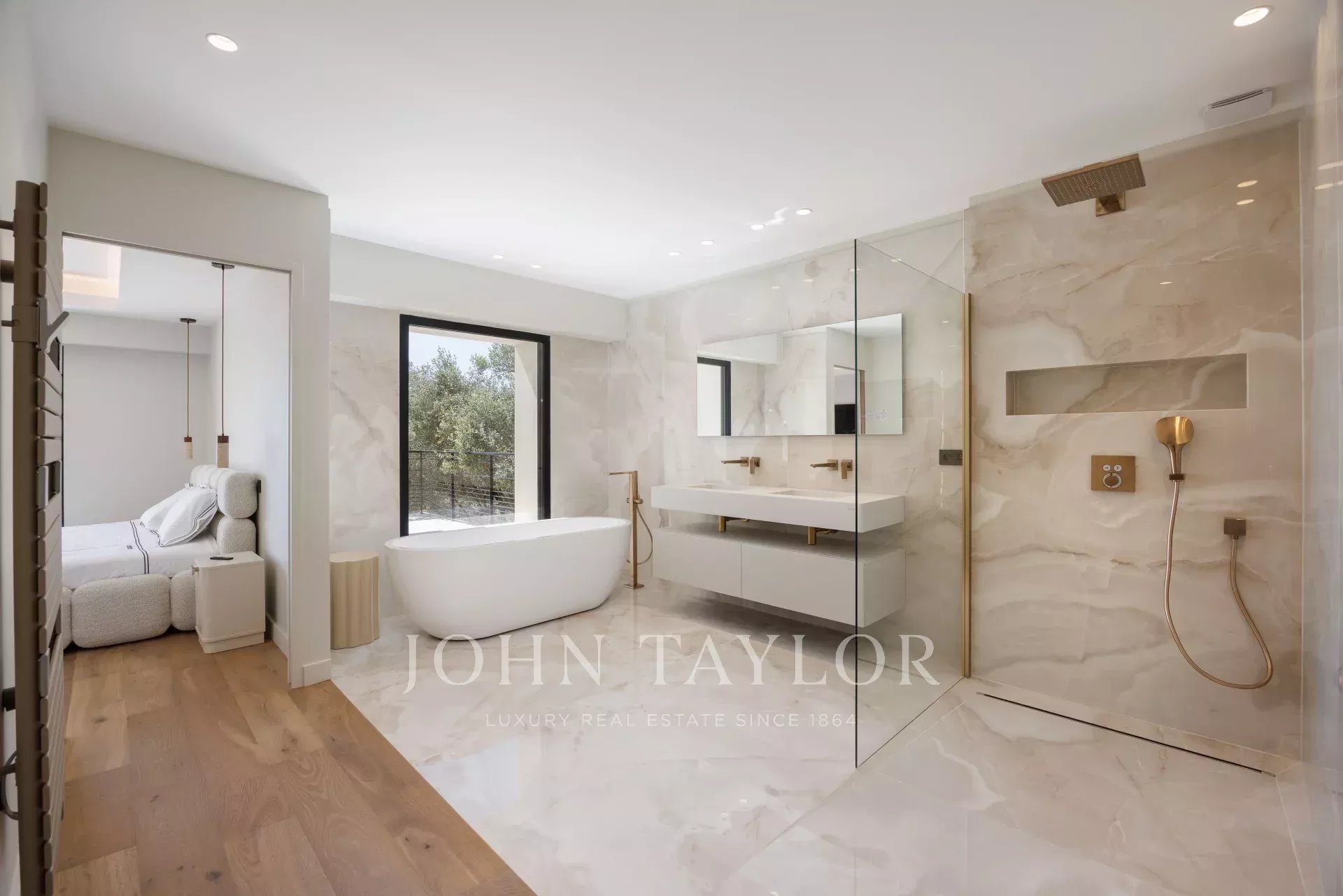 K vybavení patří domácí automatizace, kanálová klimatizace, tepelné čerpadlo, dlážděná příjezdová cesta, dvojgaráž, venkovní parkoviště a samozřejmě výjimečný výhled na moře a vesnici Saint-Paul.