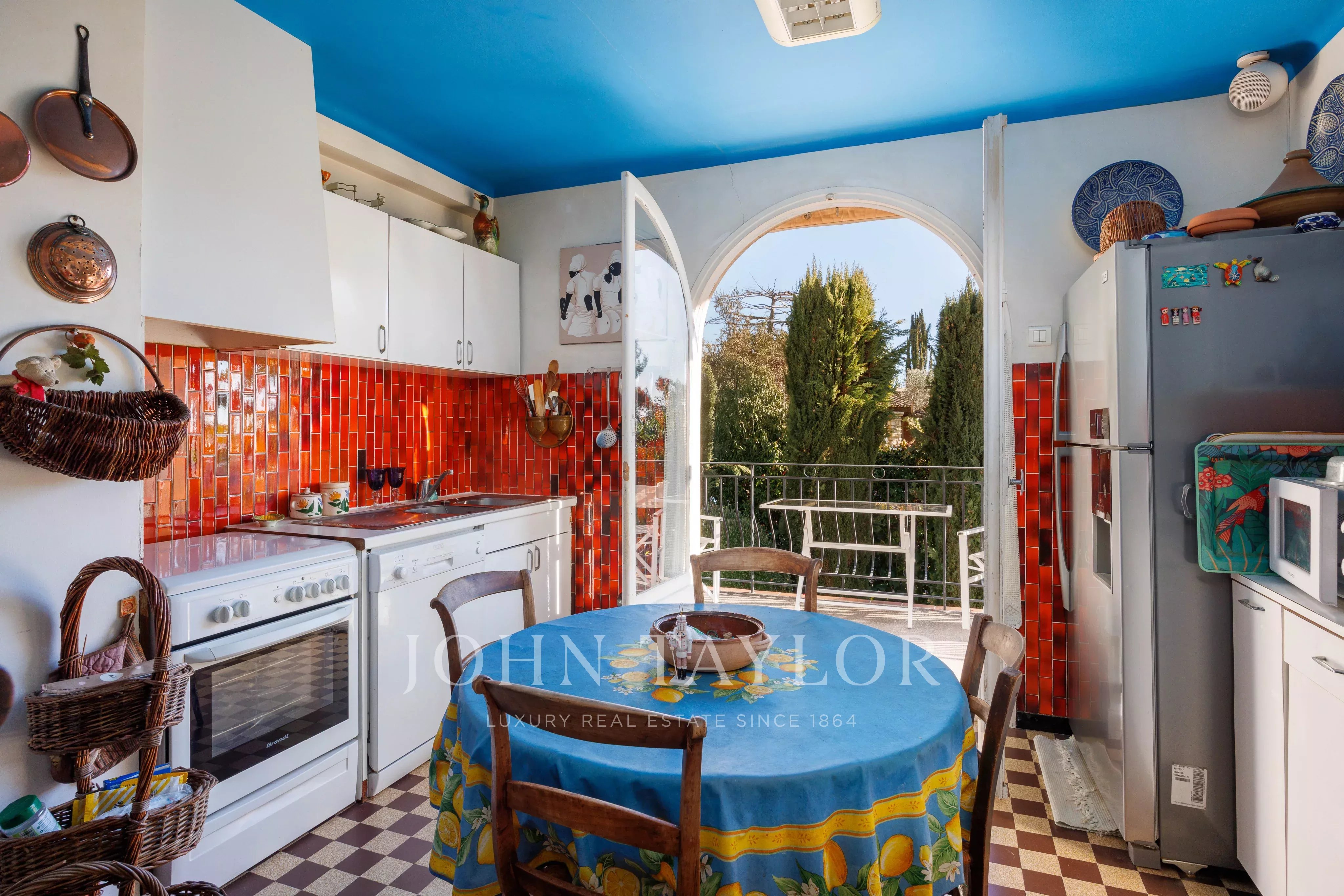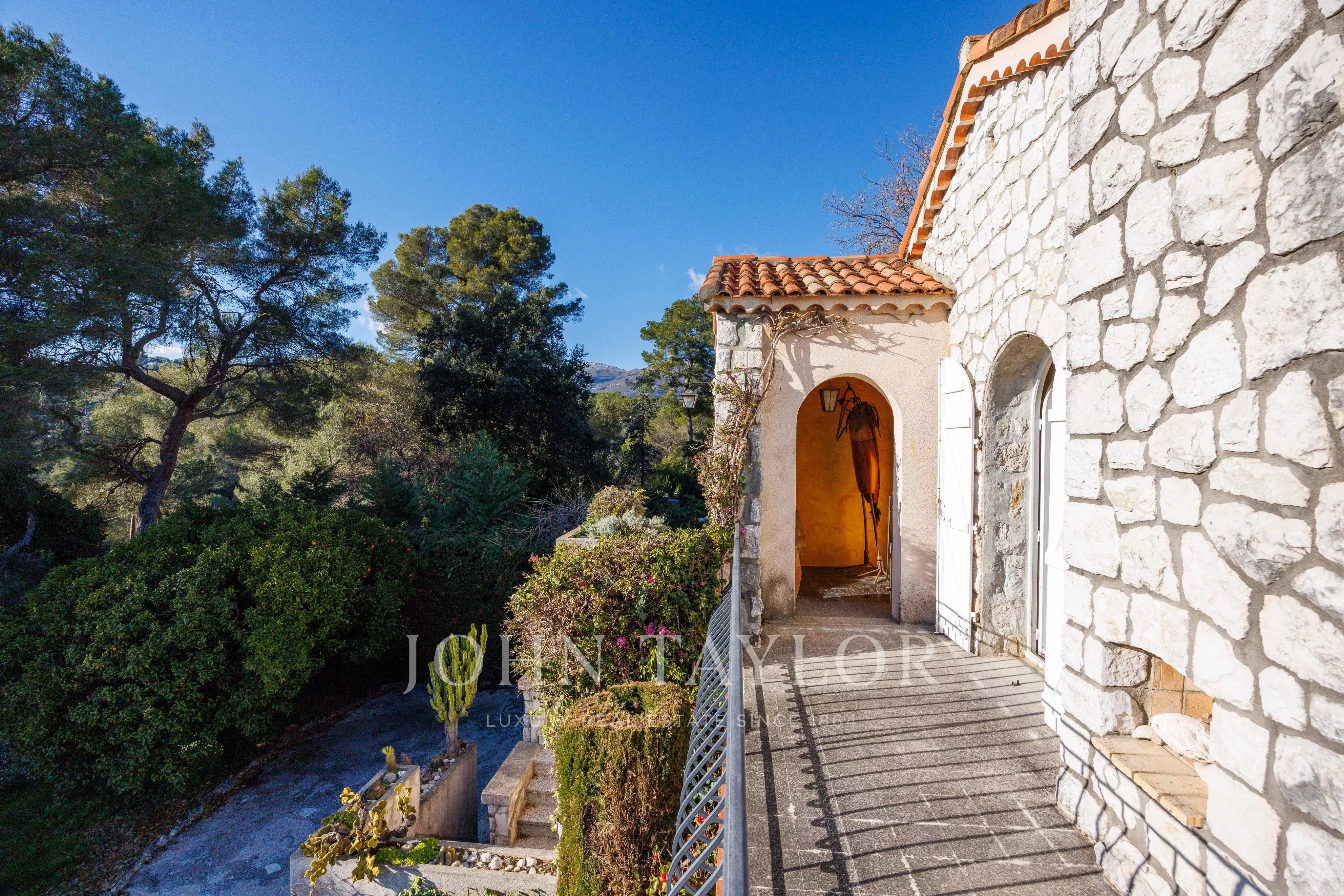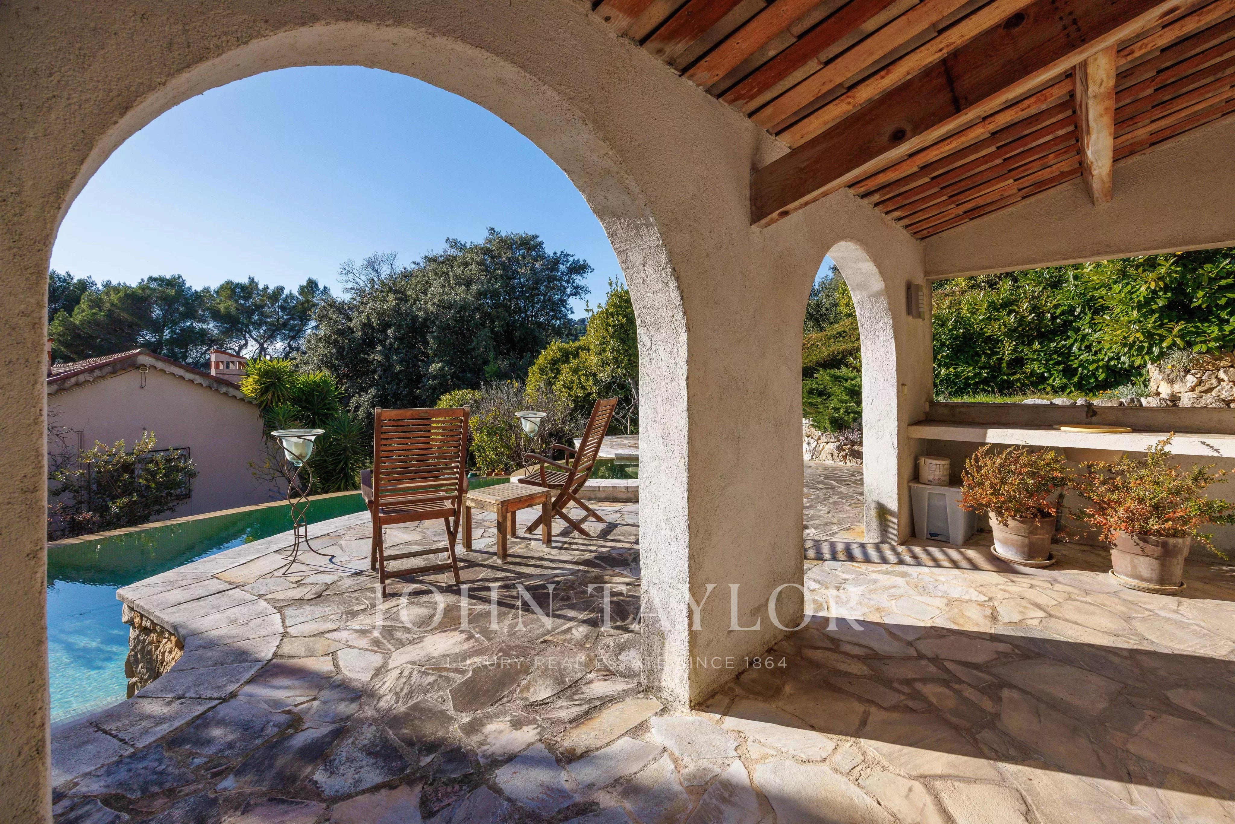 Tento okouzlující, částečně zděný dům (cca 141 m²) s optimální jihovýchodní a jihozápadní expozicí se nachází v ideální poloze v klidné rezidenční čtvrti Saint-Paul-de-Vence, ve vyhledávané oblasti. Má nekonečný bazén, vířivku a domek u bazénu.